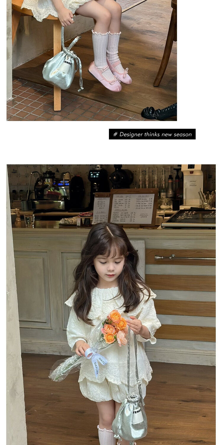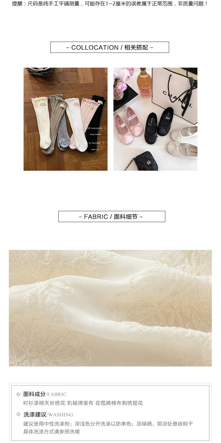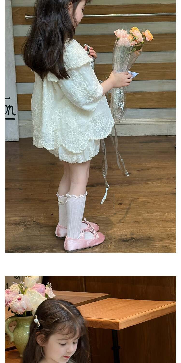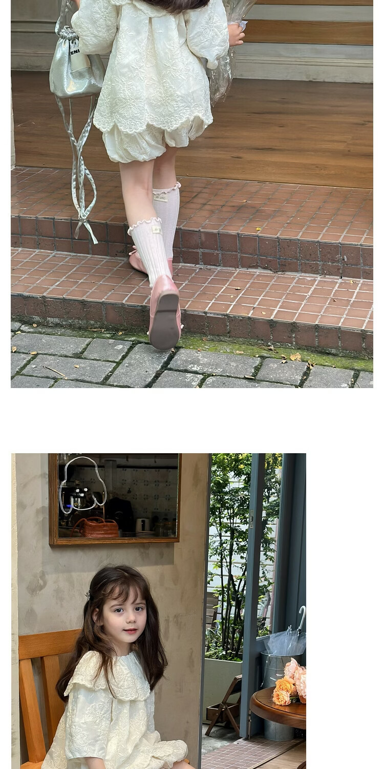 SEVEN BOBI No. 7 Children's Warehouse Girls' Korean Style Western Style Lapel Embroidered Jacquard Shirt Summer New Style Lace Trim Shorts Trendy Off-White Shirt Ready in Stock 120 cm