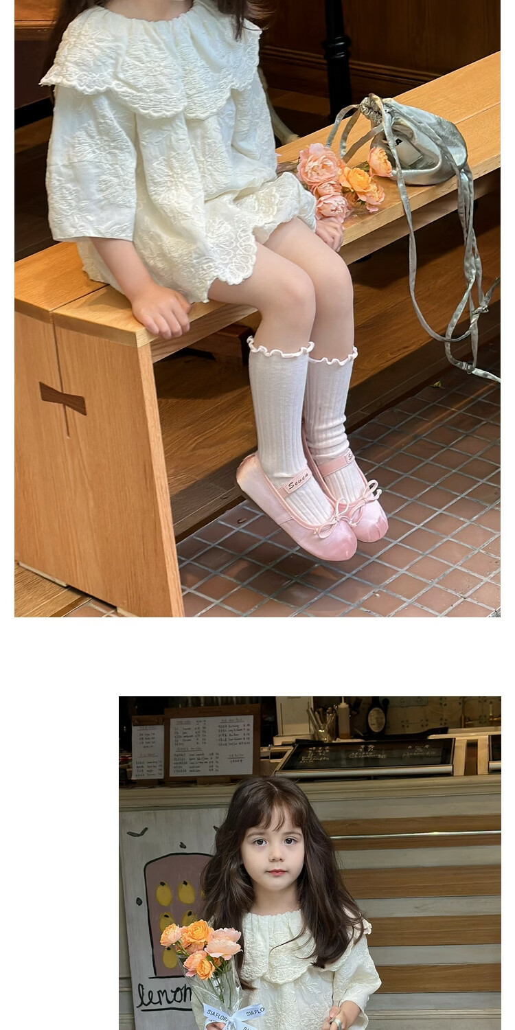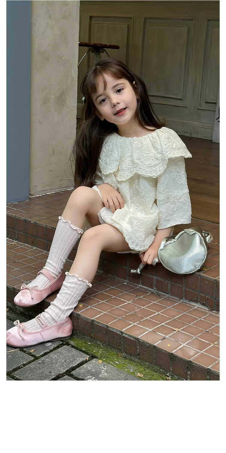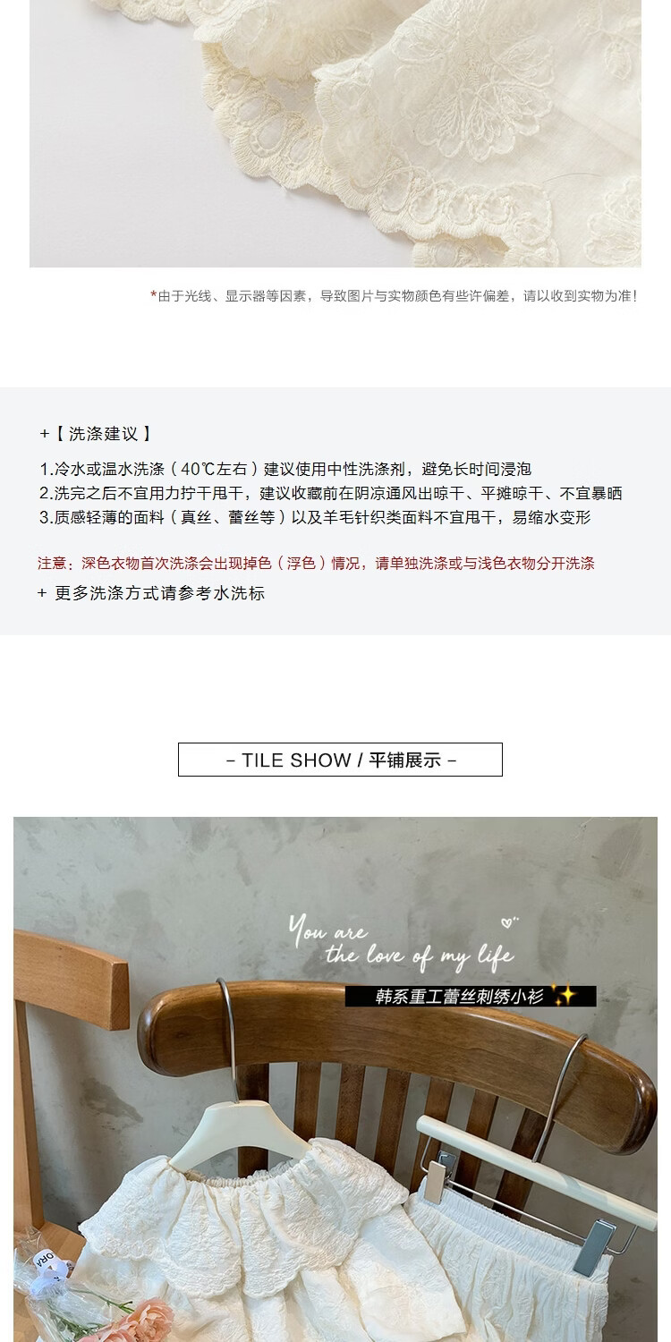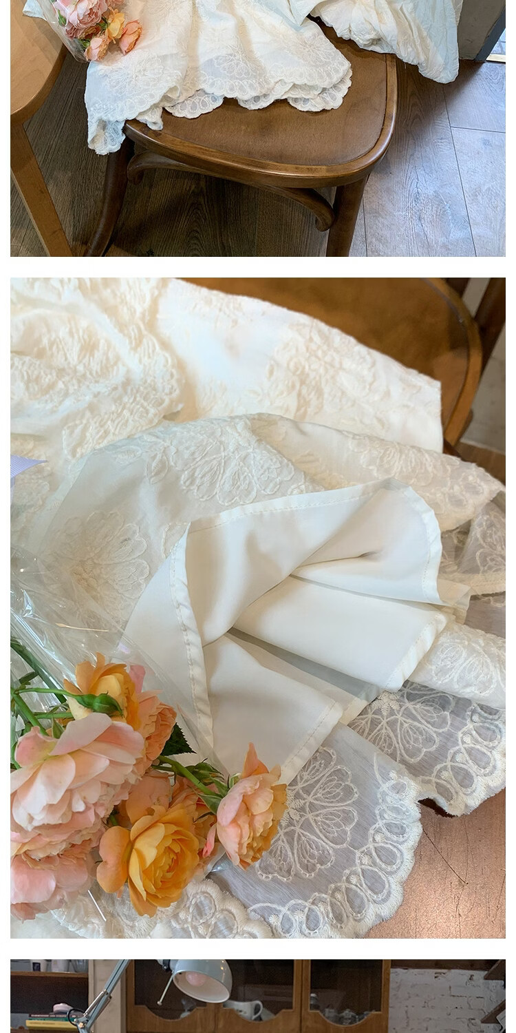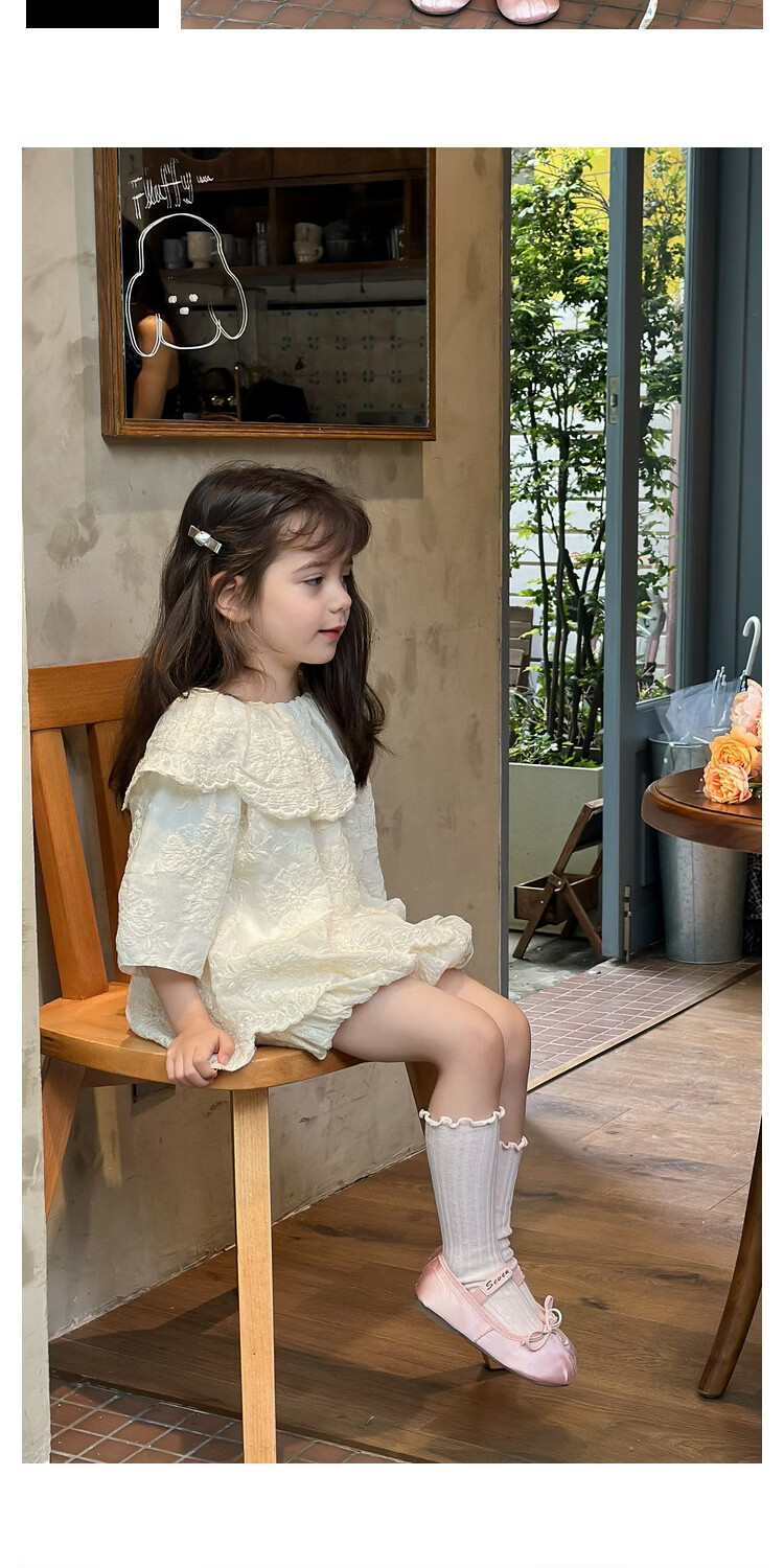 SEVEN BOBI No. 7 Children's Warehouse Girls' Korean Style Western Style Lapel Embroidered Jacquard Shirt Summer New Style Lace Trim Shorts Trendy Off-White Shirt Ready in Stock 120 cm
