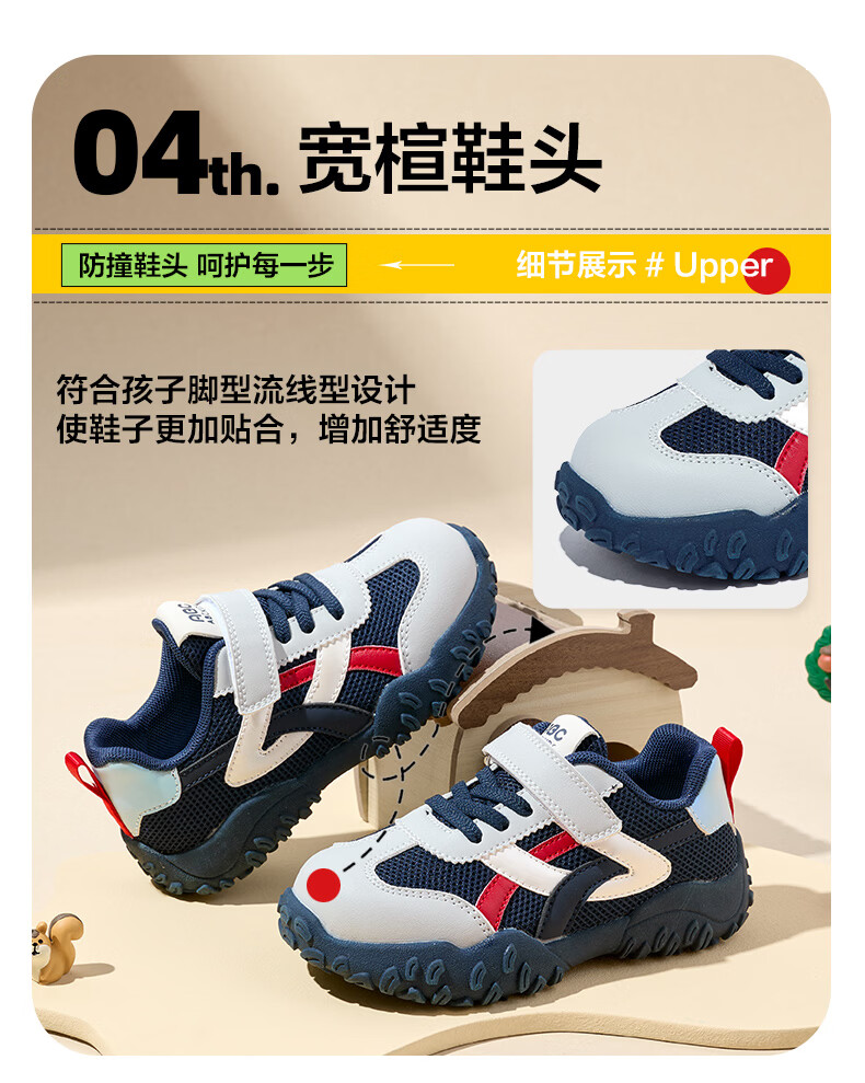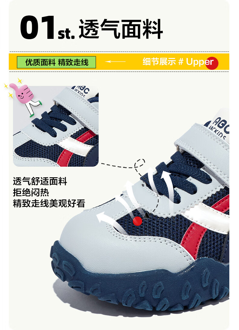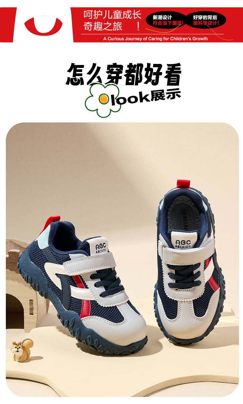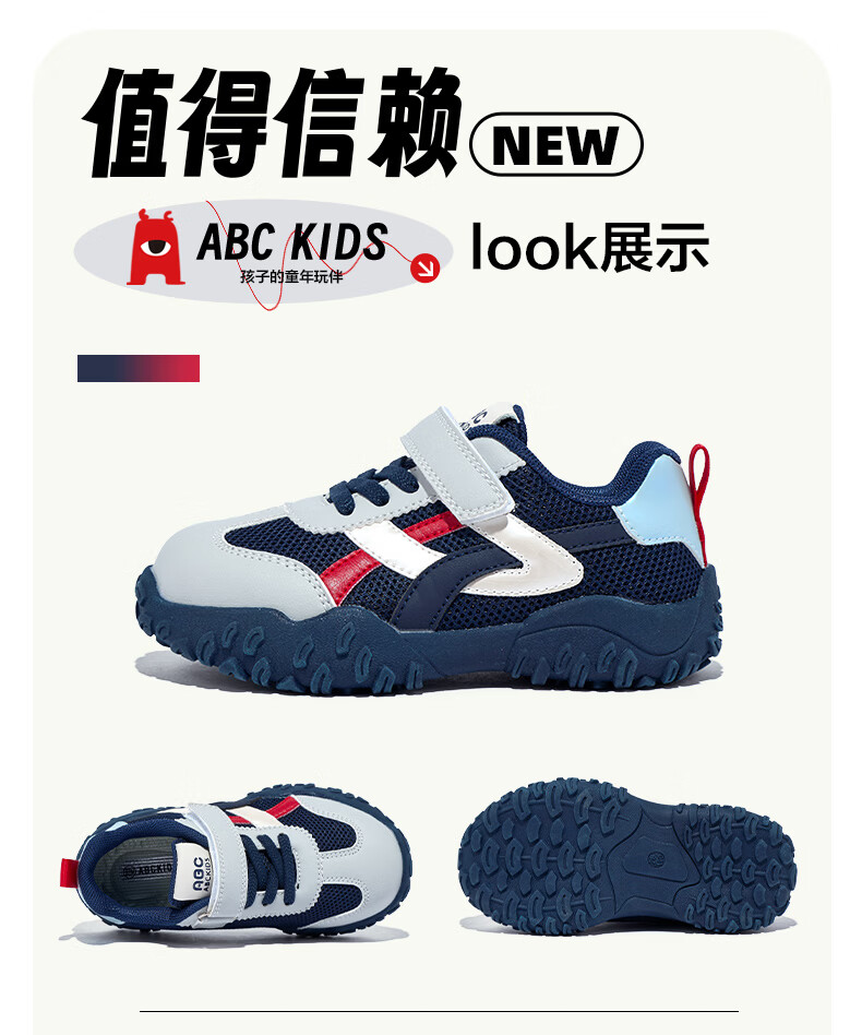 ABC KIDS children's shoes boys' shoes 2026 spring new children's sports shoes mesh spring children's shoes outdoor casual shoes royal blue/dark red 28