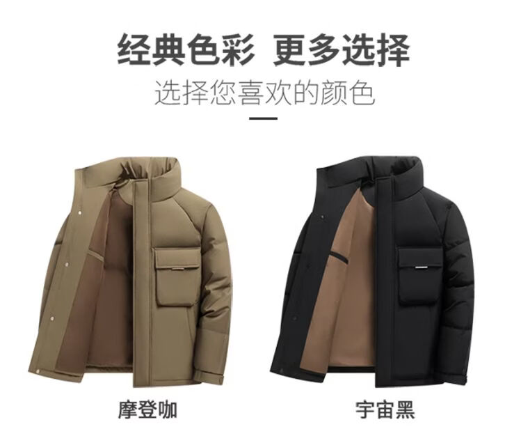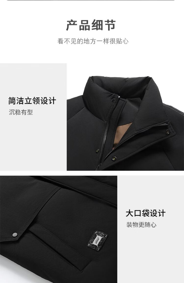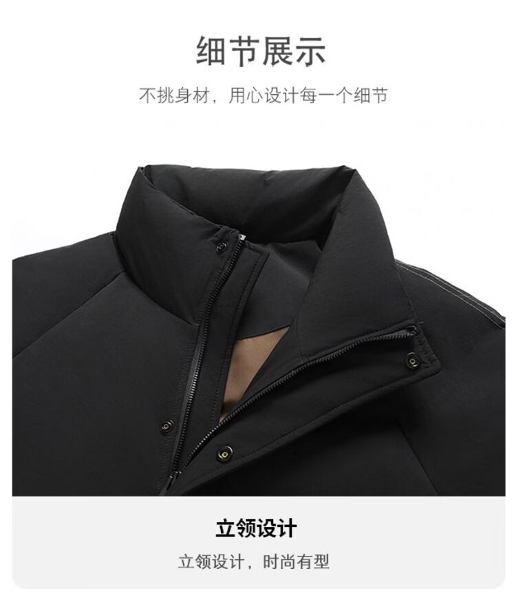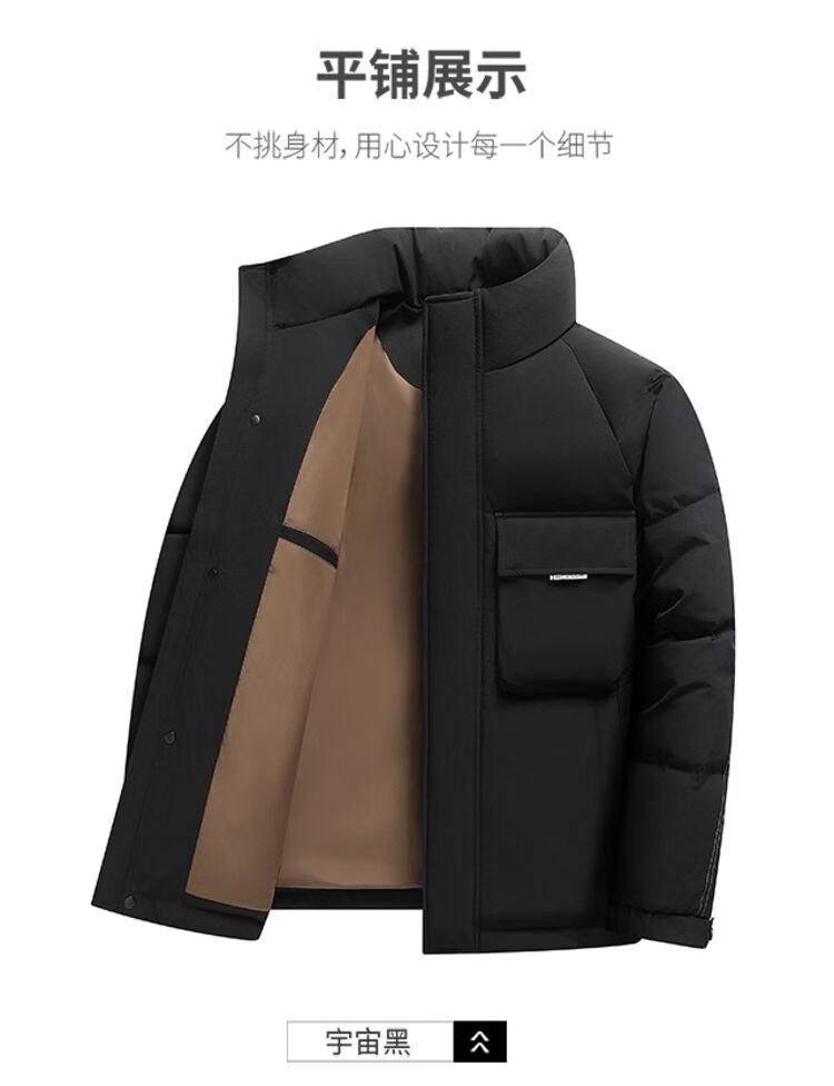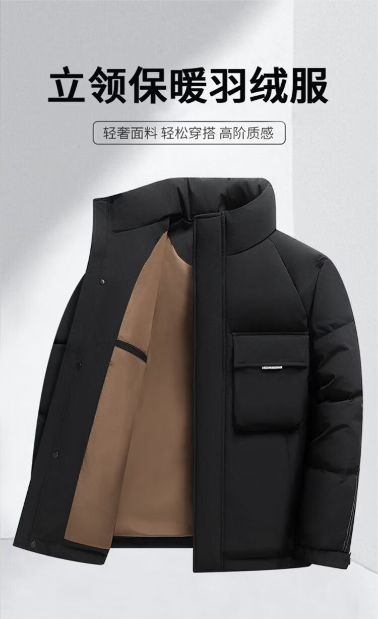 Hengyuanxiang 2026 новый зимний мужской короткий пуховик с воротником-стойкой в ​​деловом стиле, повседневный, теплый и удобный, черный M