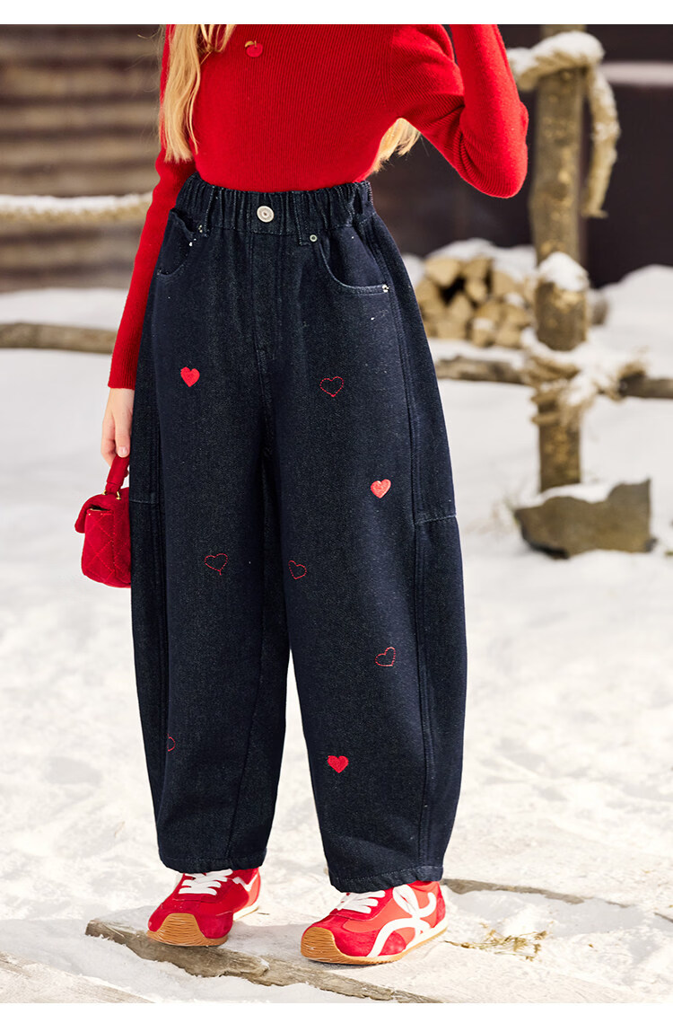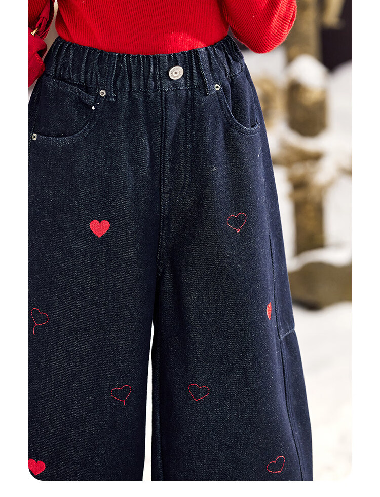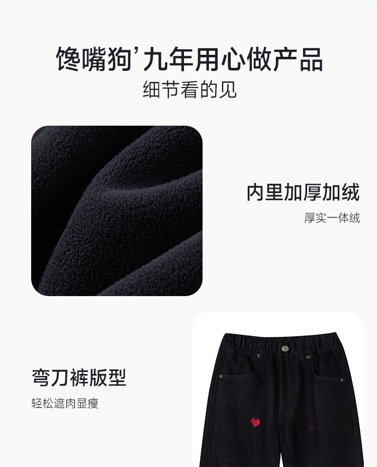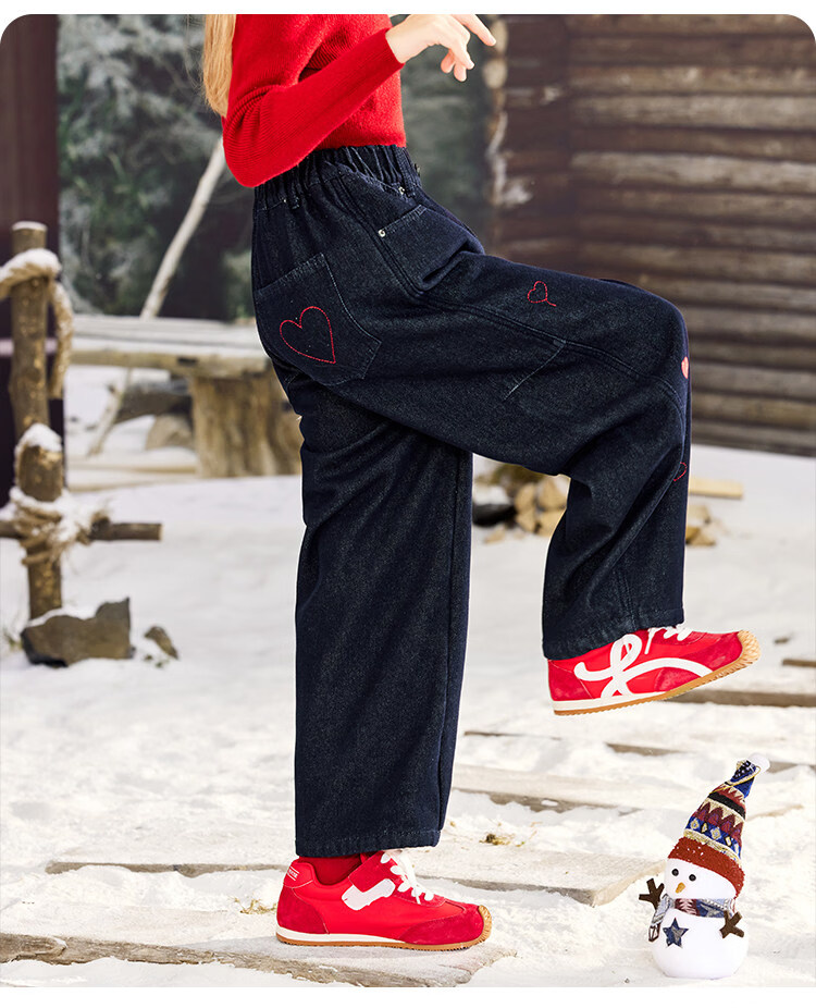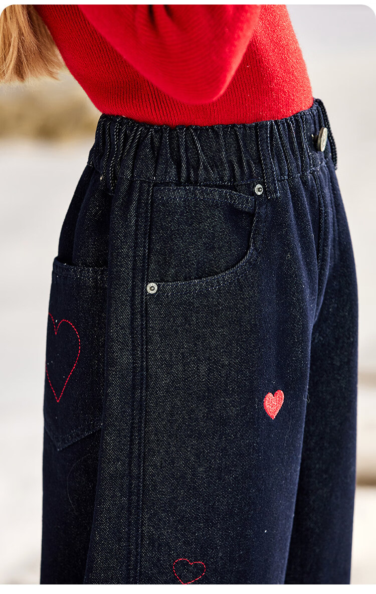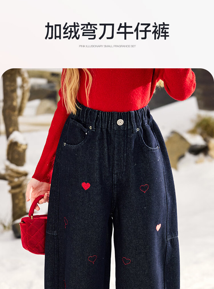 CHANZUIGOU children's clothing girls' velvet scimitar jeans 2025 winter new style versatile thickened pants navy blue 150