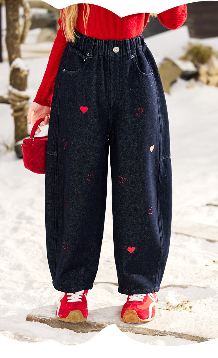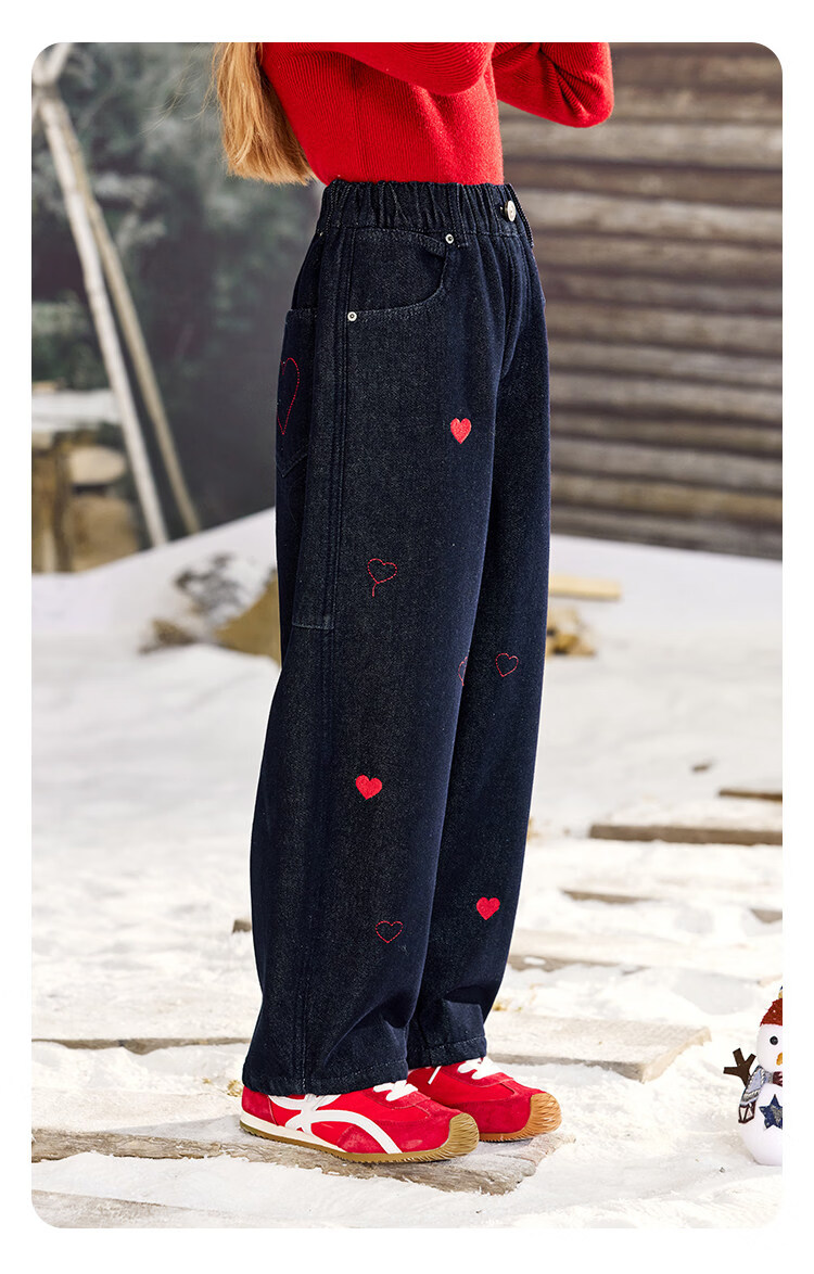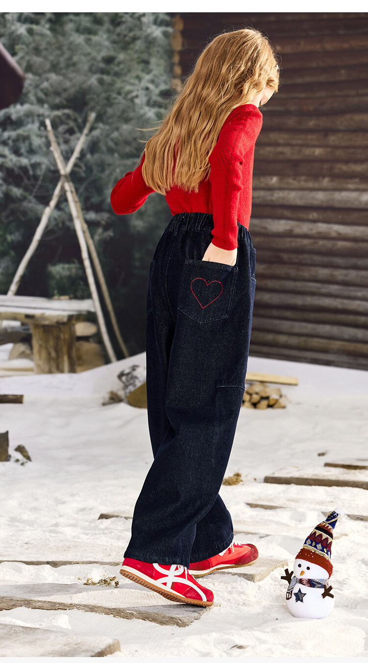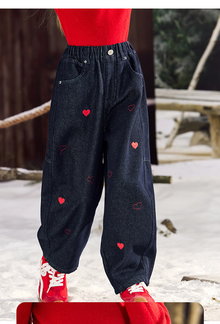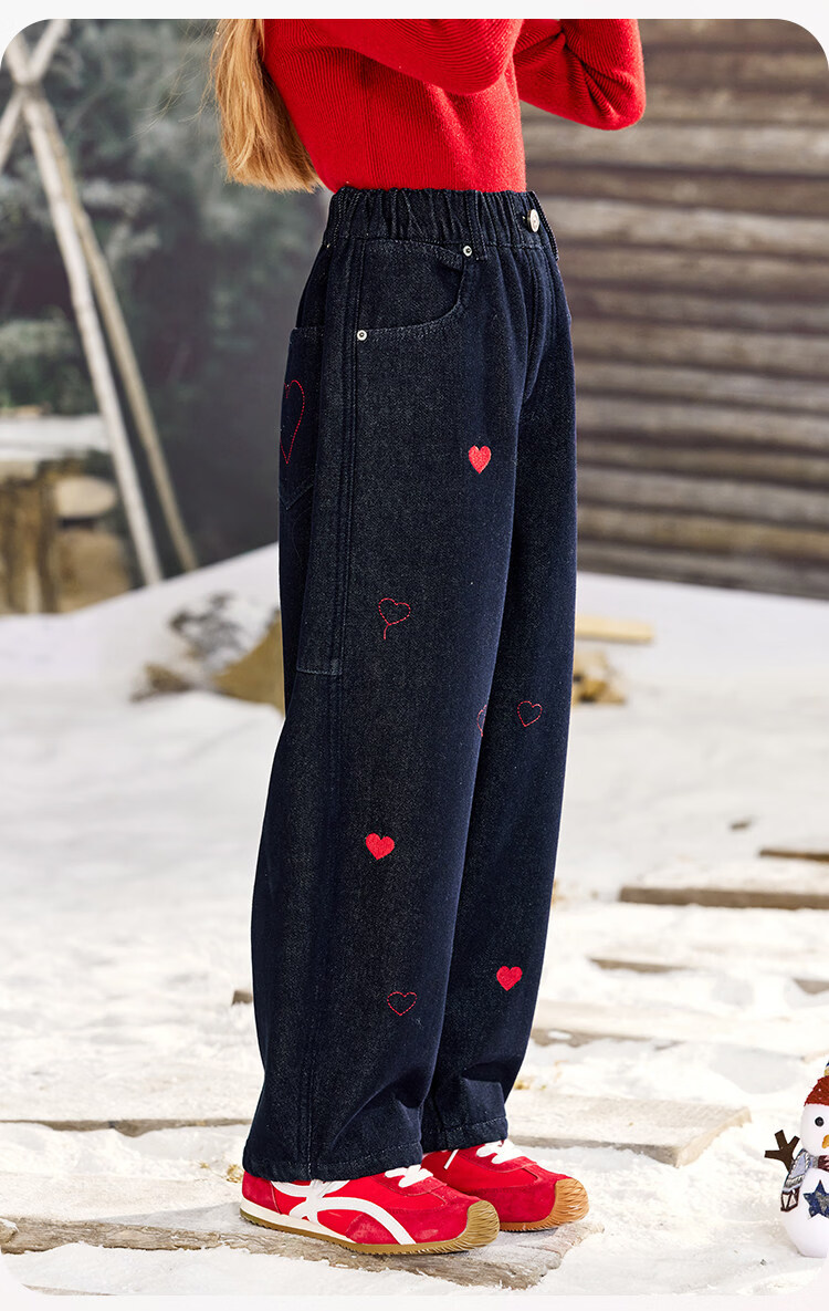 CHANZUIGOU children's clothing girls' velvet scimitar jeans 2025 winter new style versatile thickened pants navy blue 150