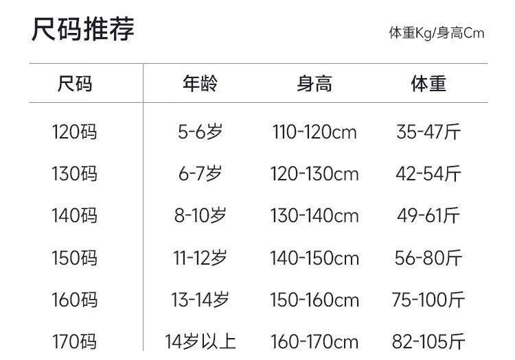 China (cm) 160-165/84-86 165-170 / 88-90 167-172 / 92-96 168-173 / 98-102 170-176 / 106-110