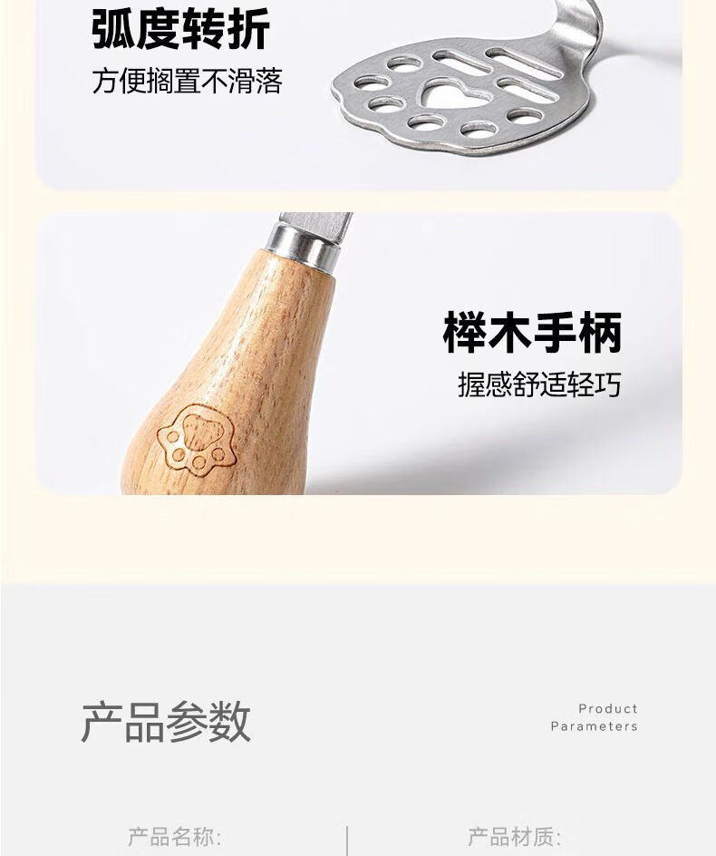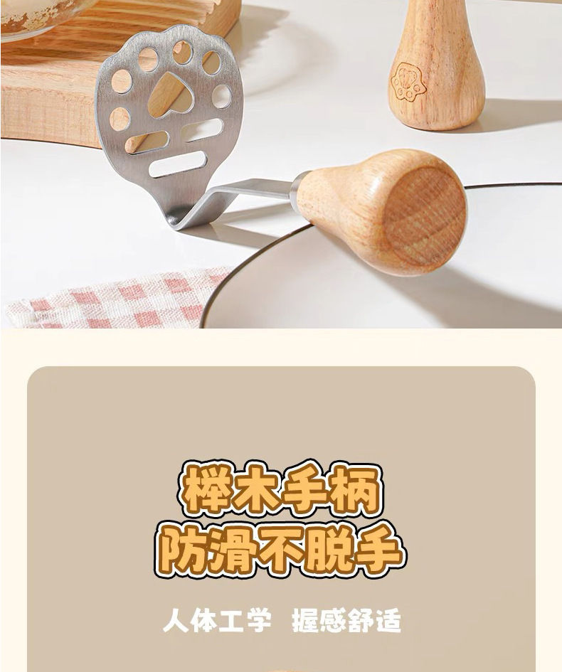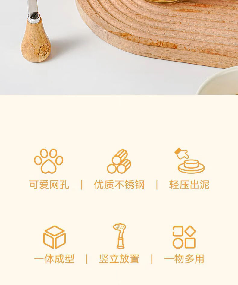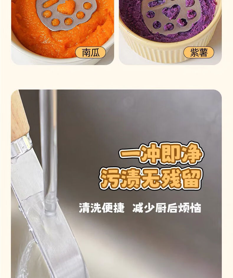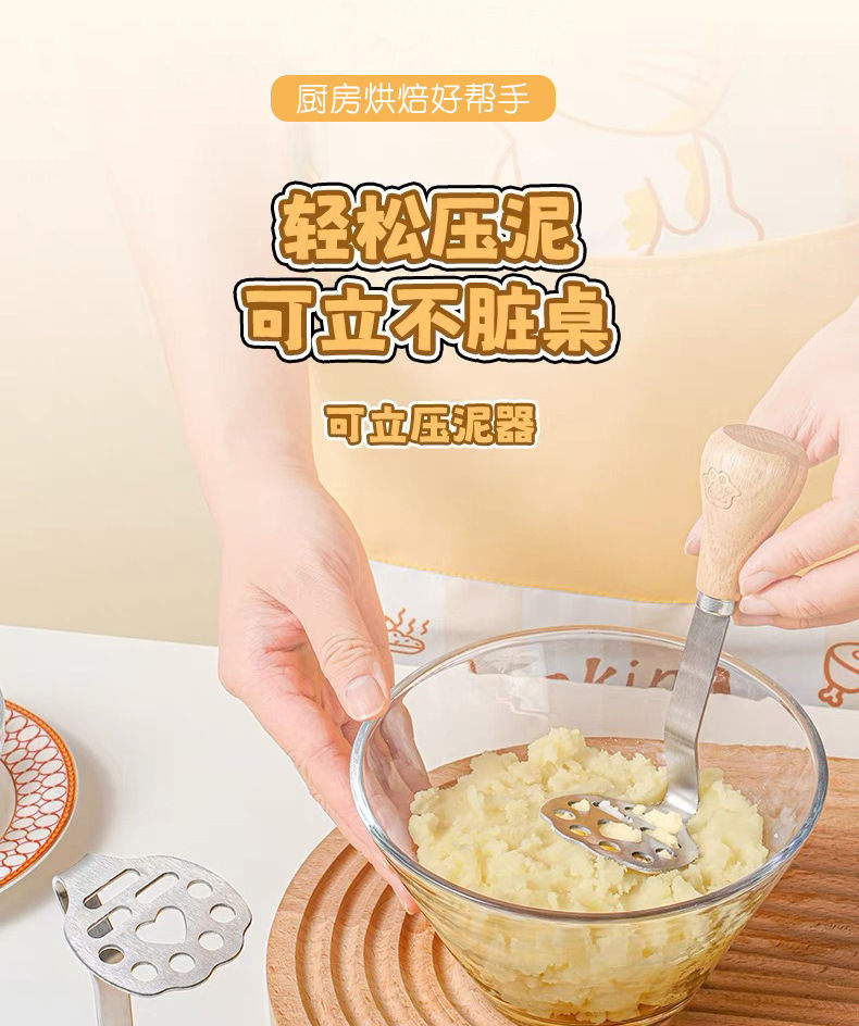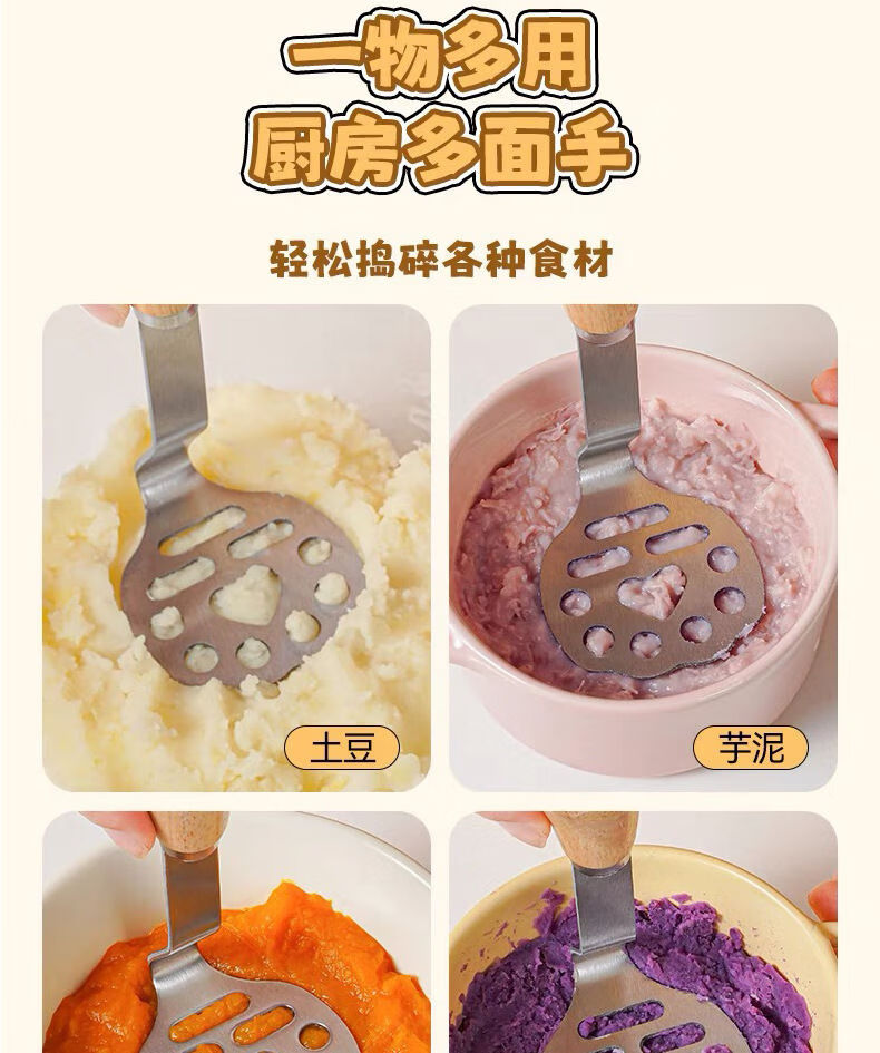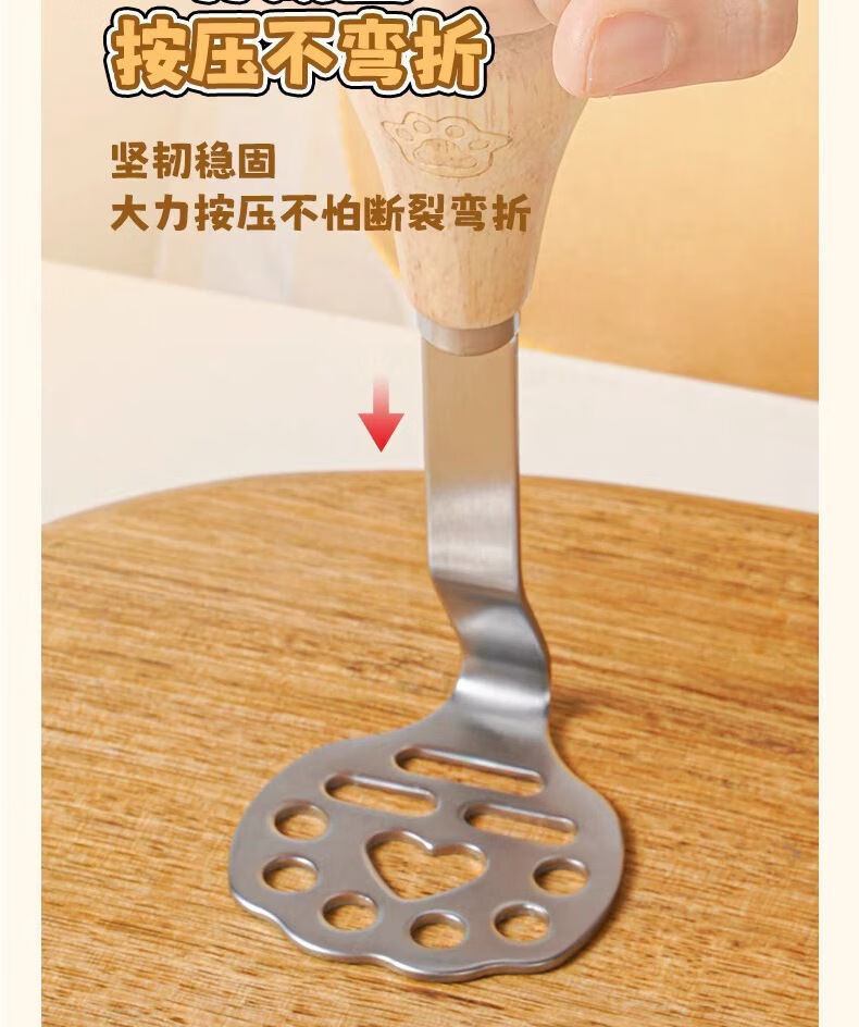 Yong Huan mud press, food supplement tool, mud press, potato, purple sweet potato mud, egg mud spoon, stainless steel thickened beech handle bear mud press++ 1 pack