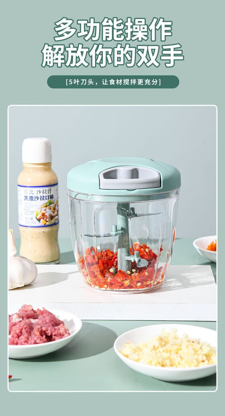 Luluo Large Garlic Kitchen Manual Meat Grinder Vegetable Cutter Home Garlic Multifunctional Blender Plug-in Upgraded Large Pink Size Five Knives + Beat Eggs 1ml Upgraded Large Pink Size Five Knives + Beat