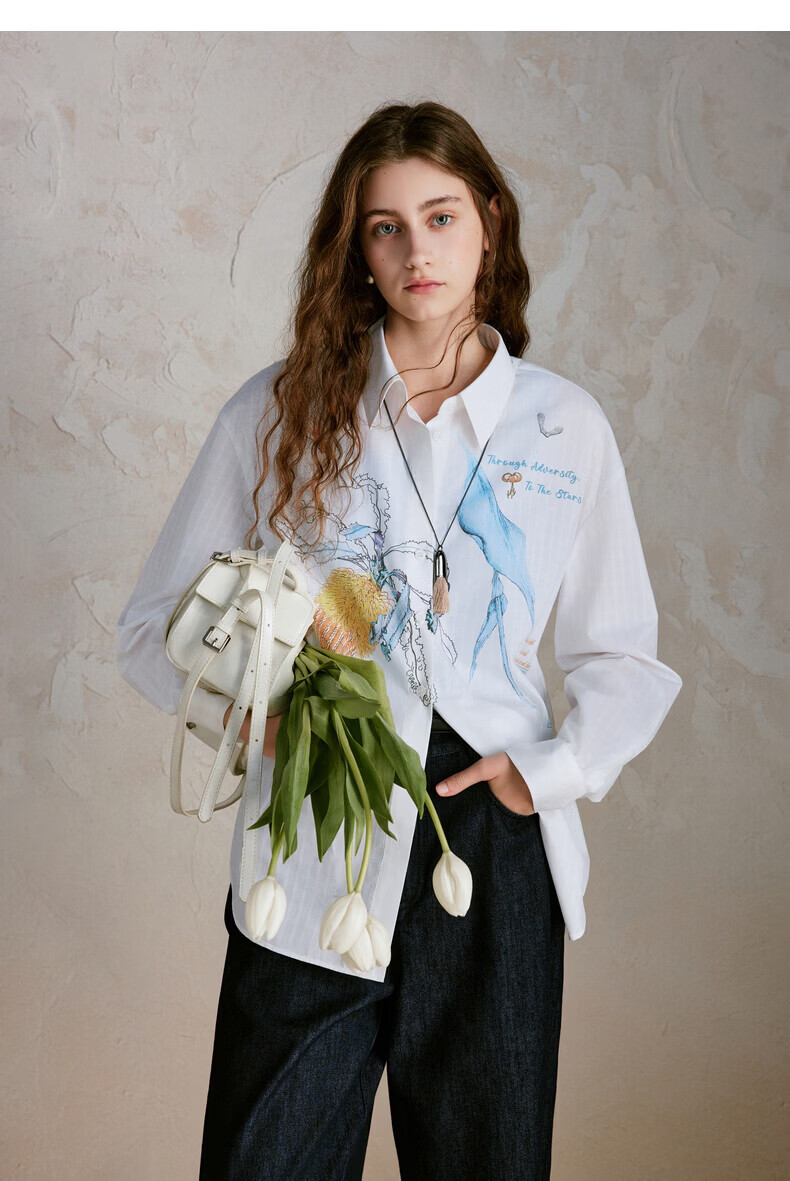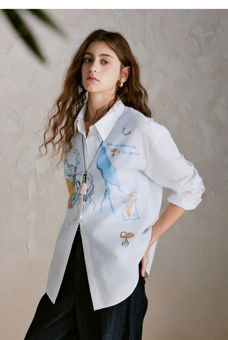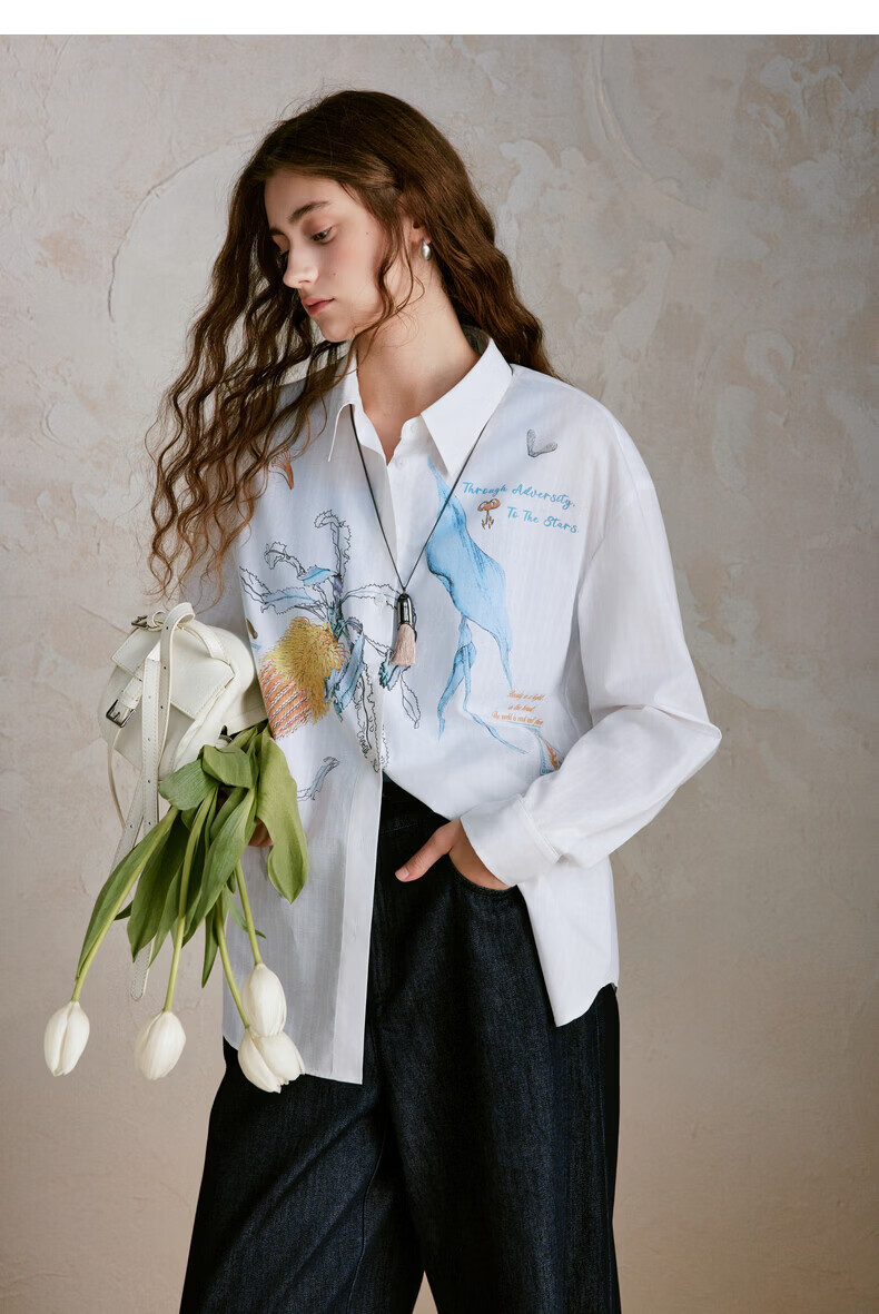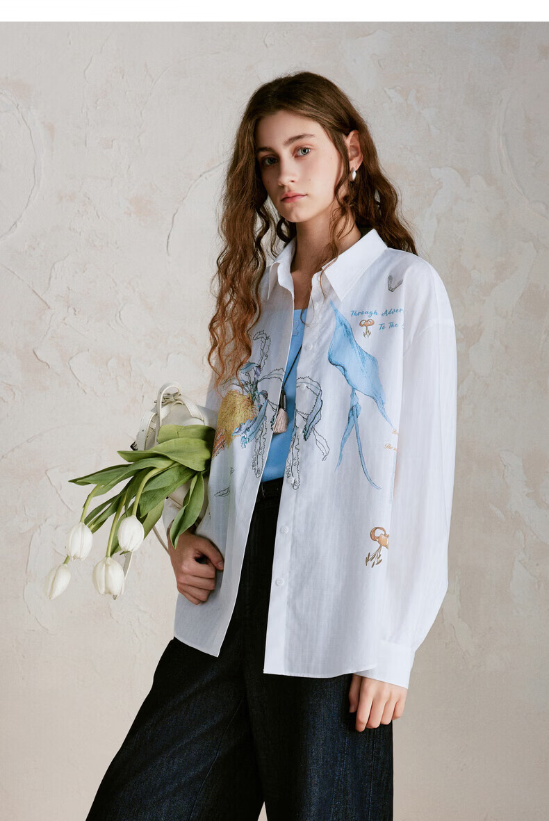 XIRAN (XIRAN) 26th spring style commuter long-sleeved shirt with lyocell print, fresh and artistic loose top, off-white S