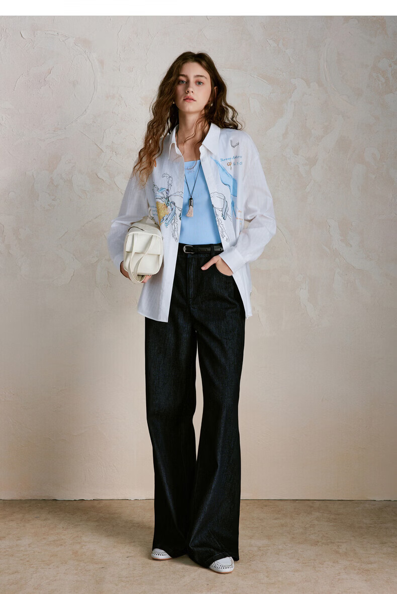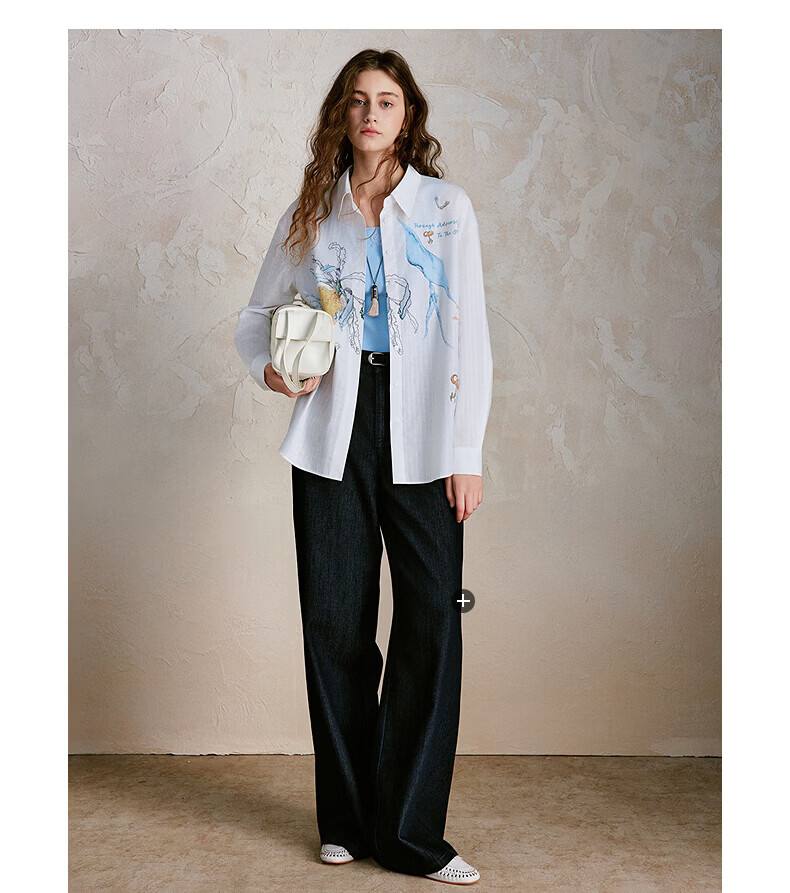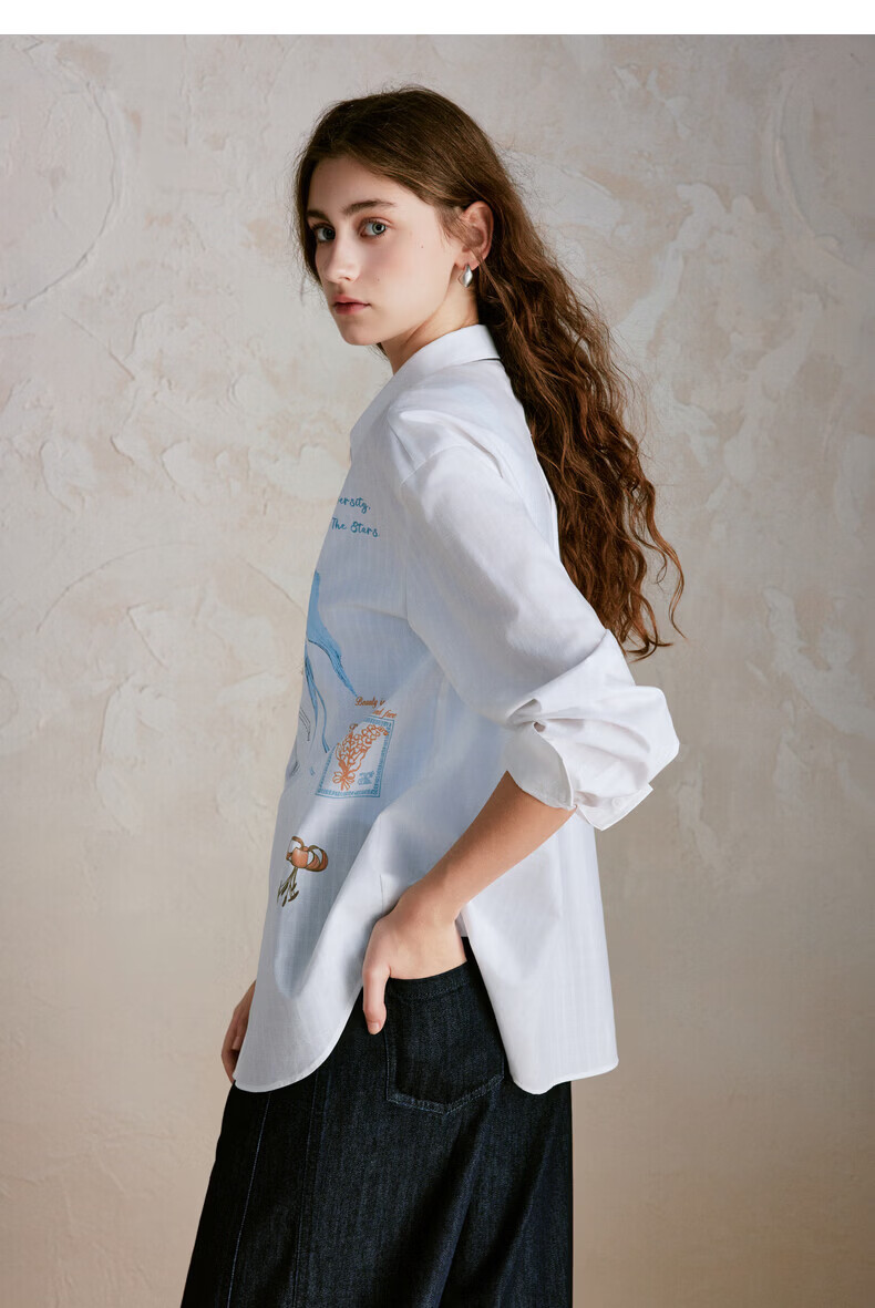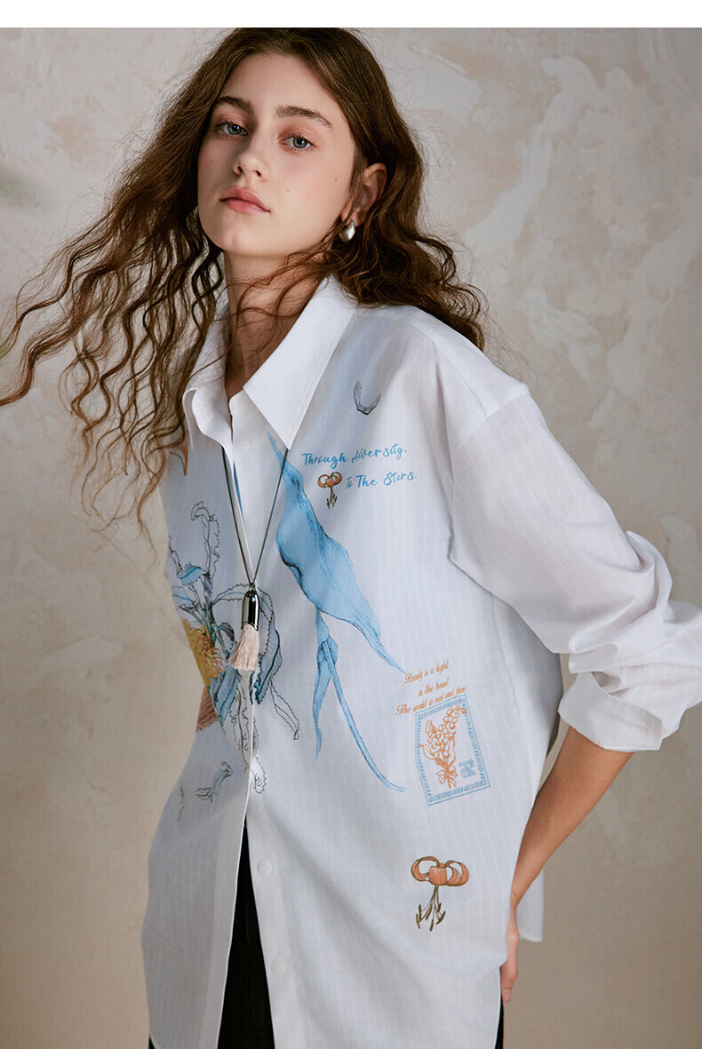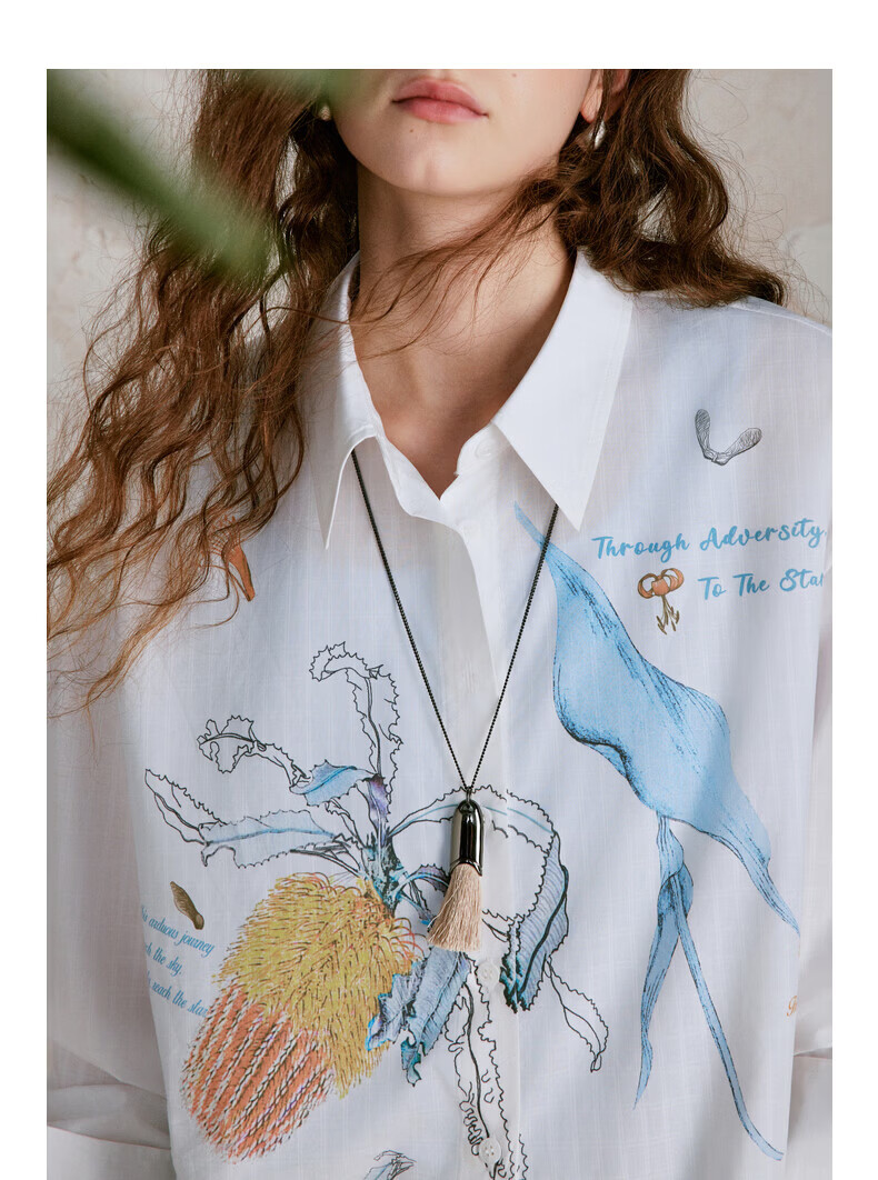 XIRAN (XIRAN) 26th spring style commuter long-sleeved shirt with lyocell print, fresh and artistic loose top, off-white S