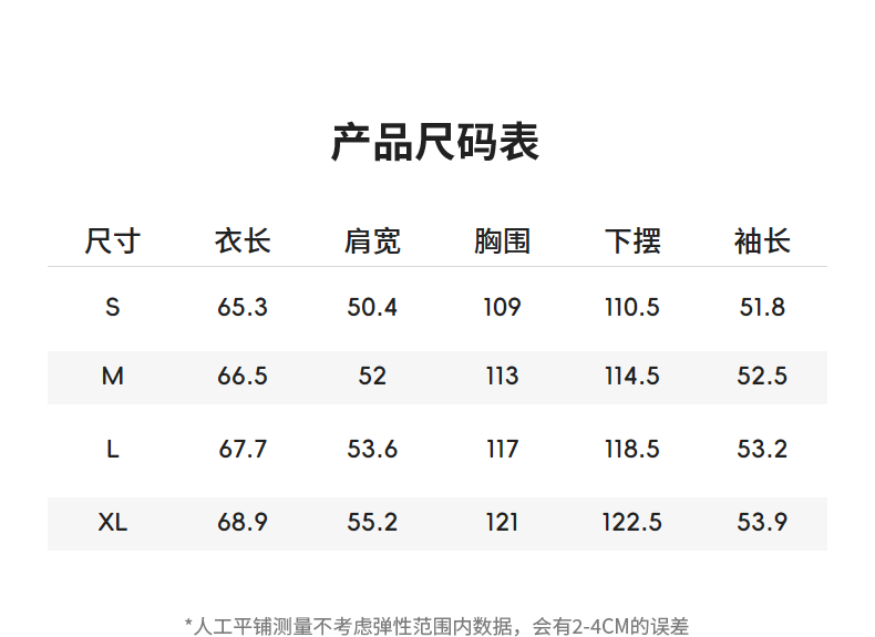 Size (cm) 42 44 46 48 50