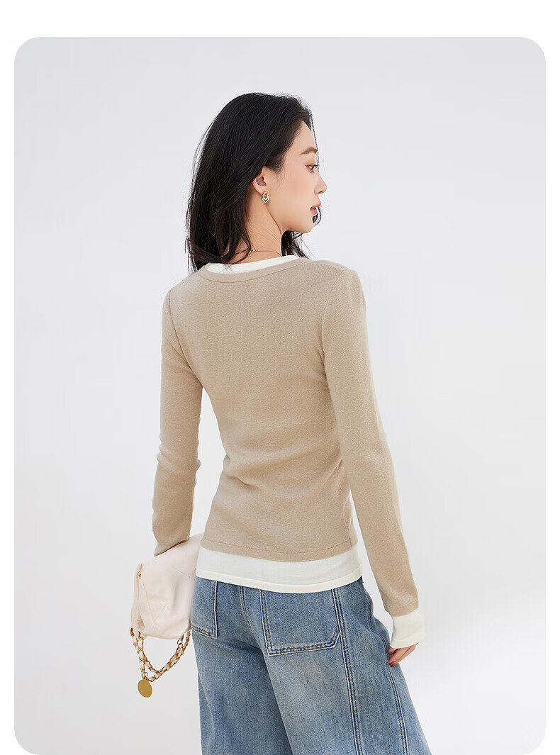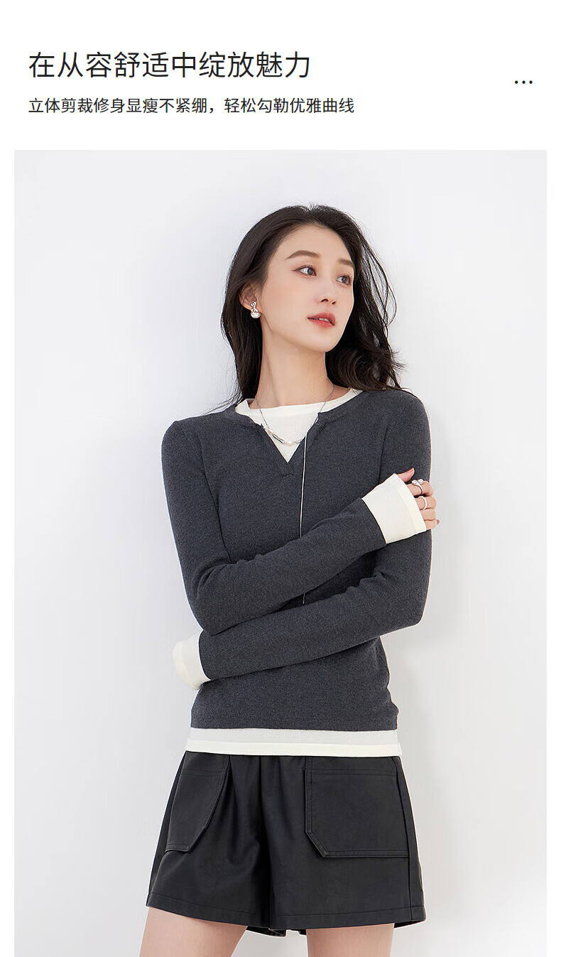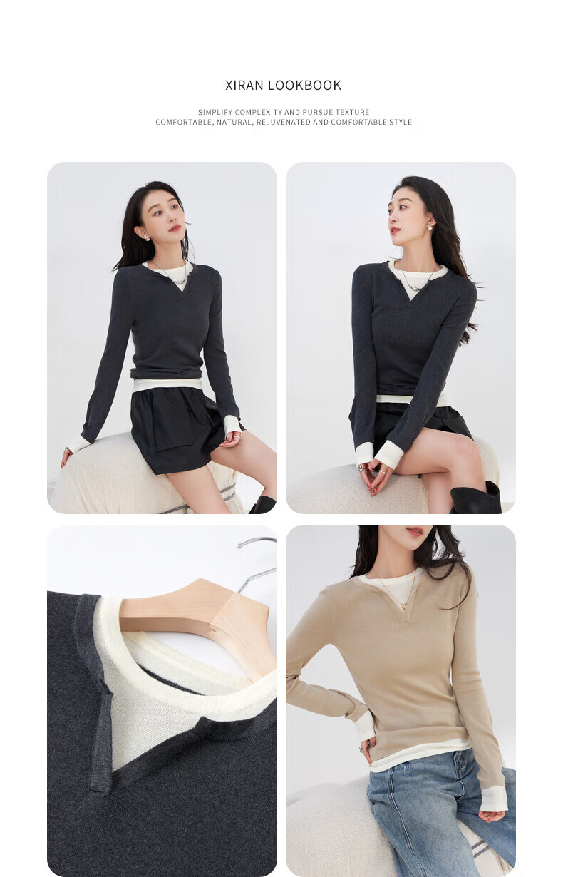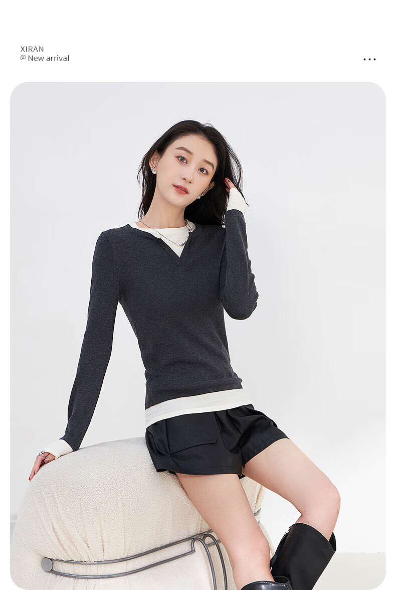 XIRAN 2025 Autumn and Winter New Fake Two-Piece Simple, Versatile, Slim, Slim and Temperament Commuting Sweater for Women, Gray, One Size