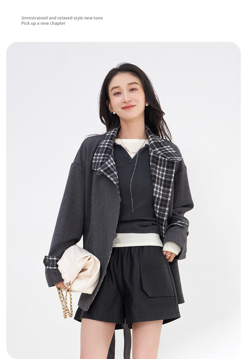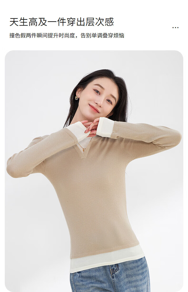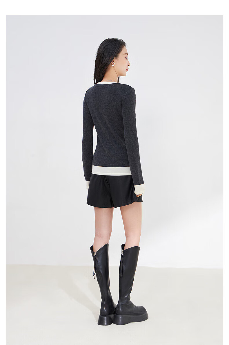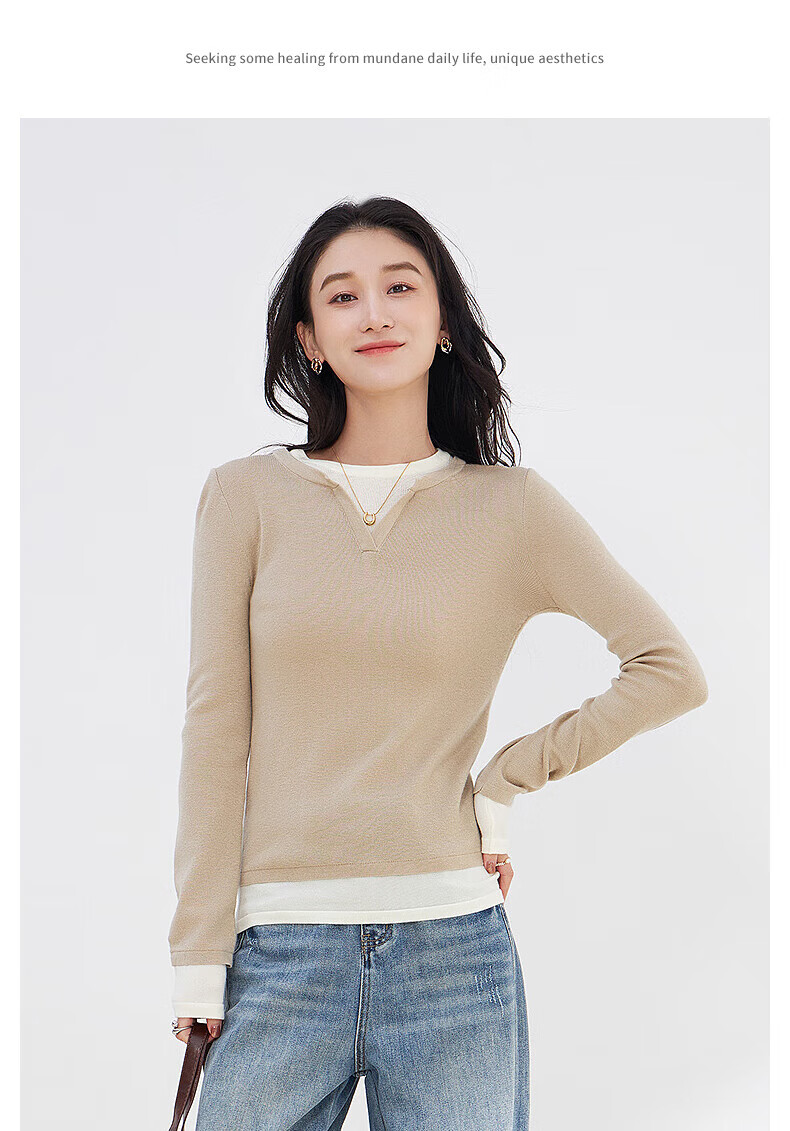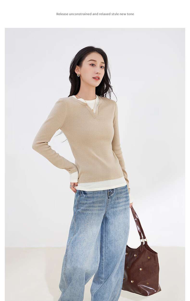 XIRAN 2025 Autumn and Winter New Fake Two-Piece Simple, Versatile, Slim, Slim and Temperament Commuting Sweater for Women, Gray, One Size
