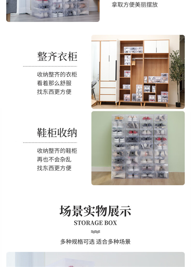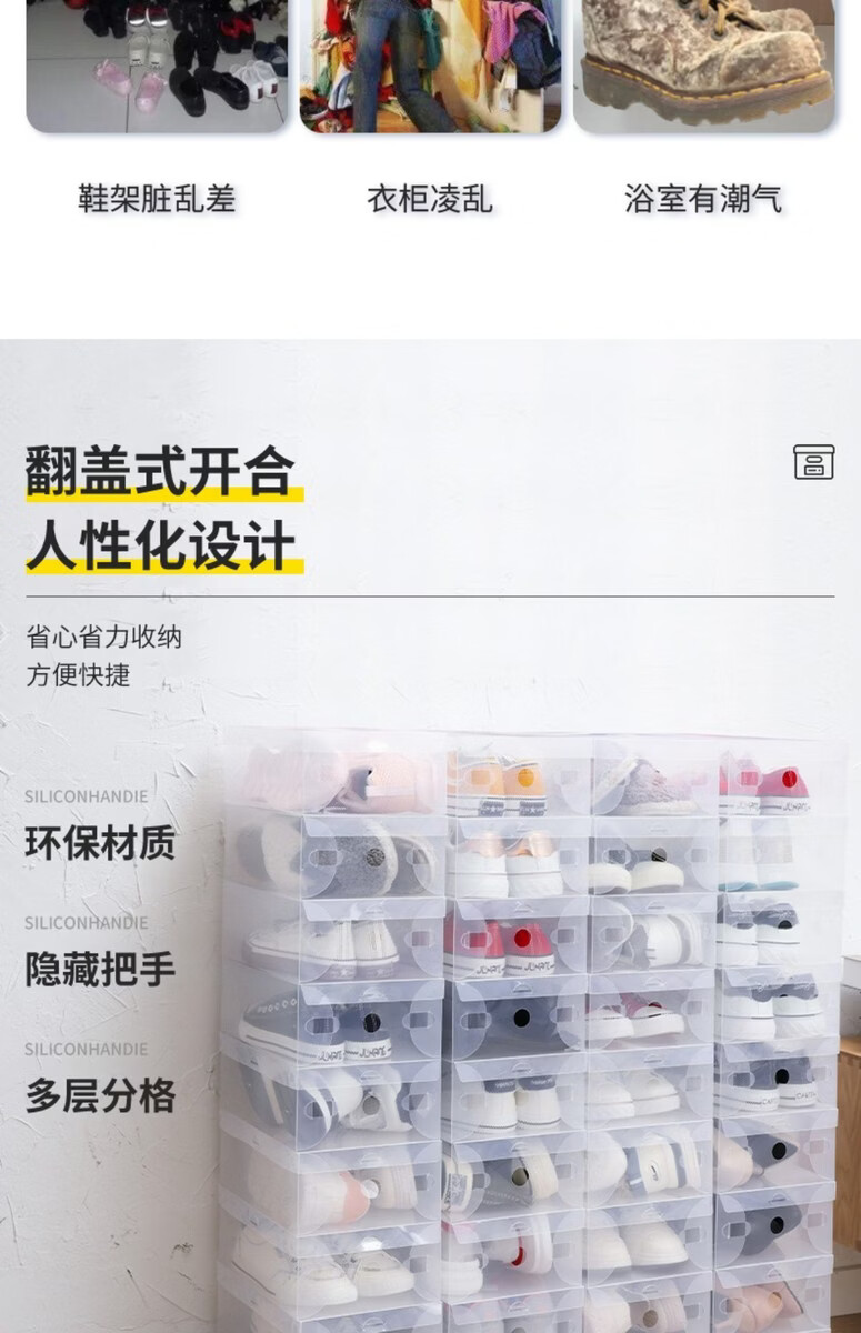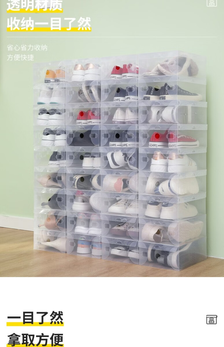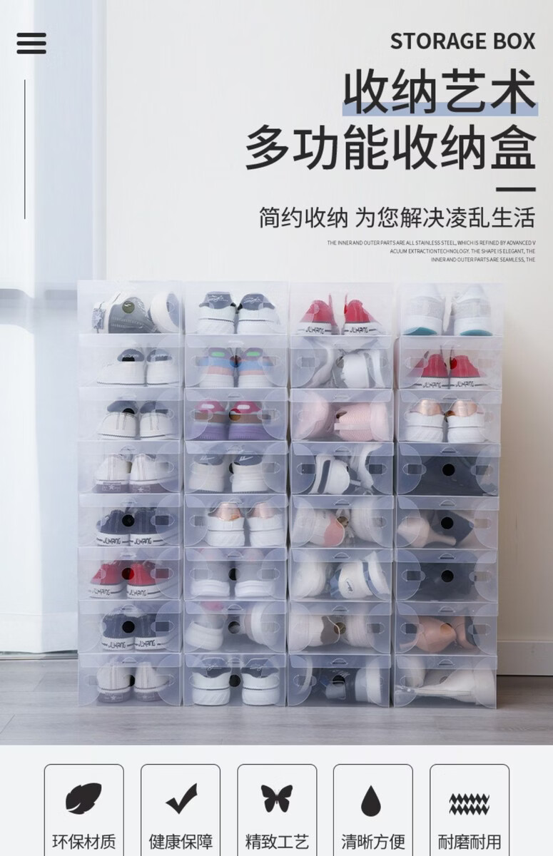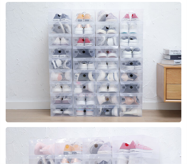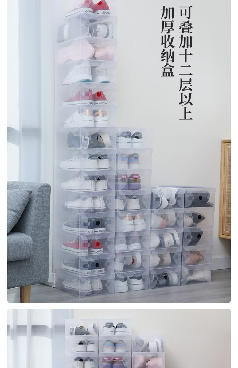 Yusenyi Transparent Thickened Storage Shoe Box with Large Flip Cover Drawer-type Shoe AJ Storage Box Space-Saving Plastic Storage Box Women's Flip Cover Thickened Type 10 White 0x0x0cm