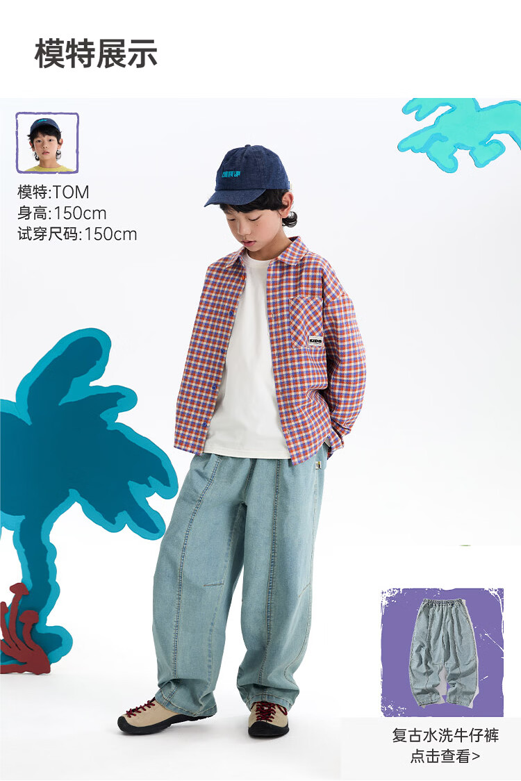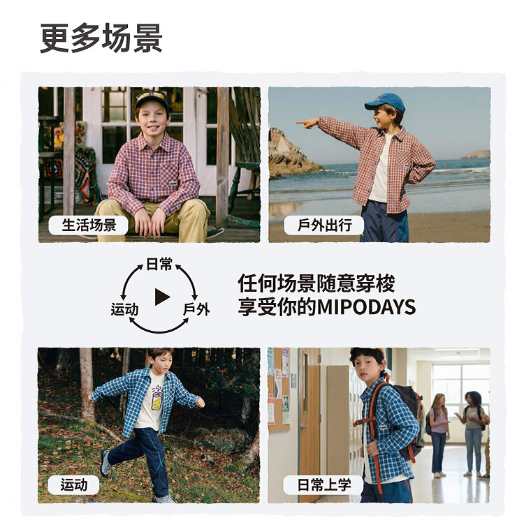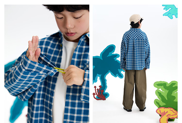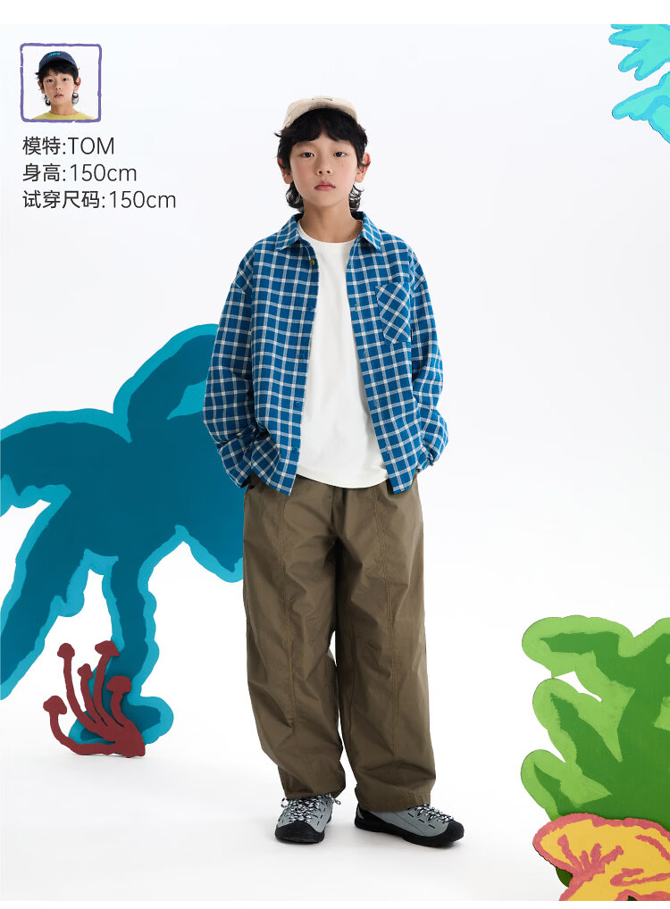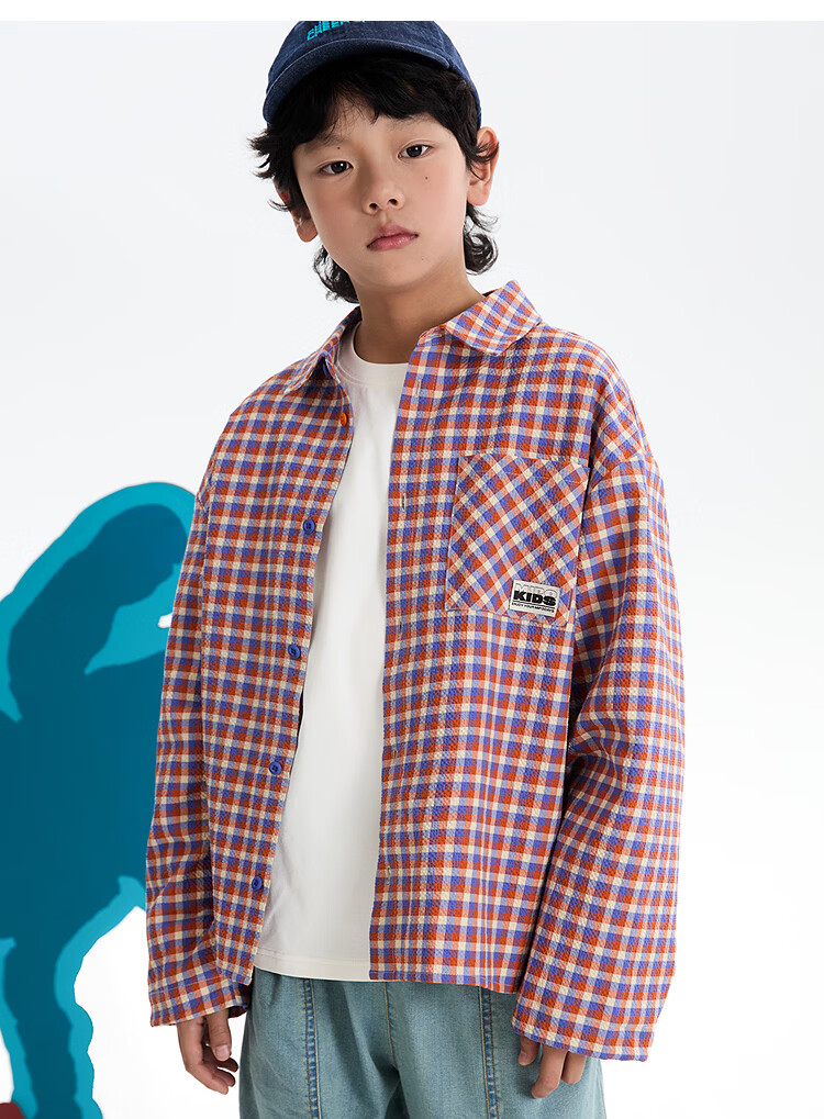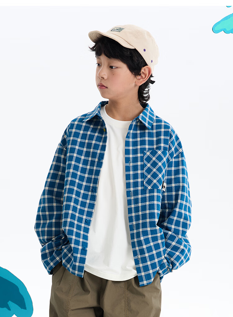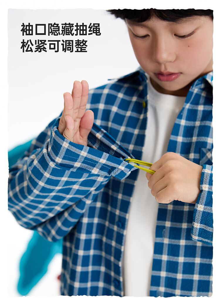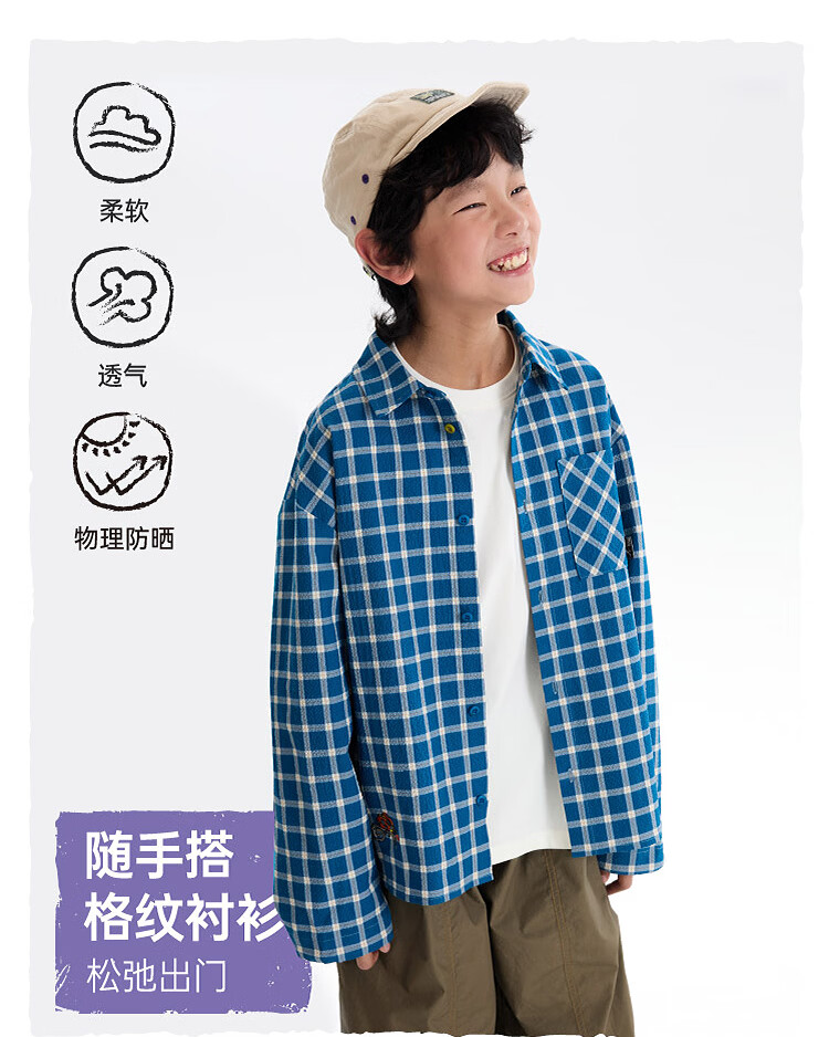 Mipo new product 26 spring new children's shirt for boys and girls soft and breathable outdoor plaid versatile sun protection top trendy blue plaid 140