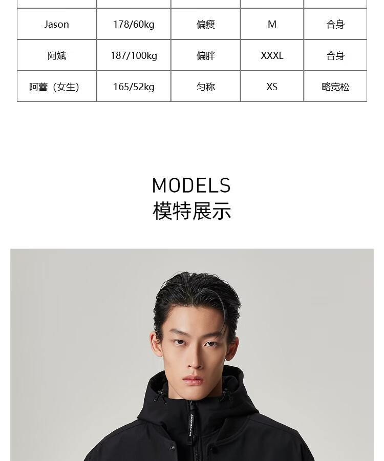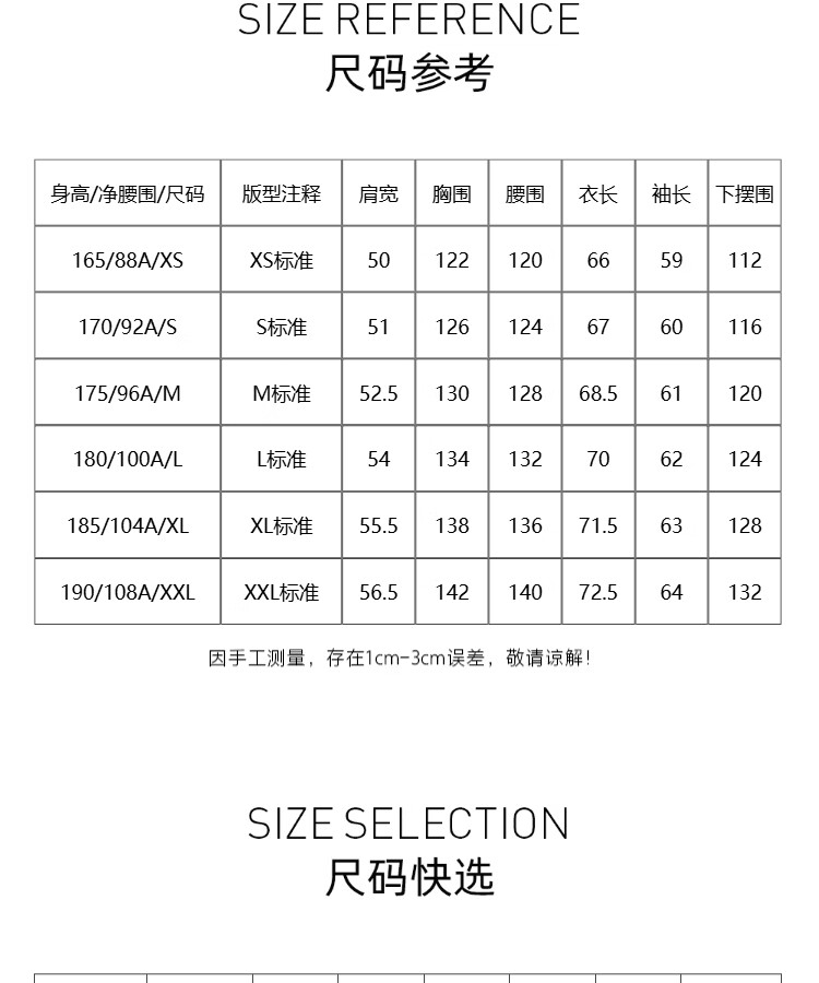 China (cm) 165 / 88-90 170 / 96-98 175 / 108-110 180 / 118-122 185 / 126-130