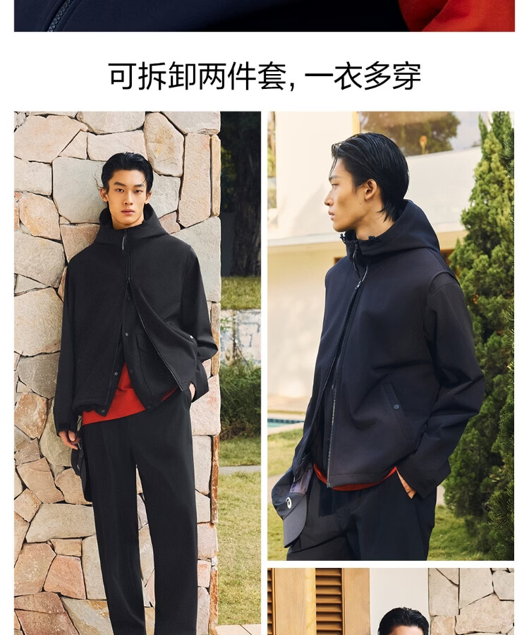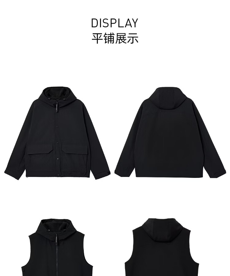 JACK&JONES AT series men's spring cotton-padded clothes detachable two-piece set of trendy tops loose and trendy 226109024 E43 pure black L (180)