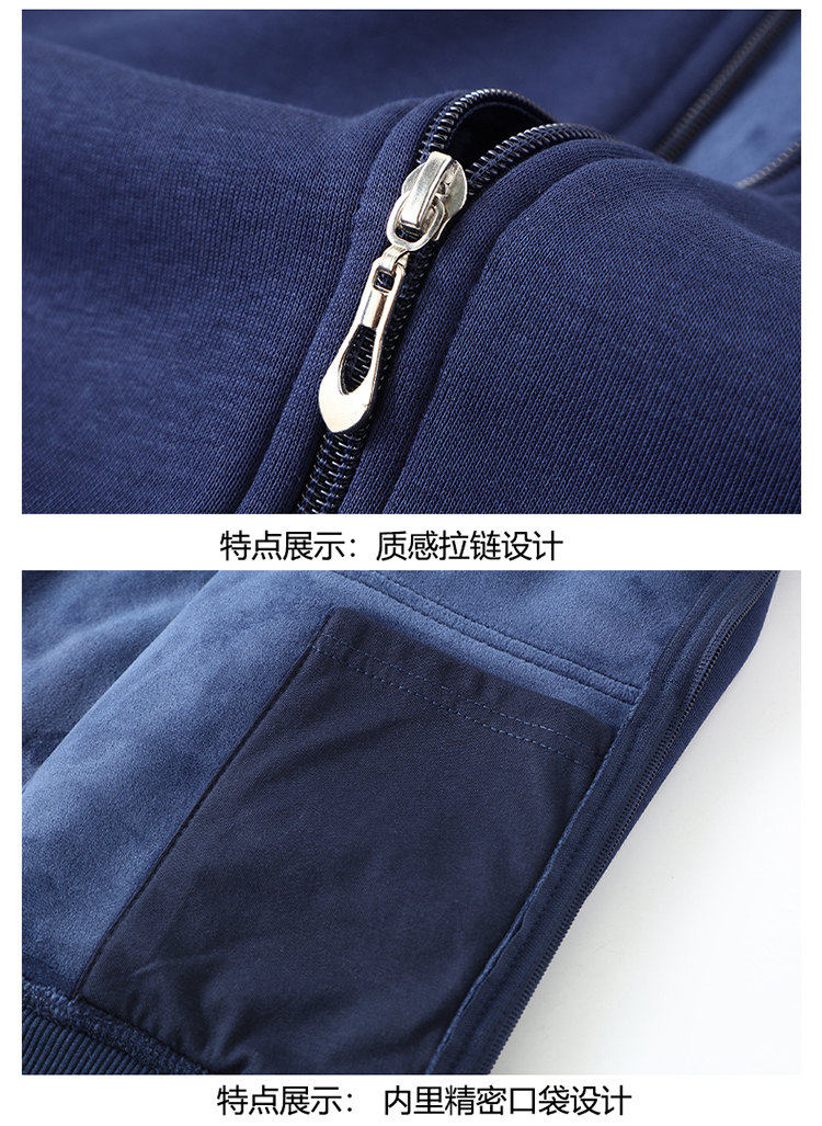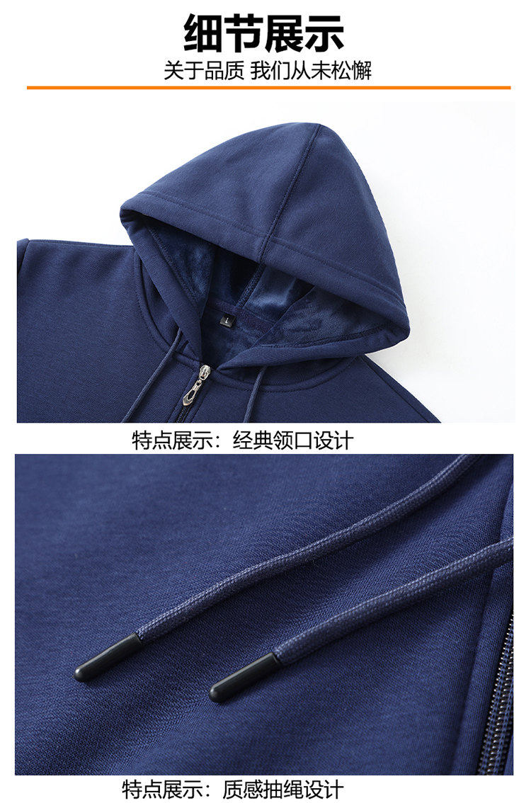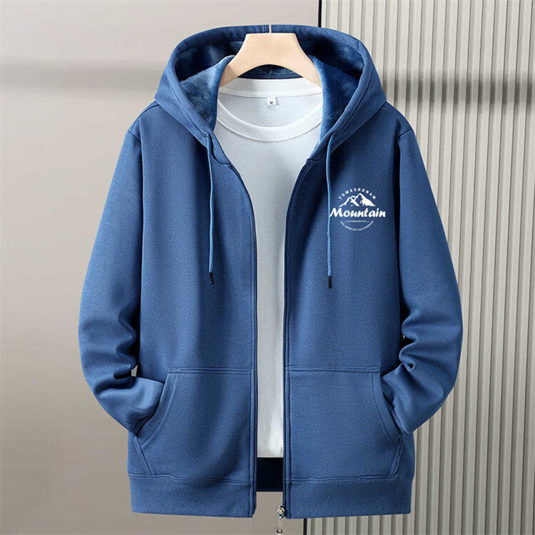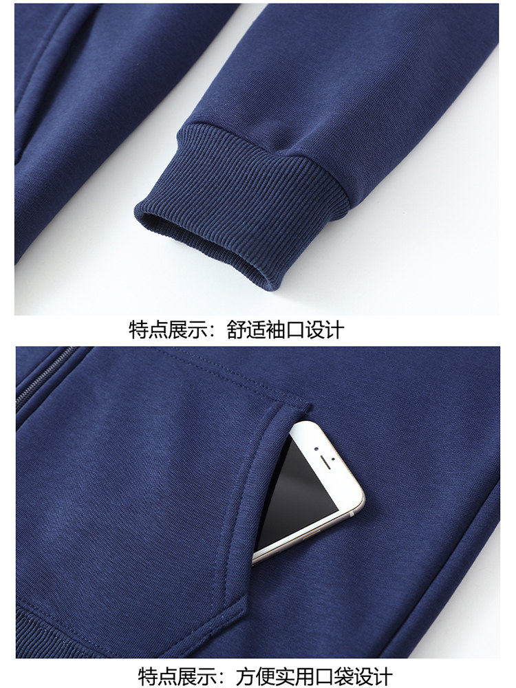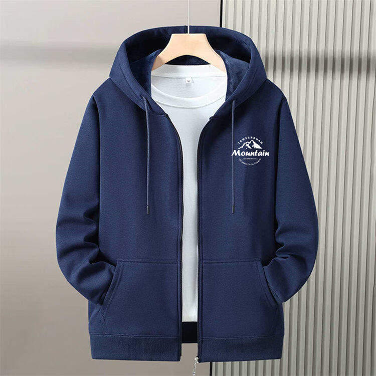 Romon zipper cardigan hooded sweatshirt men's spring, autumn and winter velvet thickened junior high school and high school student large size jacket, navy blue without velvet (hill) L