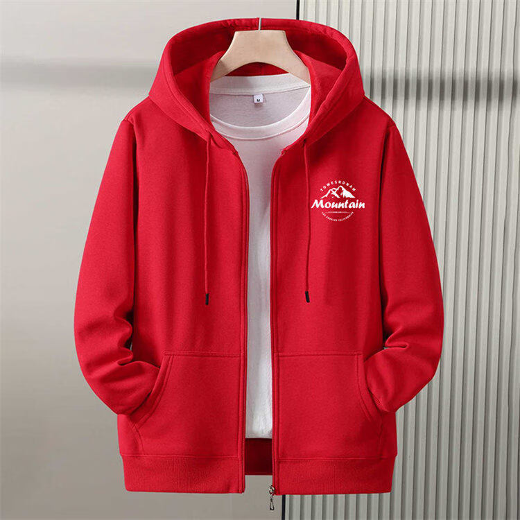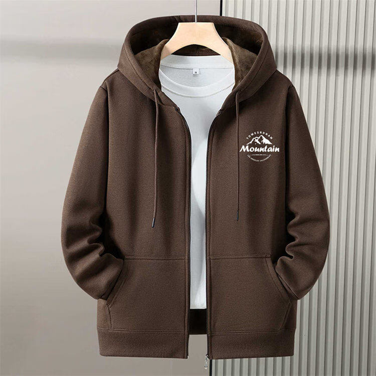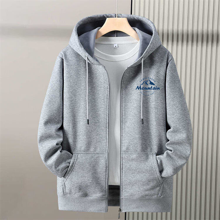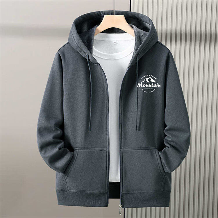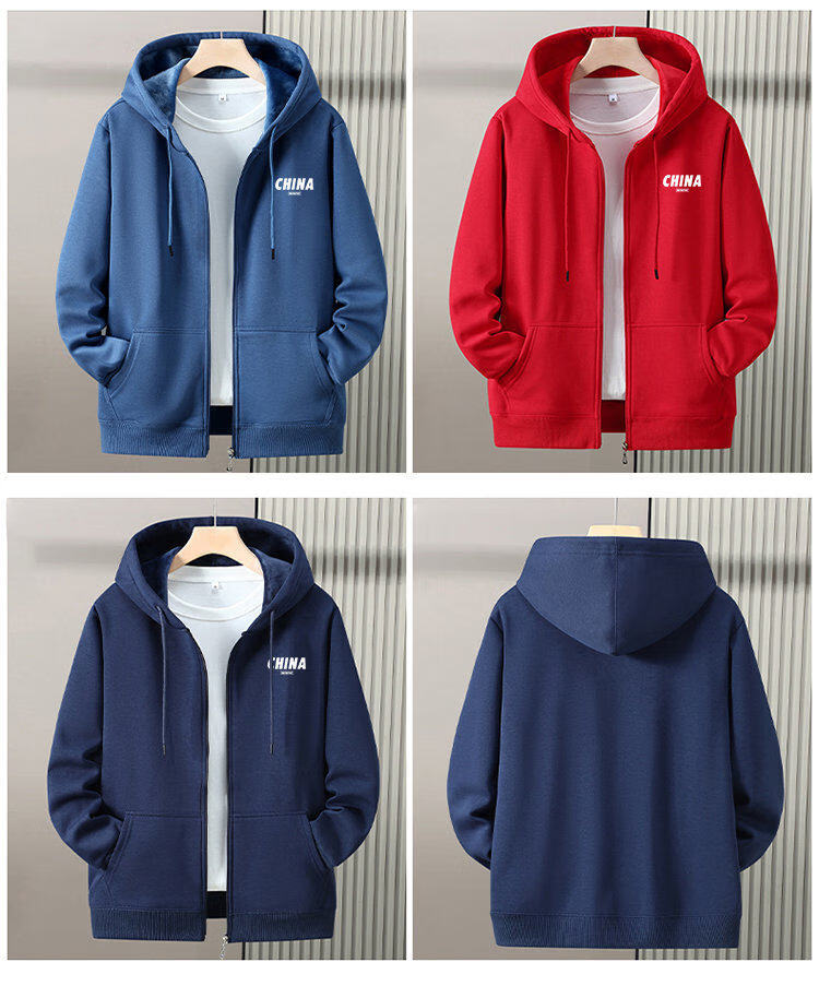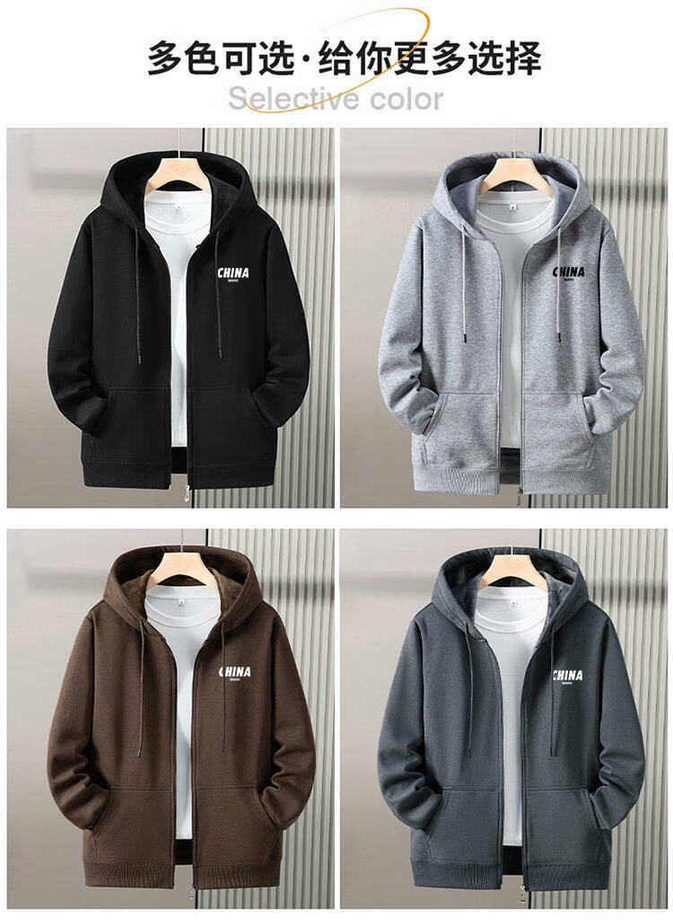 Romon zipper cardigan hooded sweatshirt men's spring, autumn and winter velvet thickened junior high school and high school student large size jacket, navy blue without velvet (hill) L