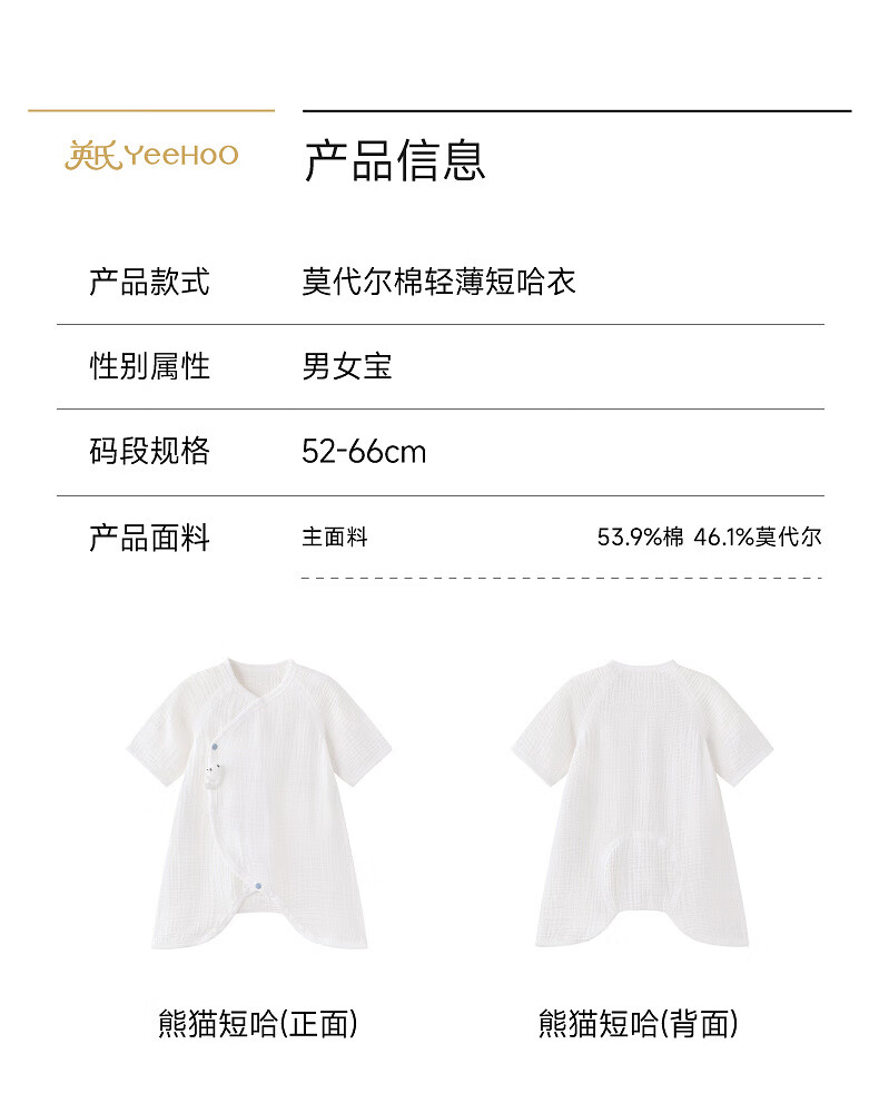 Yingshi shopping mall same style baby jumpsuit summer modal short-sleeved robe baby home jumpsuit panda short 52cm