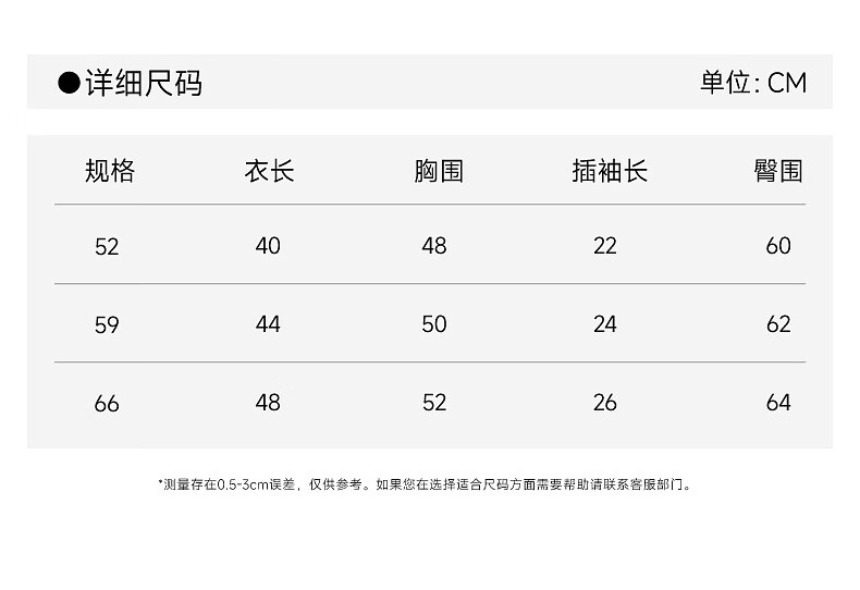 Size (cm) 42 44 46 48 50