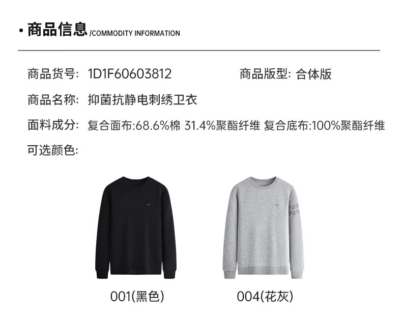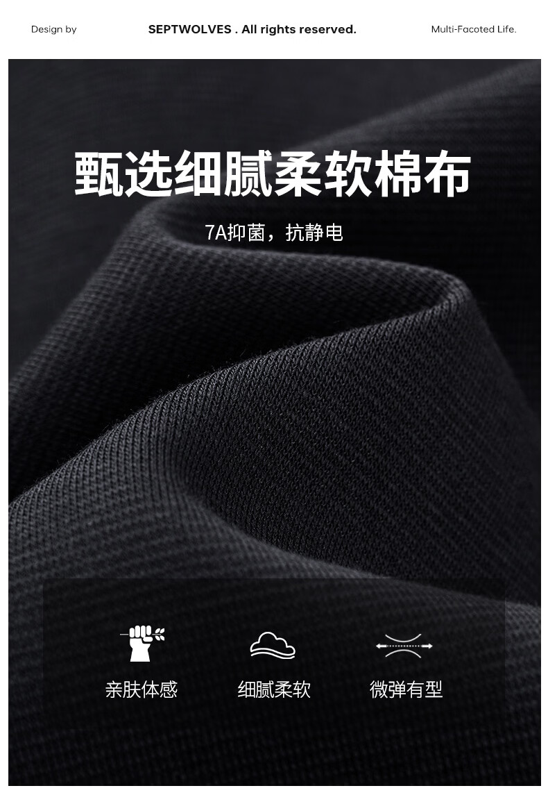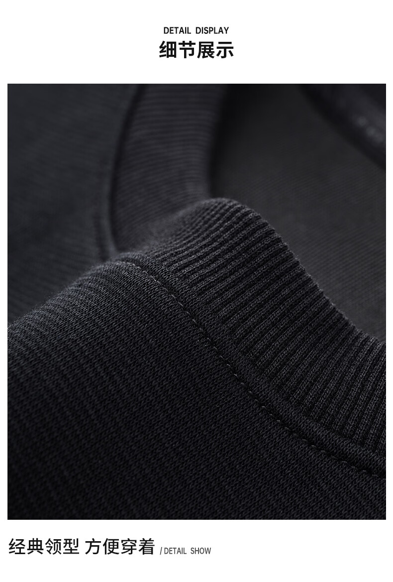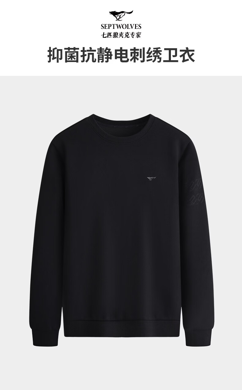 Septwolves 7A antibacterial and antistatic round neck sweatshirt spring and autumn new casual long-sleeved T-shirt tops for men 001 (black) XL 175/92A