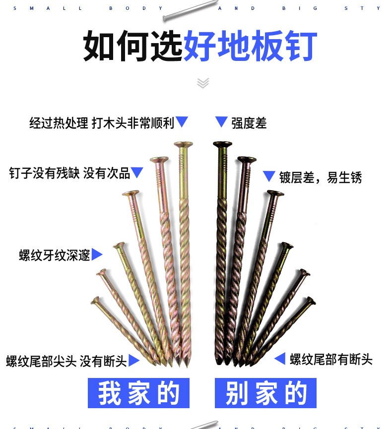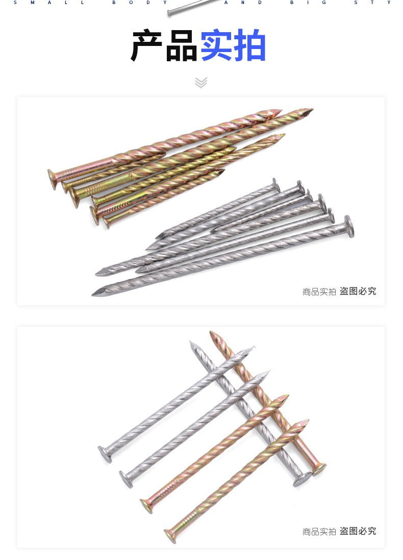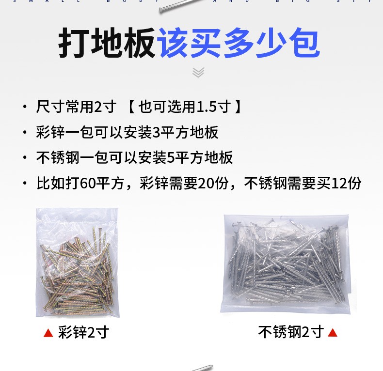 Jinggong brand two-color stainless steel plate nails, twist nails, threaded nails, keel nails, woodworking nails, anti-loosening nails, stainless steel 2 inches 5cm10Jin Jin equal to 0.5kg, about 2450 pieces
