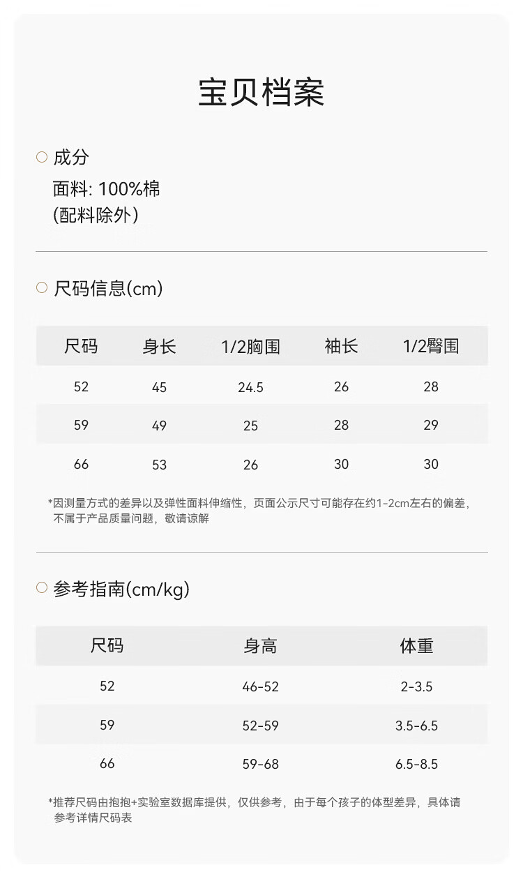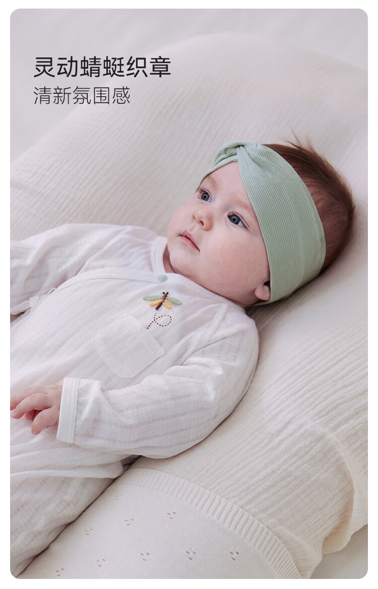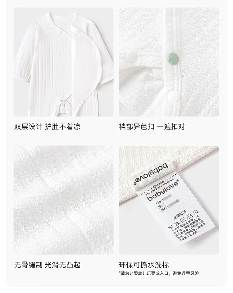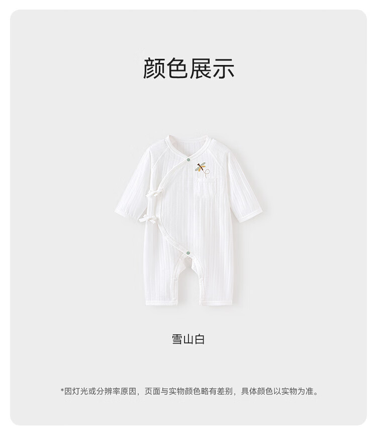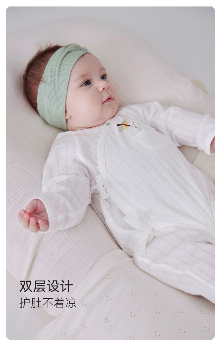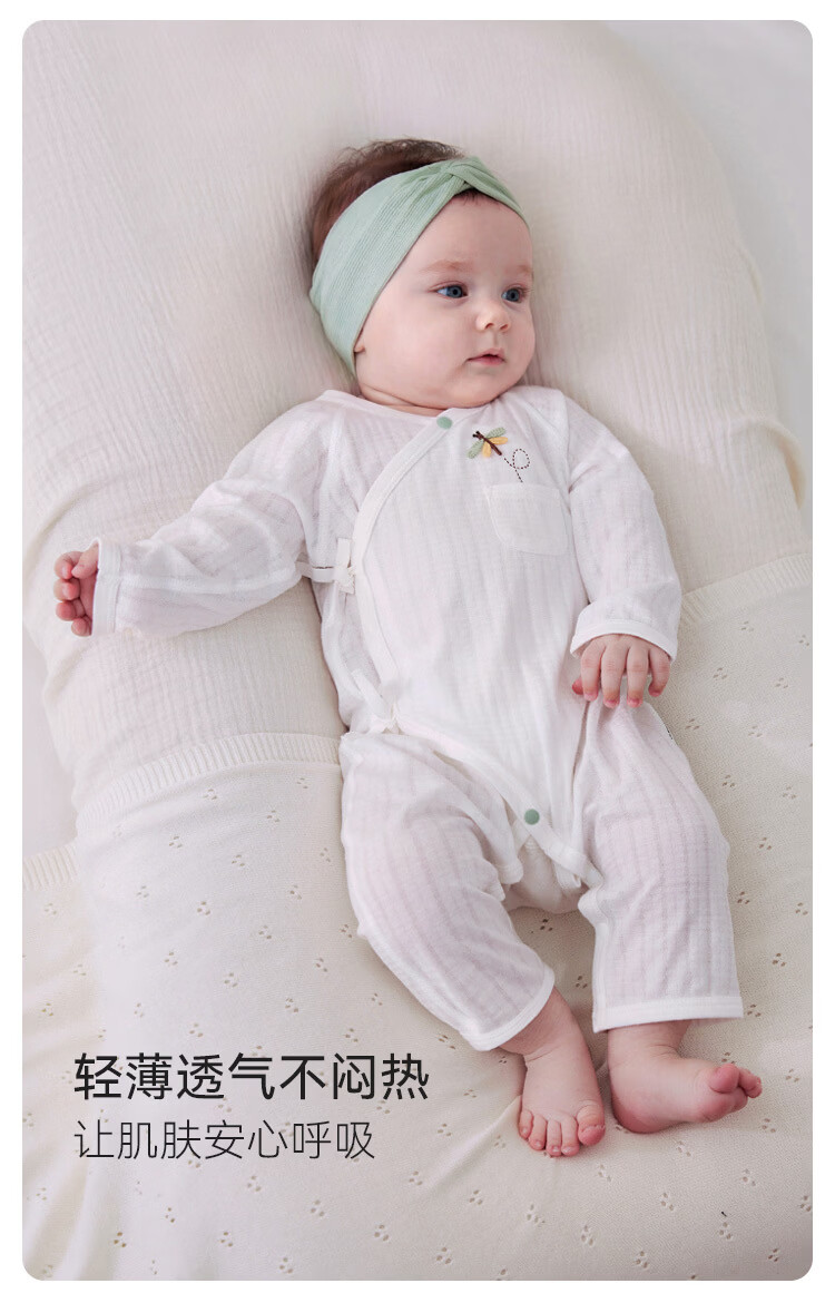 Babylove newborn jumpsuit spring and summer pure cotton soft newborn baby lace-up jacquard breathable crawler suit snow mountain white 52cm