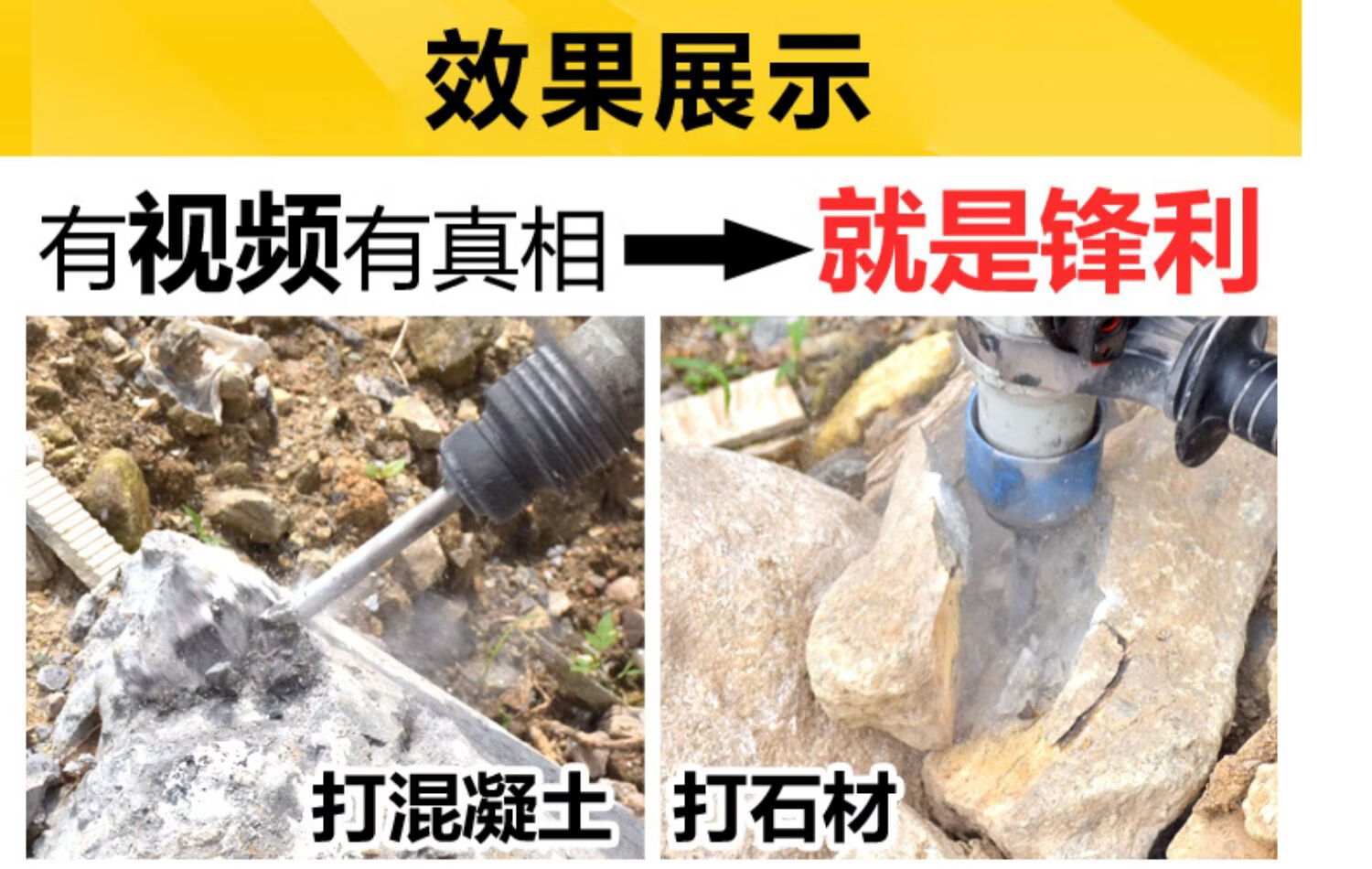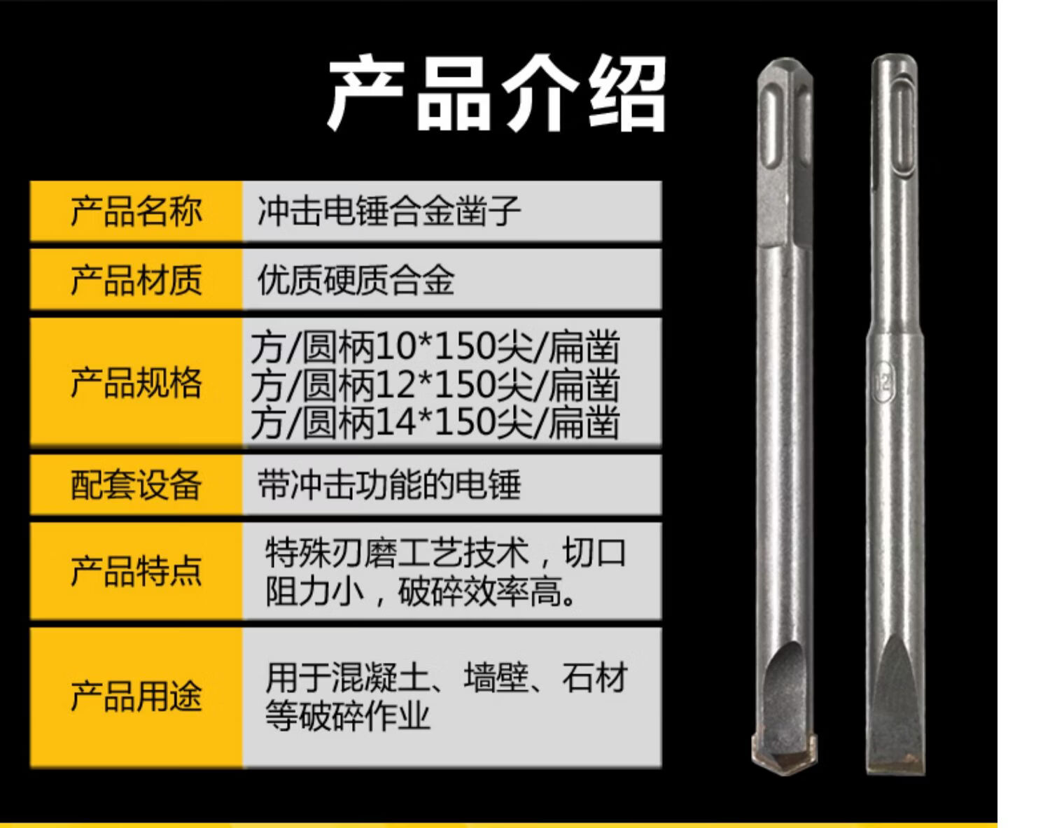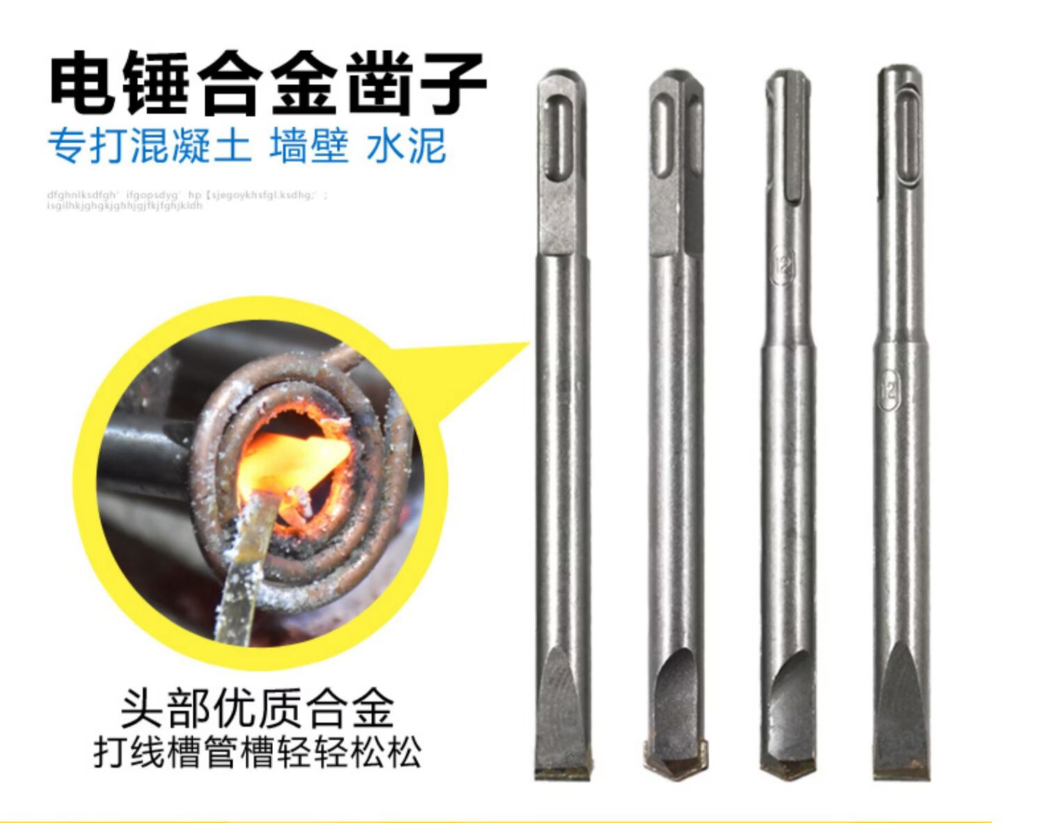 Electric hammer alloy chisel hexagonal handle square handle electric pick shovel head concrete slotting shovel wall king point flat shovel pick bit drill bit square handle 12*250 flat chisel (single)