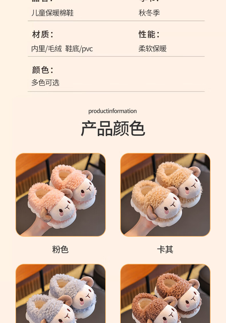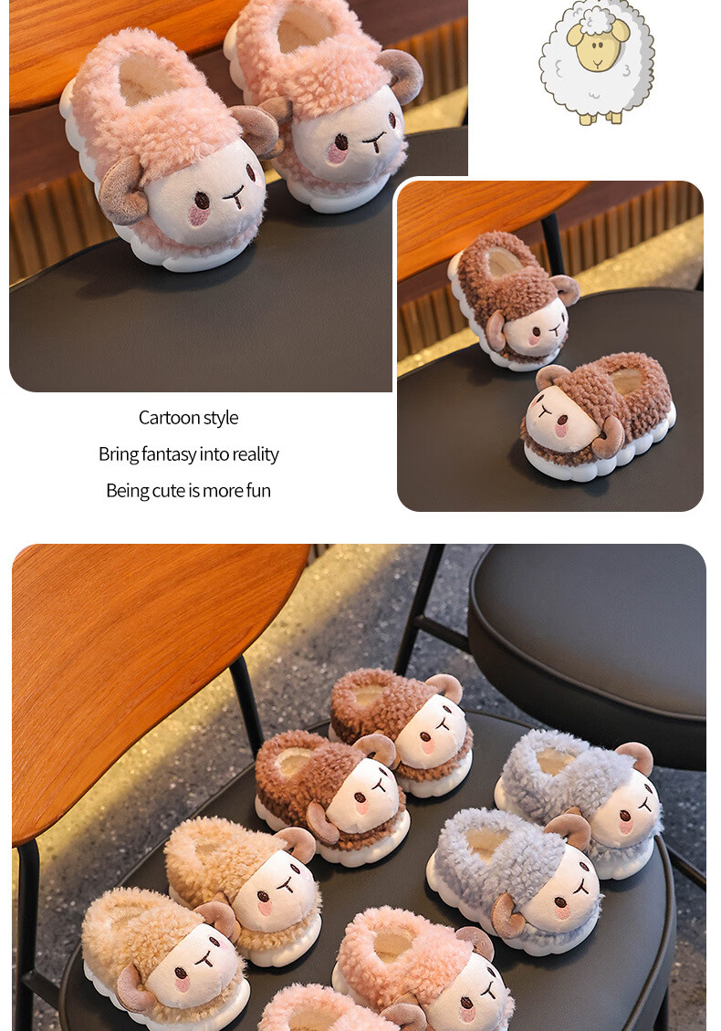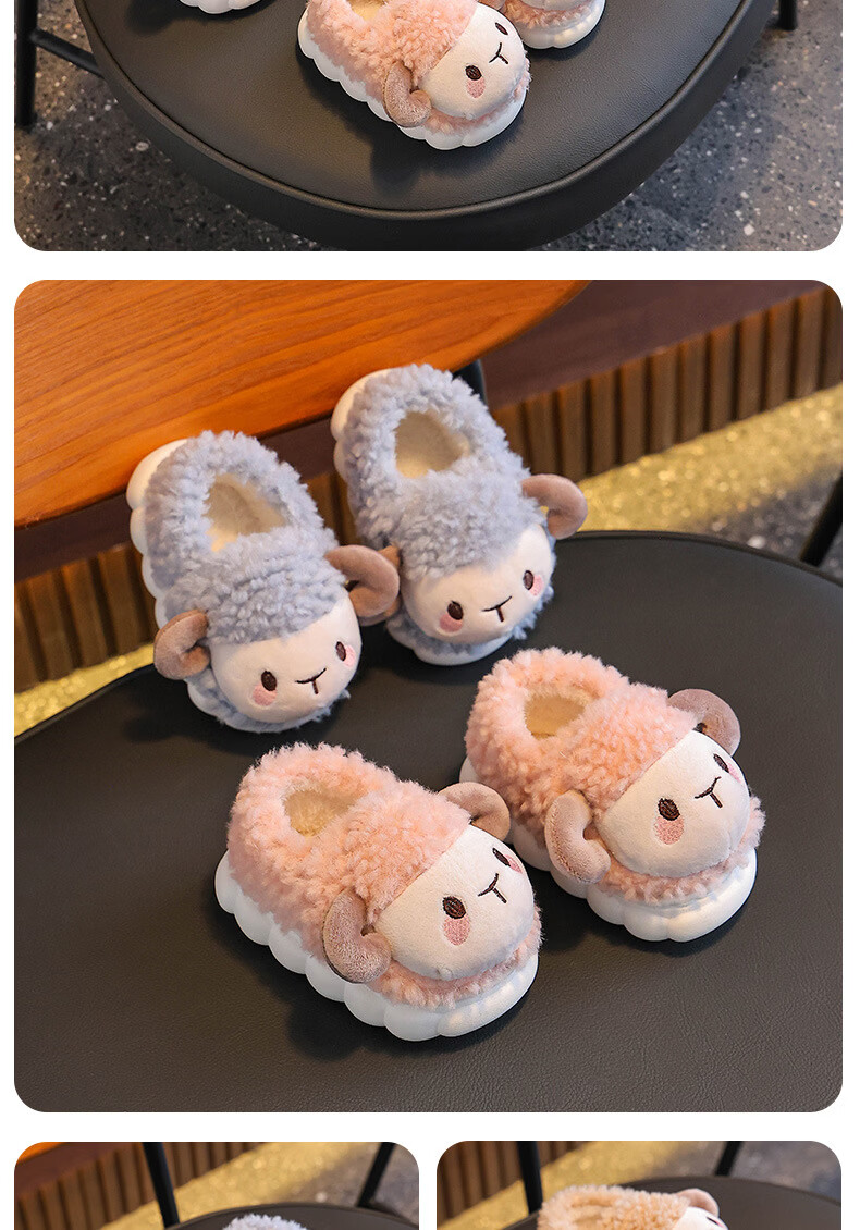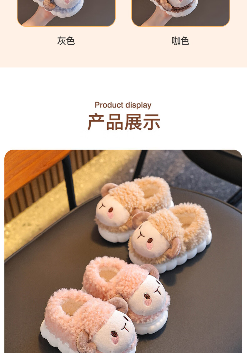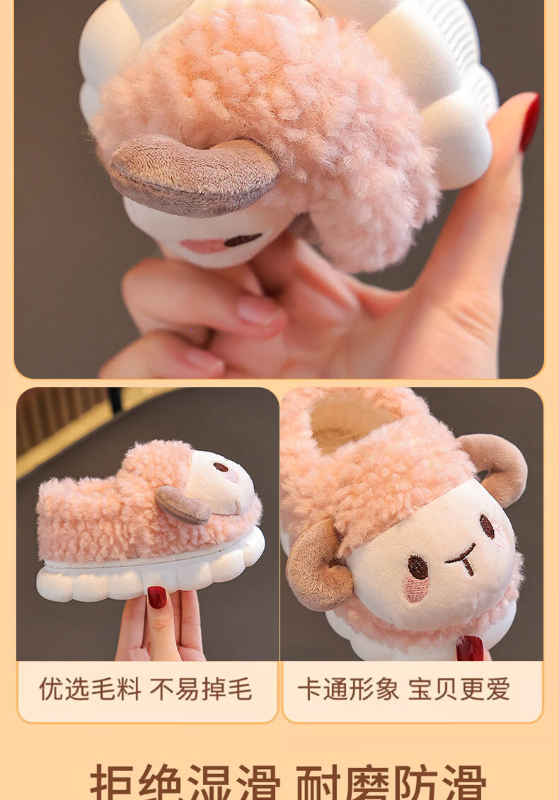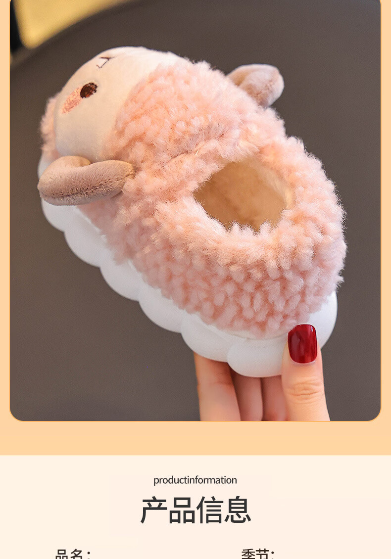 2025 New Children's Warm Plush Cotton Slippers Pink (Heel Included) Size 32 33 (Inside Shoe Length 19CM Suitable for Feet Length 18CM)