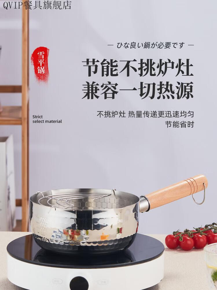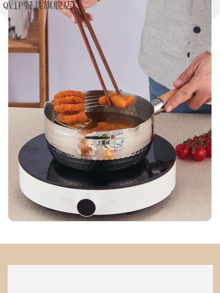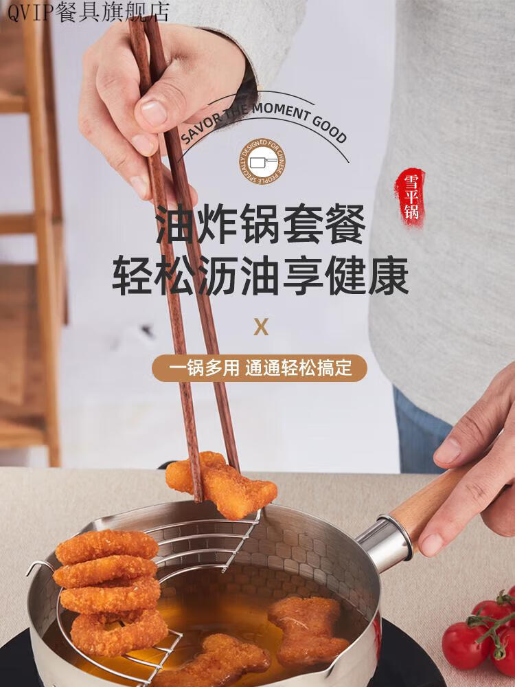 He Jiagong Fryer Stainless Steel Oil-Saving Fryer Hot Oil Splashing Small Pot Household Xiaoxue Flat Pot Skewers 22304 Extra Thick (No Cover) + Drain Rack - 250 1 Inch