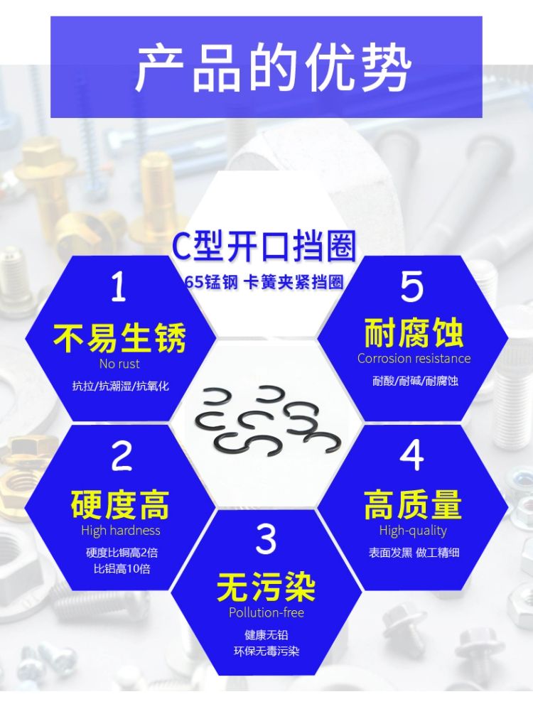 Customized 65 manganese C-shaped opening retaining ring C-type circlip clamping retaining ring M1800 crescent-shaped opening retaining ring 36*1 point 75100 pieces
