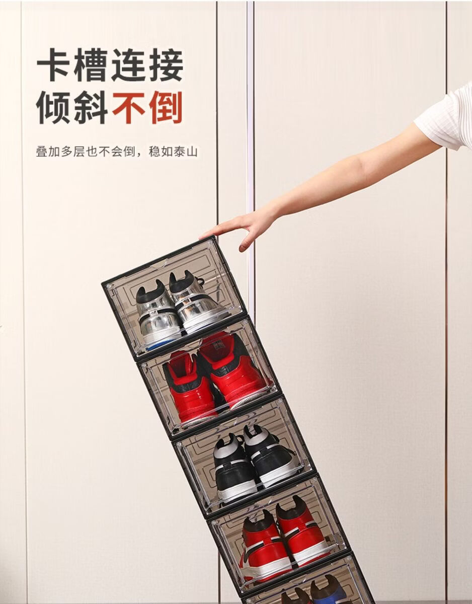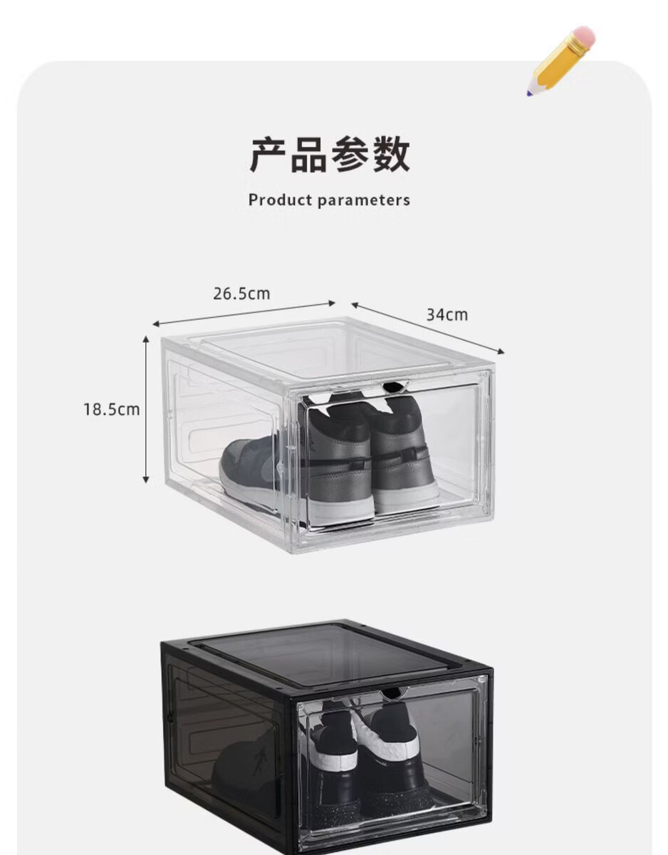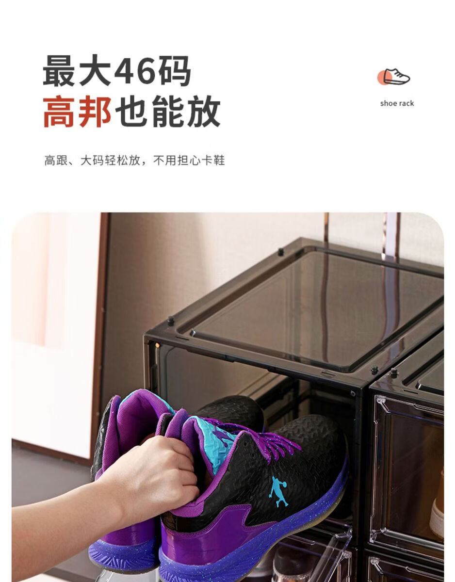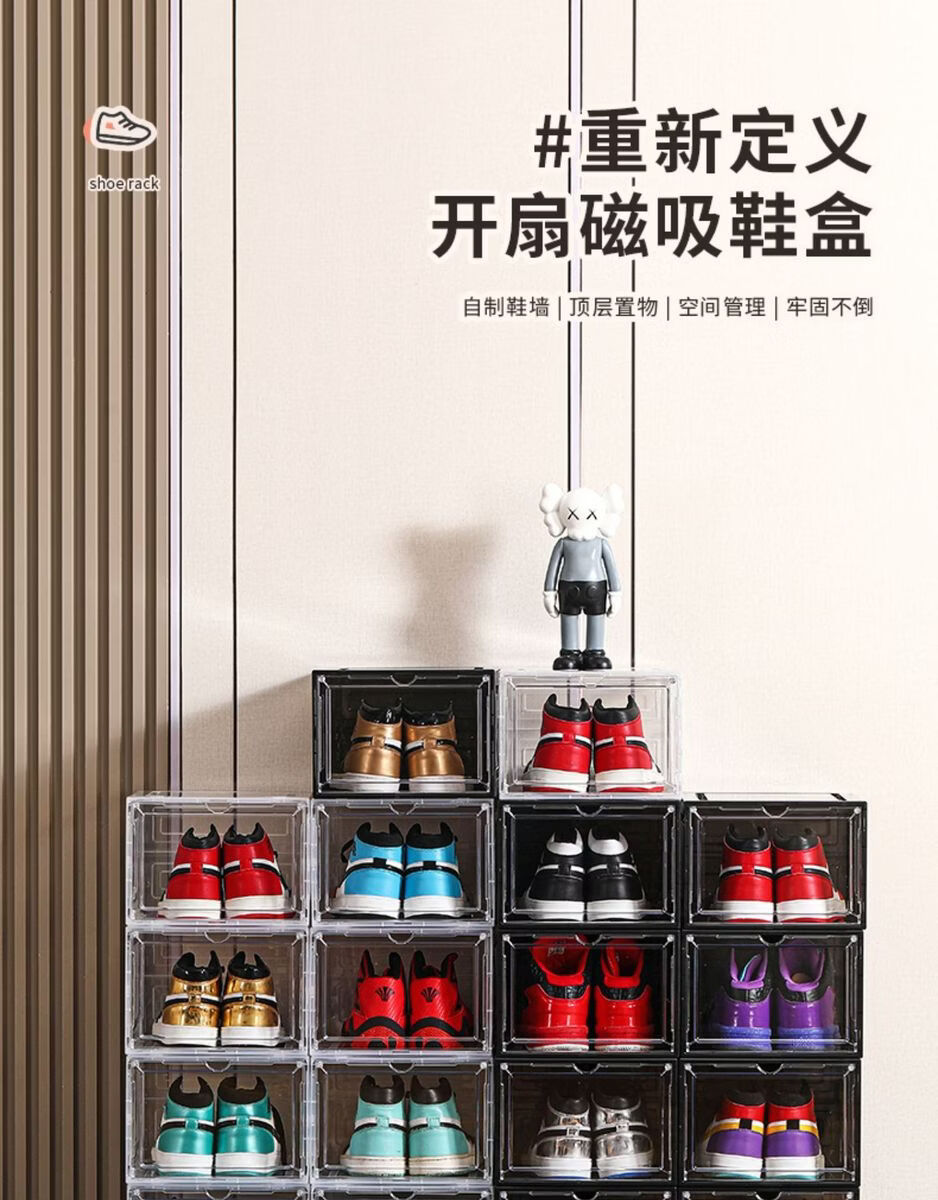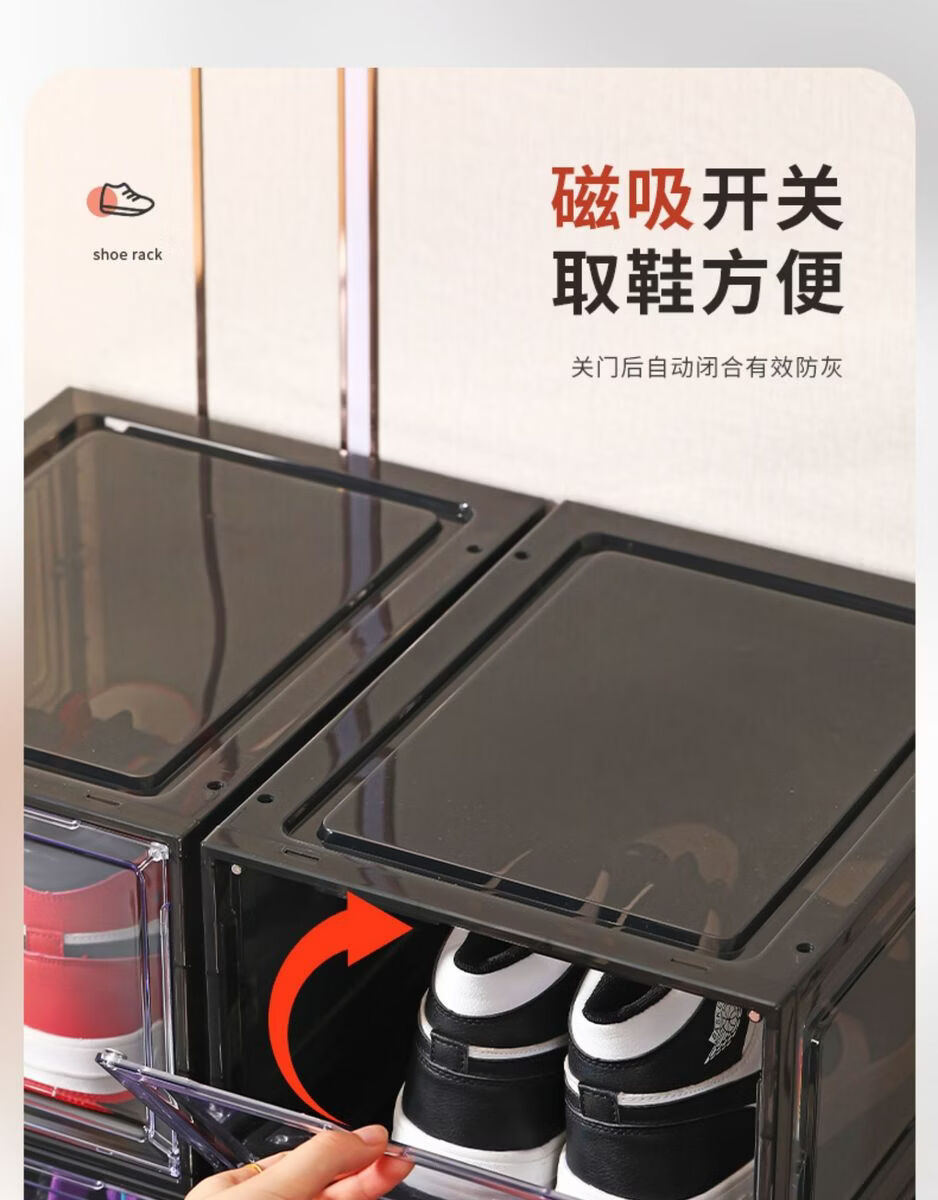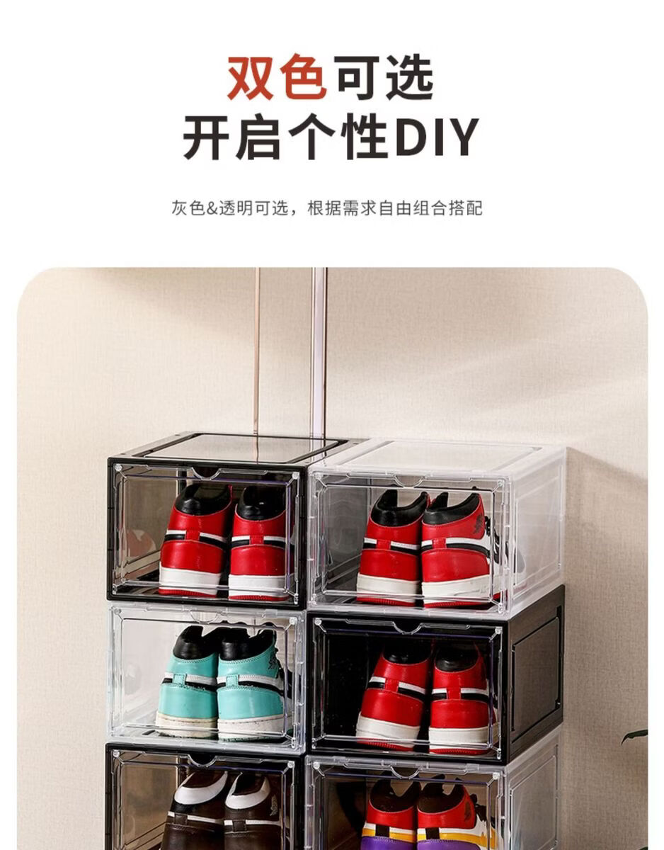 Yusenyi Magnetic High-top Sneaker Box Hard Plastic Thickened Solid Color Storage Box Acrylic Shoe Cabinet Shoe Rack Space-Saving Artifact 8349 Open Gray 3 Pack 34x26.5x18.5cm
