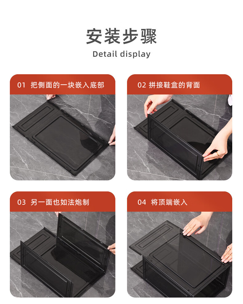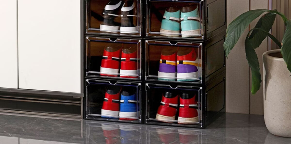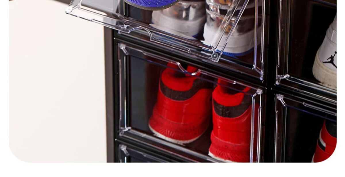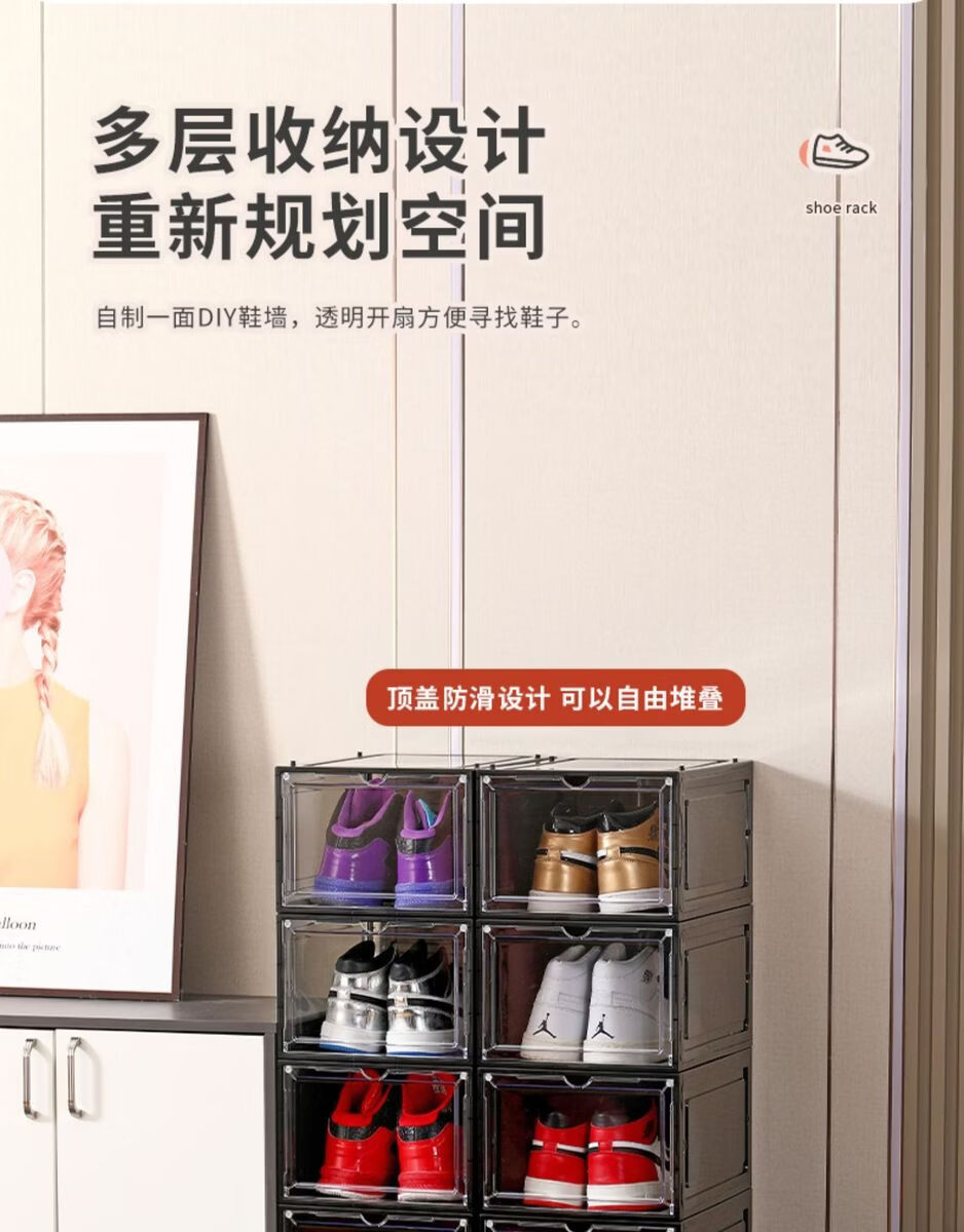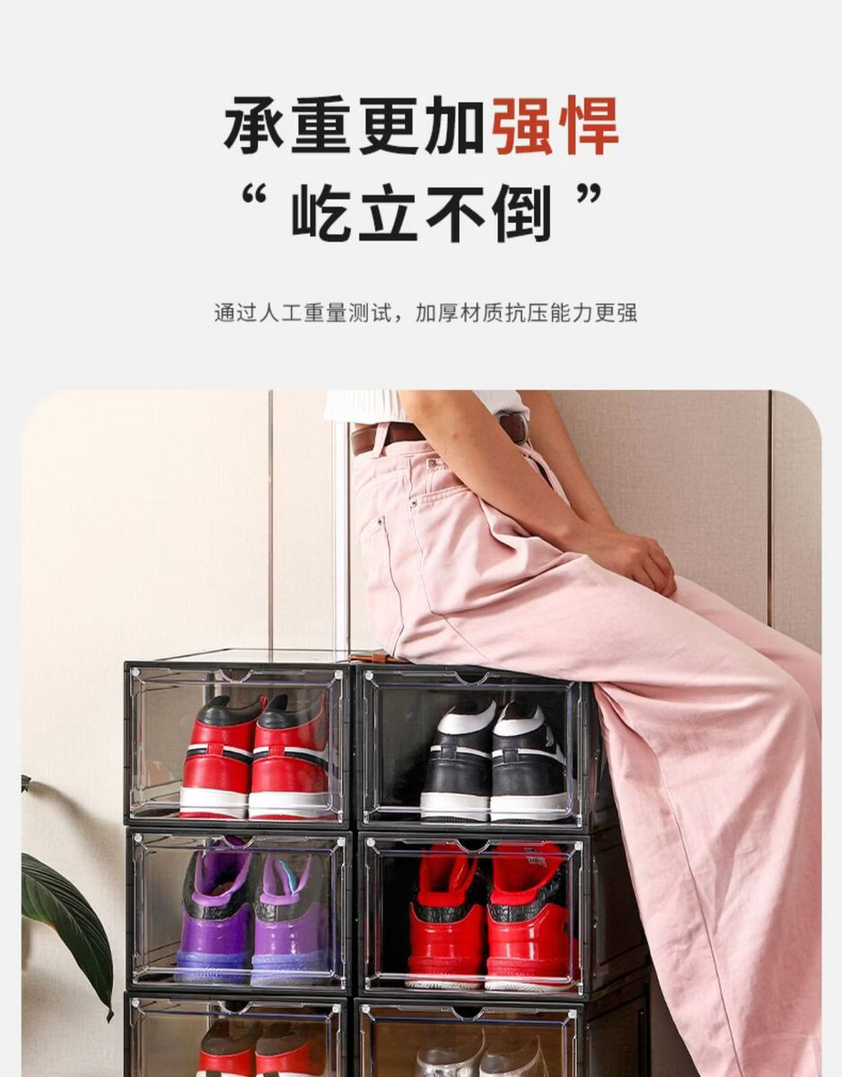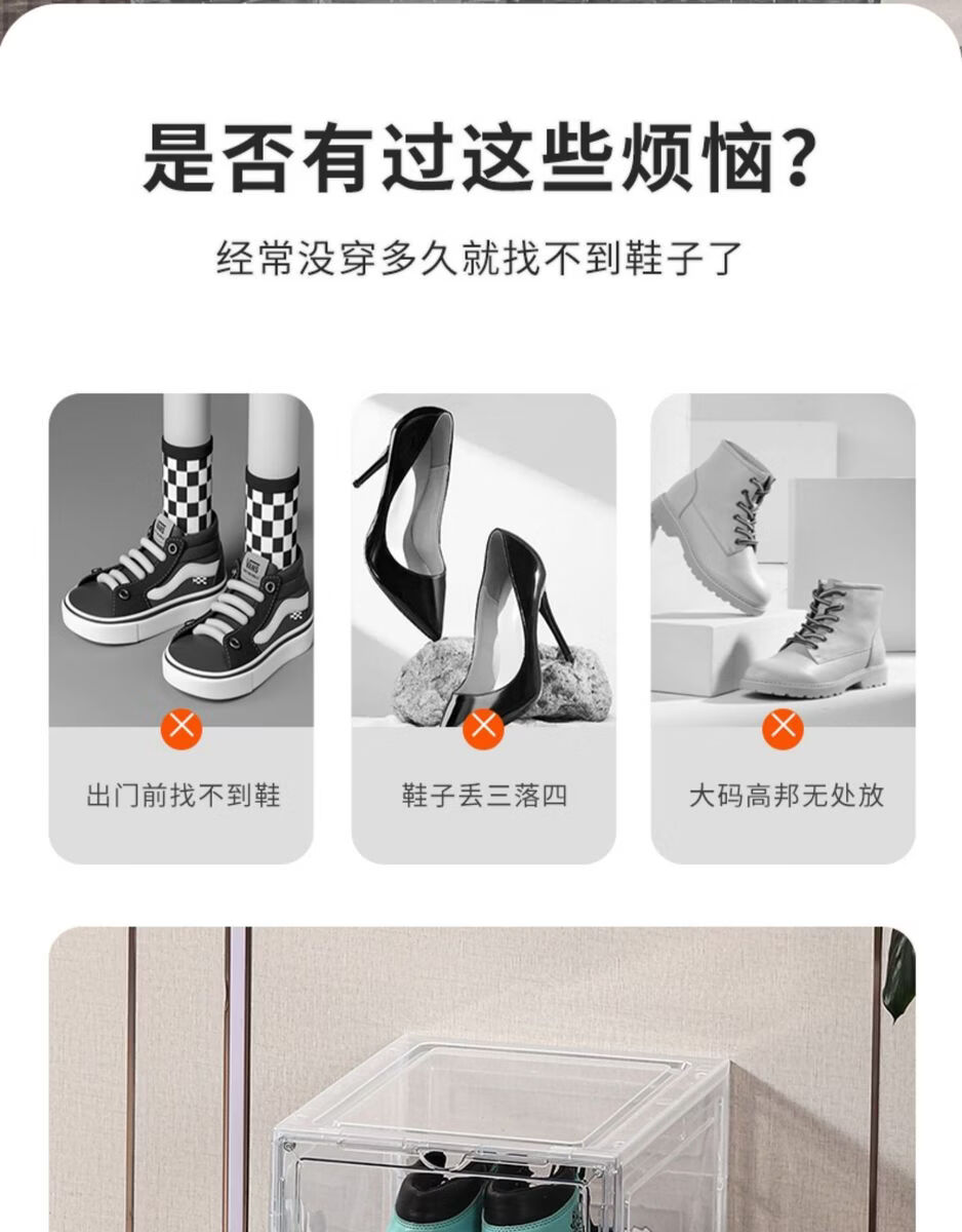 Yusenyi Magnetic High-top Sneaker Box Hard Plastic Thickened Solid Color Storage Box Acrylic Shoe Cabinet Shoe Rack Space-Saving Artifact 8349 Open Gray 3 Pack 34x26.5x18.5cm