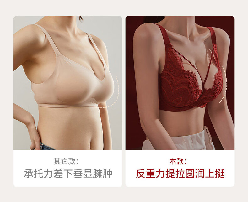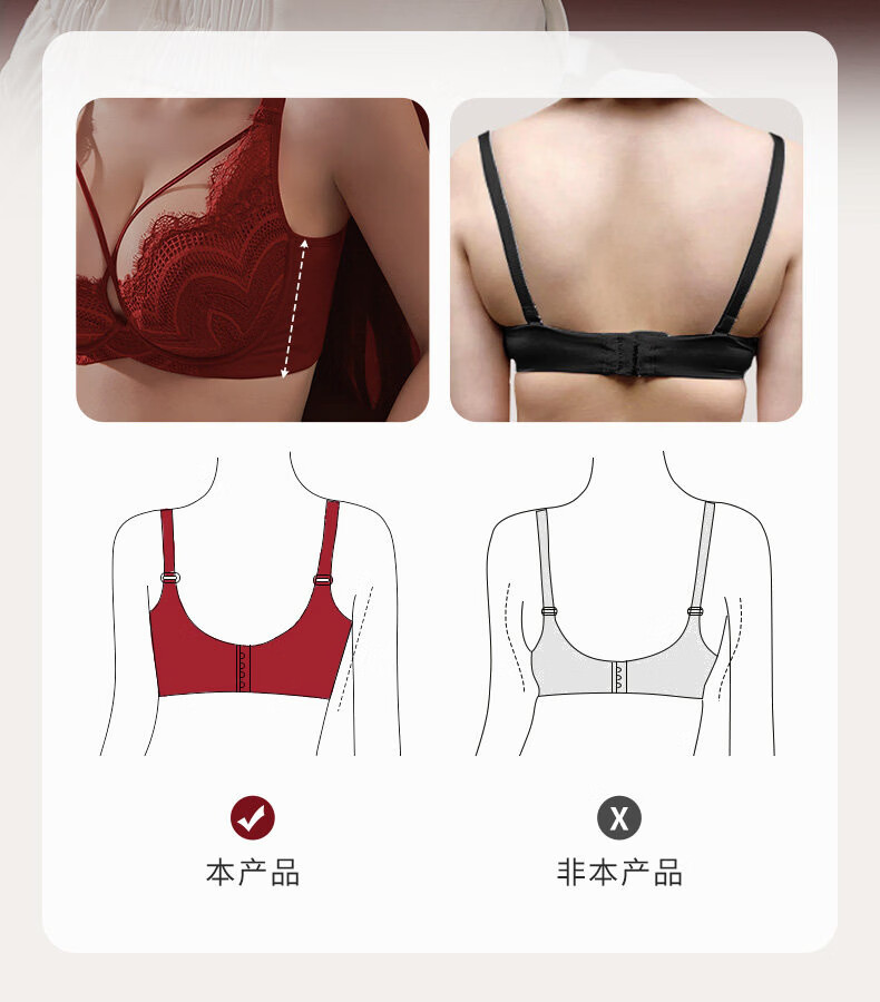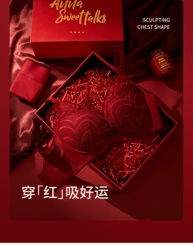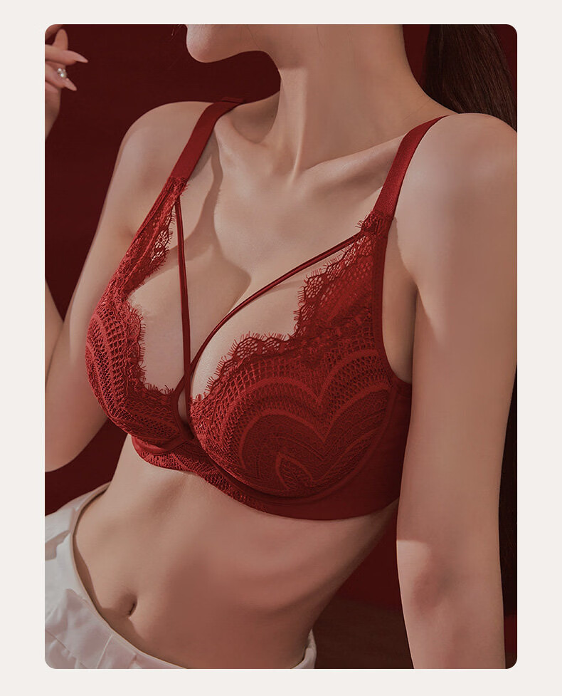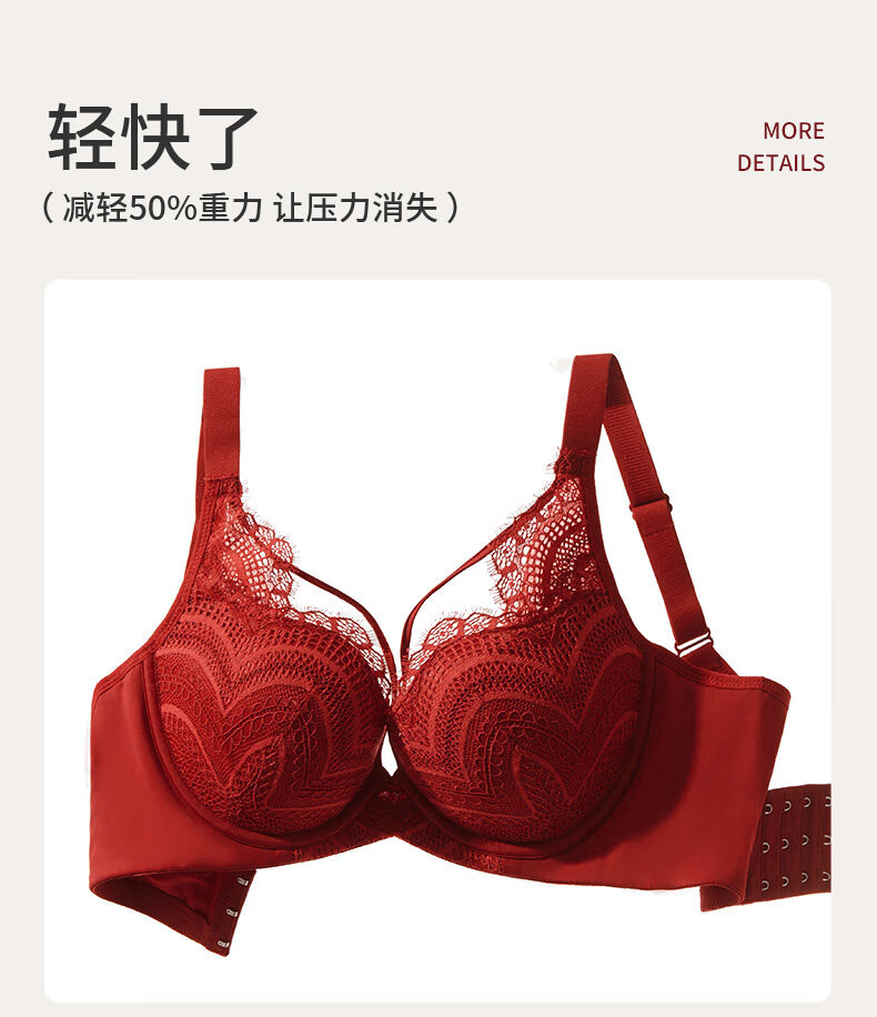 Oushiqian red benmingnian sexy lace underwear for women with big breasts, small upper support, secondary breast anti-sagging, large size bra, wine red M 34/75 (BC Tong cup)