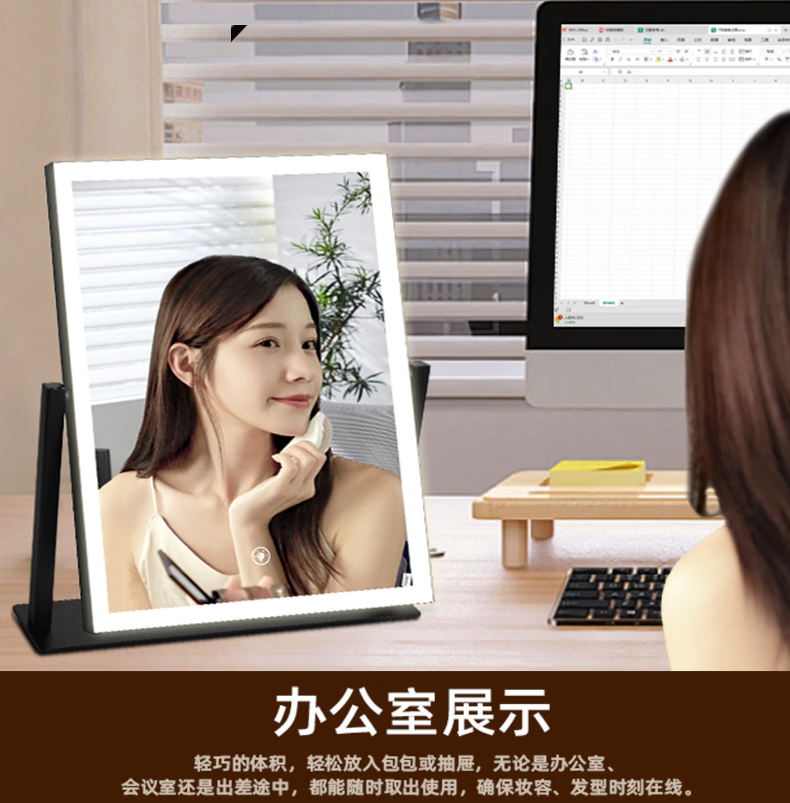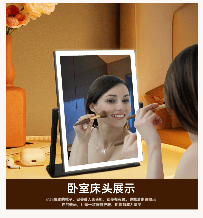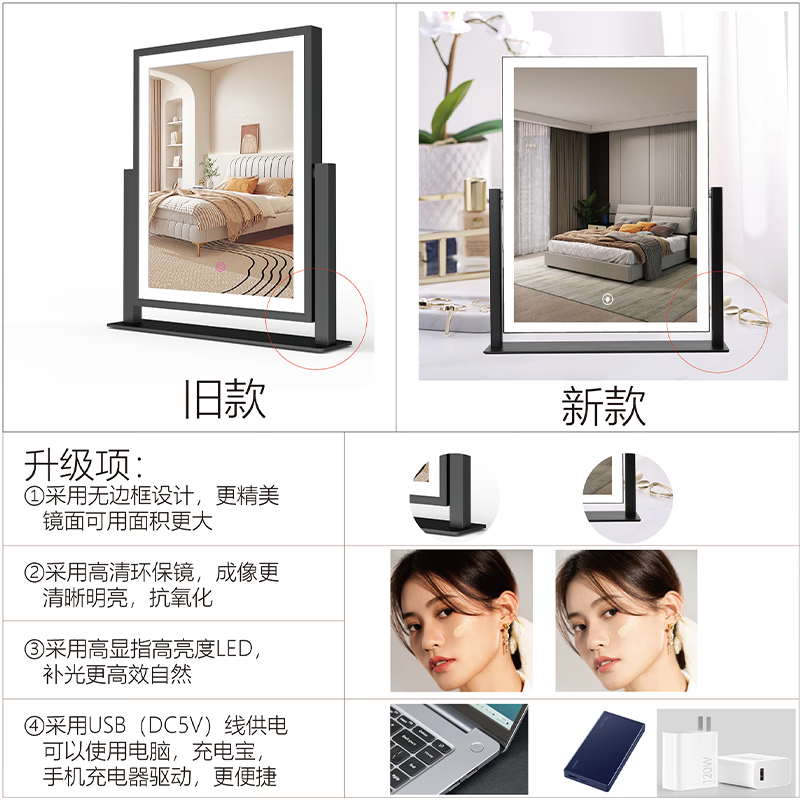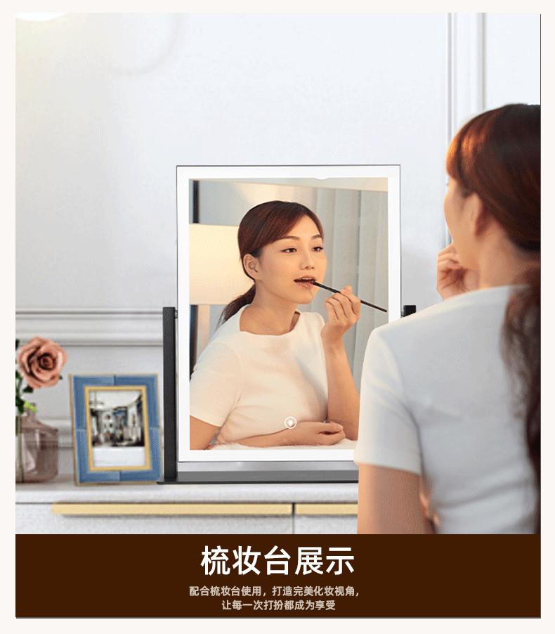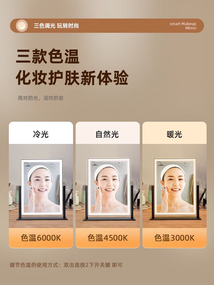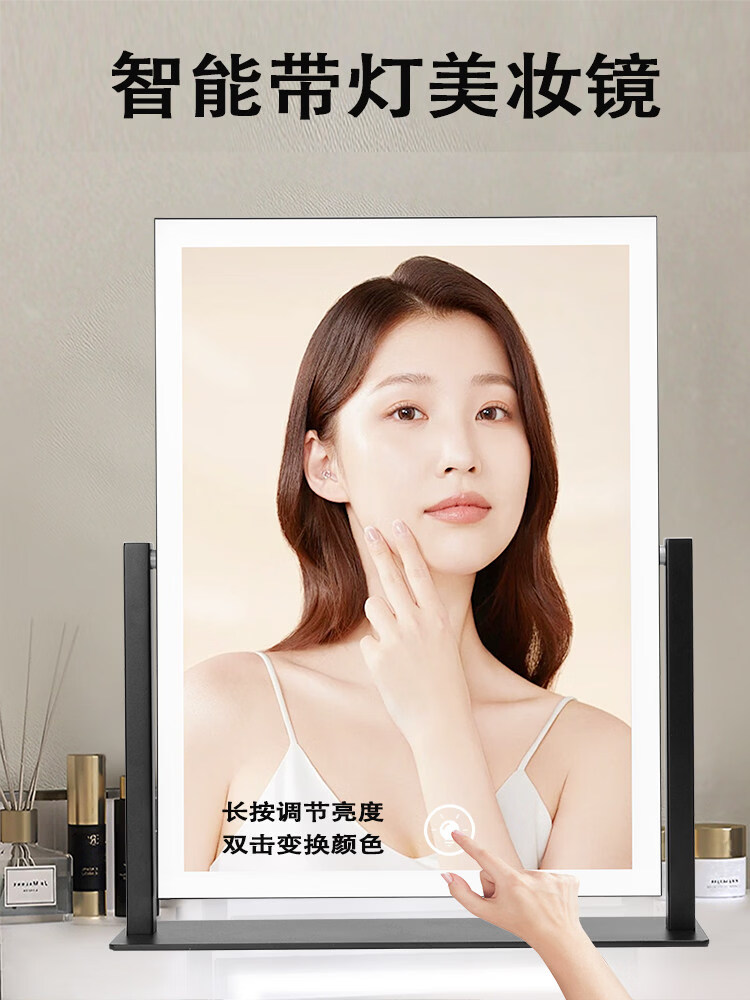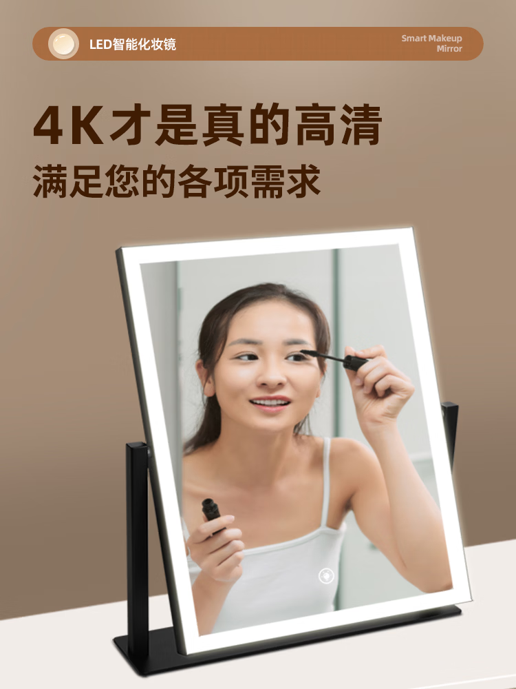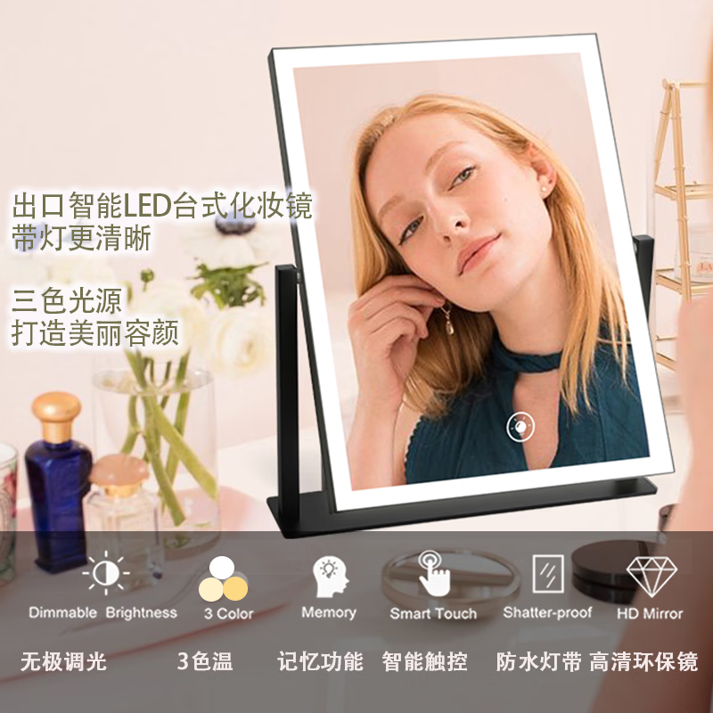 Makeup mirror with light LED smart make-up mirror, dressing table, rotatable make-up artist's special make-up mirror USB cable, white 32x30 plug-in use, free USB cable, the cable does not lead