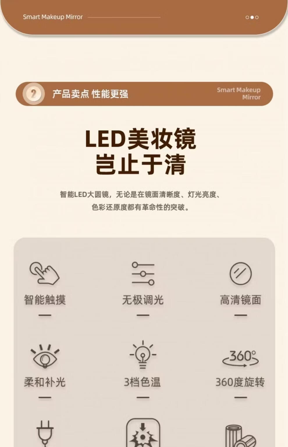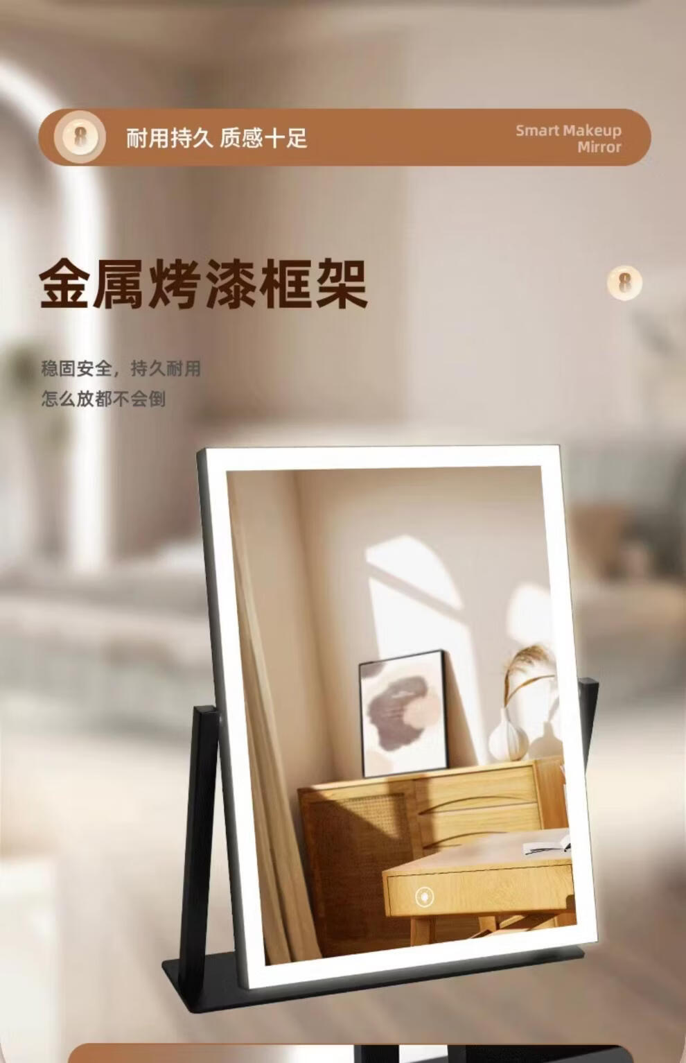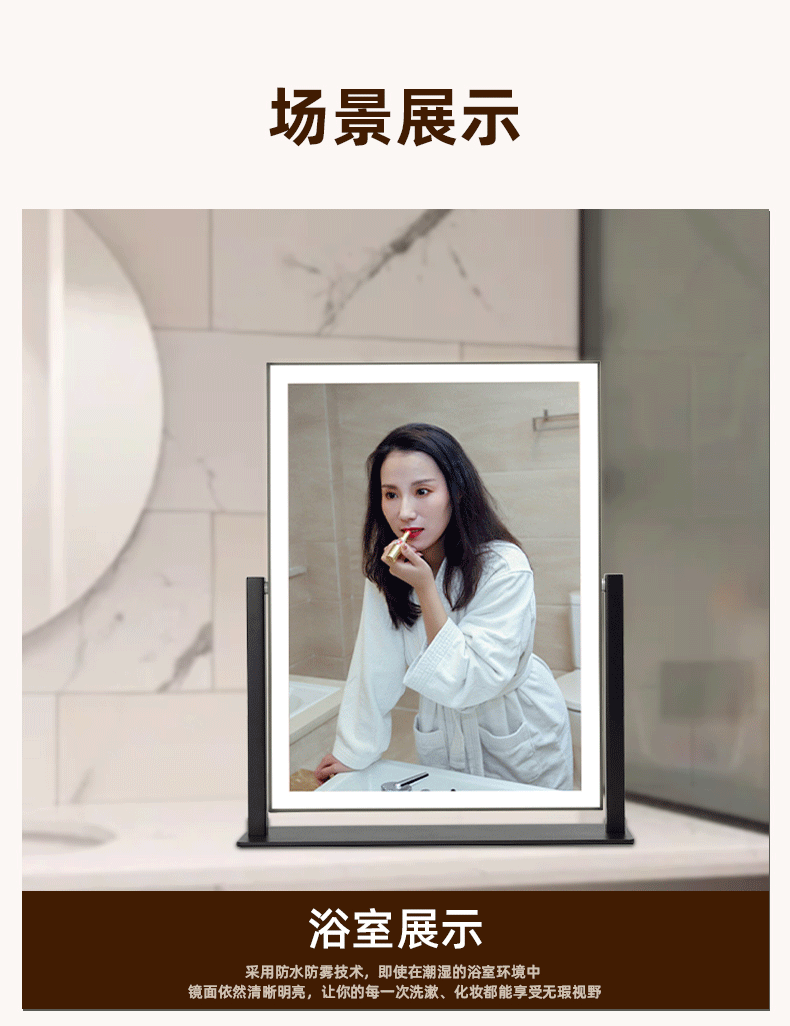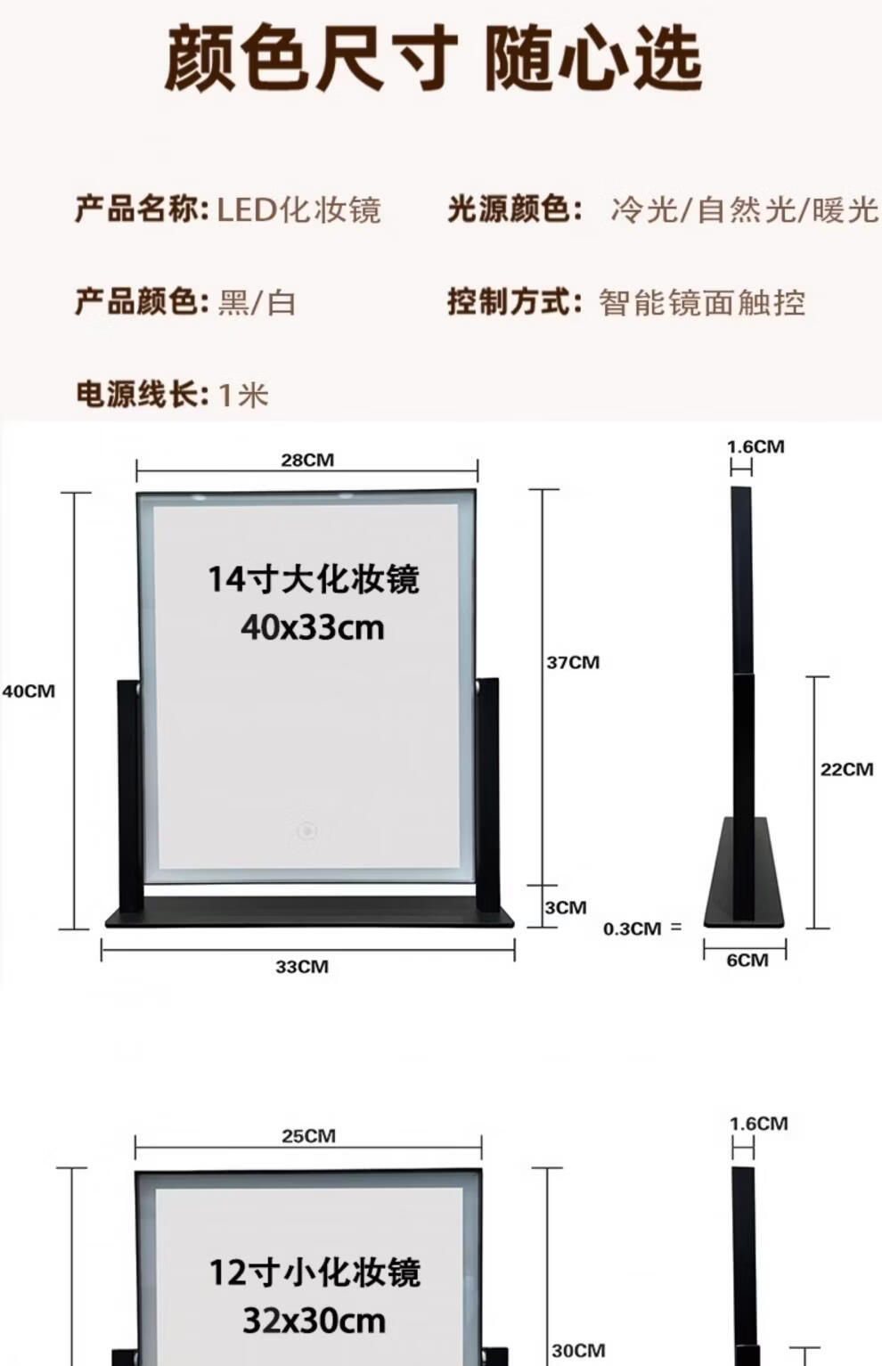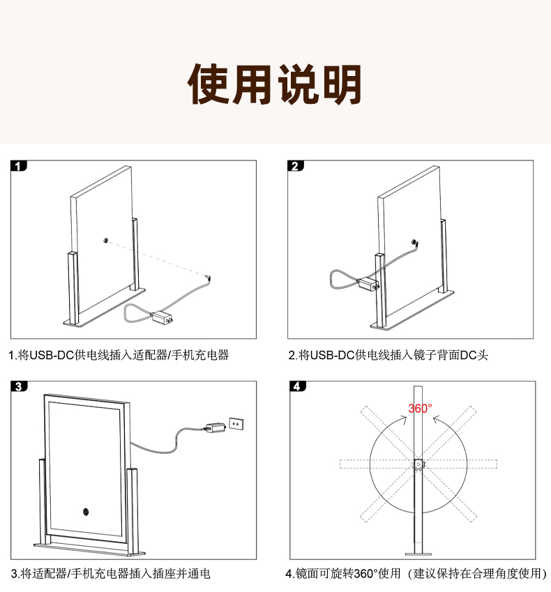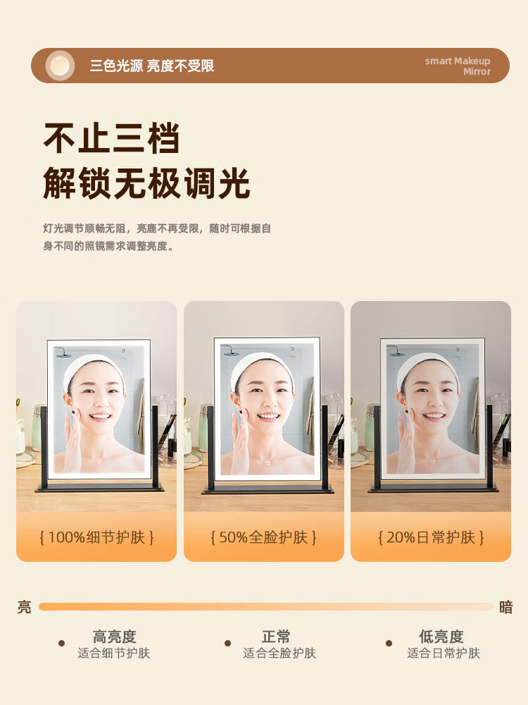 Makeup mirror with light LED smart make-up mirror, dressing table, rotatable make-up artist's special make-up mirror USB cable, white 32x30 plug-in use, free USB cable, the cable does not lead