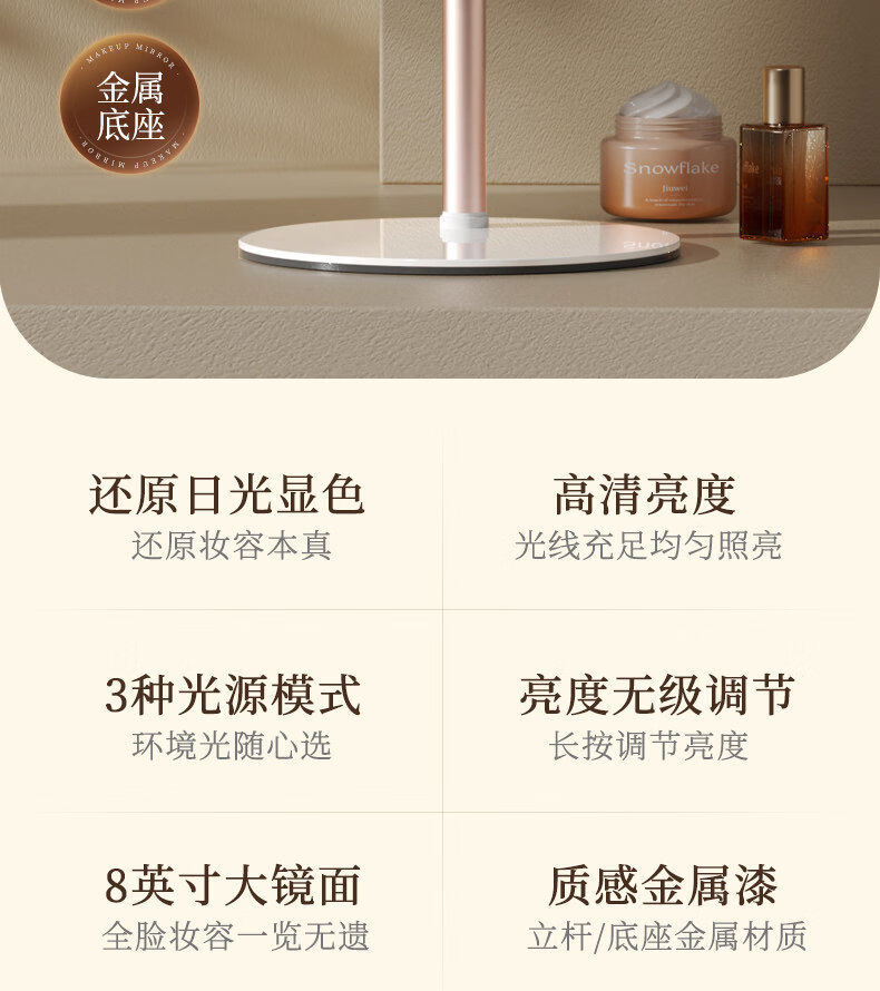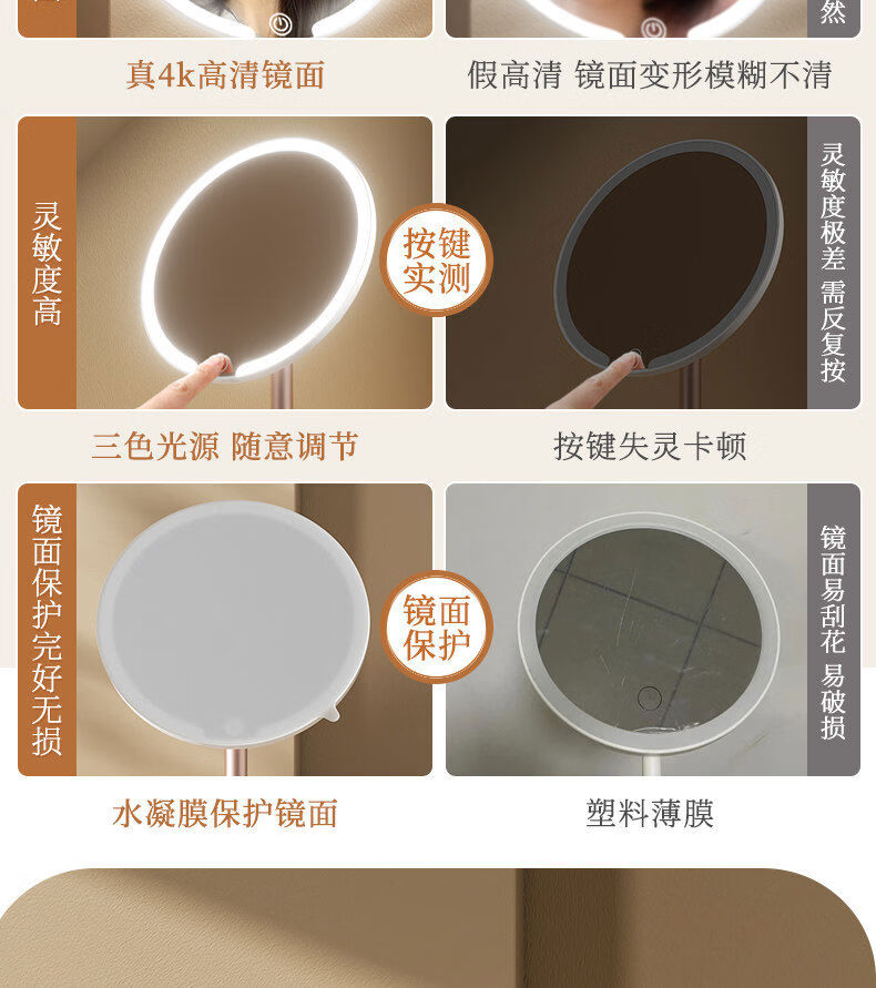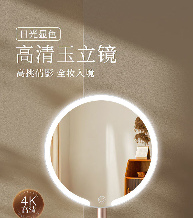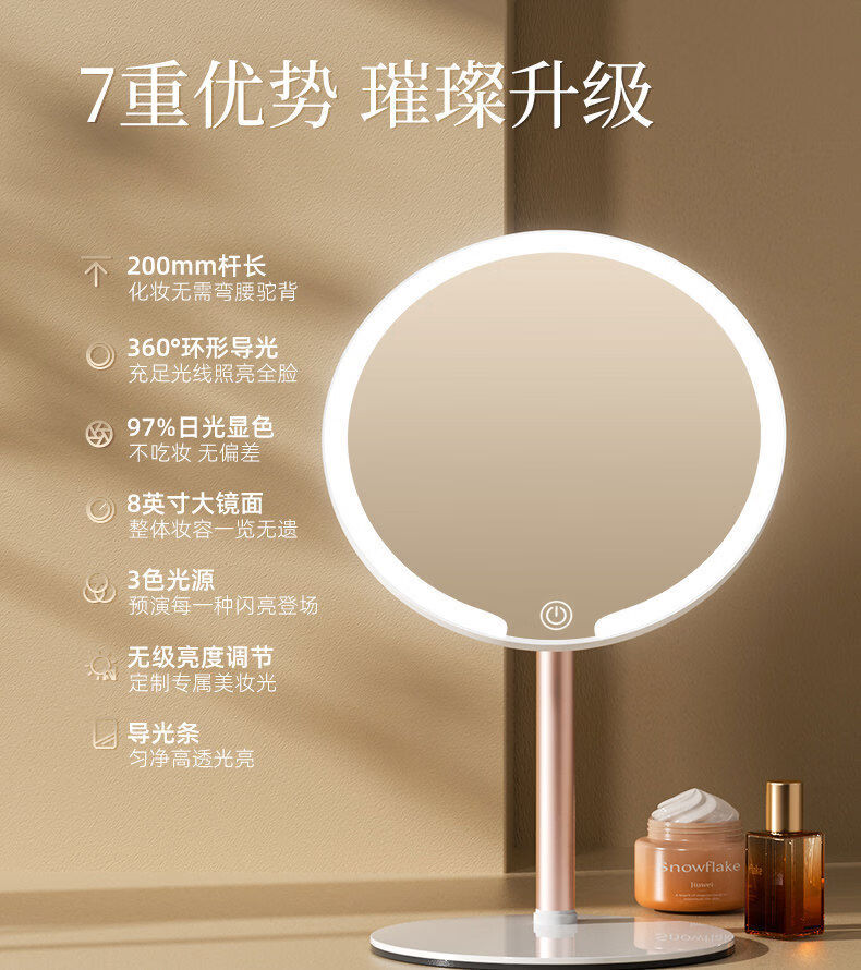 LED makeup mirror with light folding dresser smart high definition portable student dormitory desktop mirror light luxury fill light pearl 4k high definition standard model
