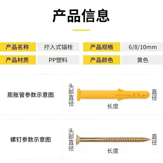 Sailotou plastic expansion screw wholesale small yellow croaker expansion nail dragon anchor expansion nail rubber plug 8mm 10mm American nail 6*0 half piece 150 pack 5700 sets
