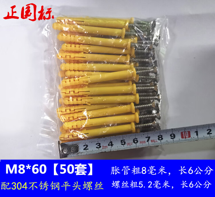 Fantasy Little Yellow Croaker 304 stainless steel wire plastic expansion tube self-tapping screw 681012mm expansion plug expansion screw M8*120 with 50 sets of stainless steel nails