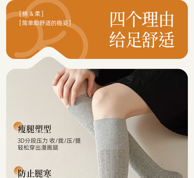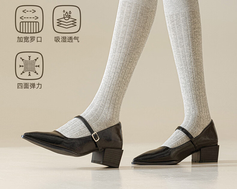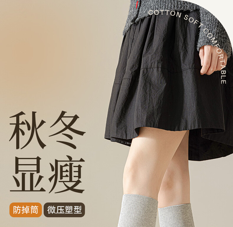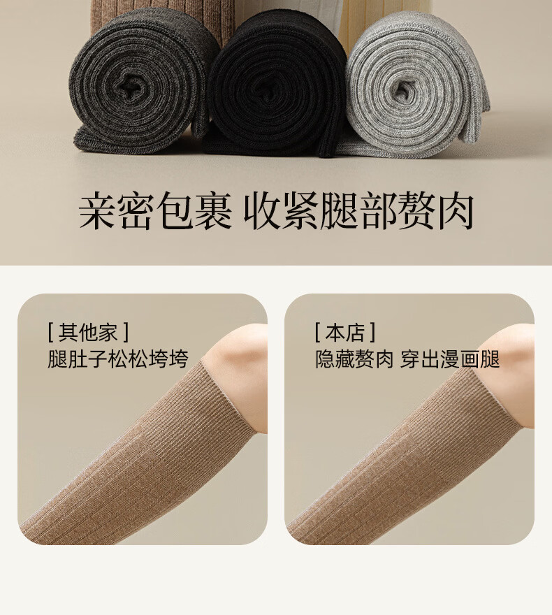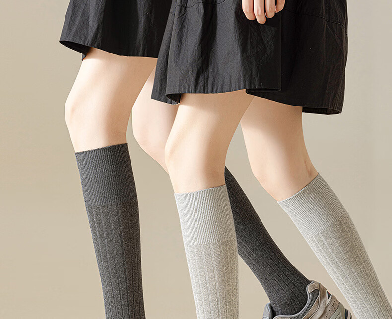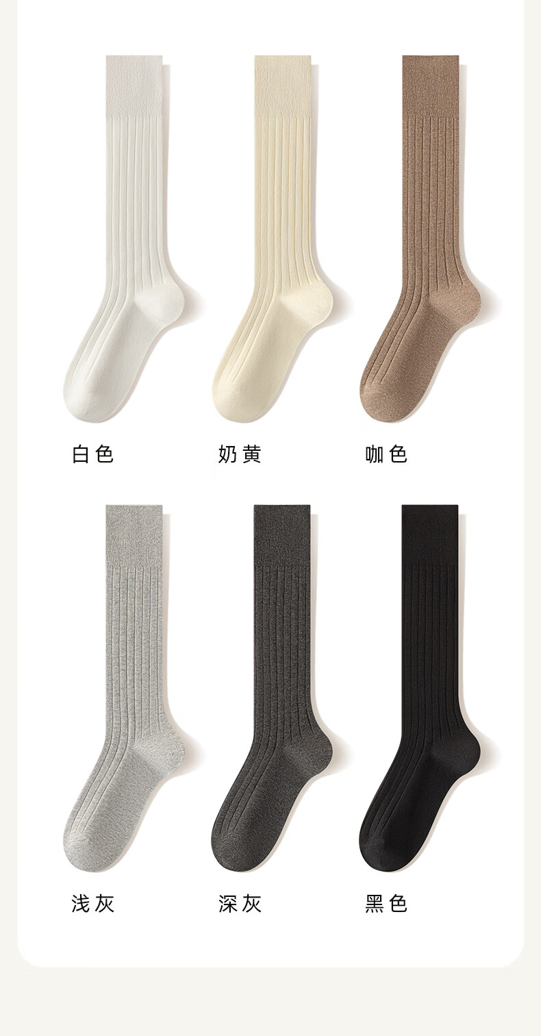 JSUAY Socks Women's Autumn and Winter Warm Solid Color Cotton Calf Socks Double Needle Slimming Socks Sports and Leisure Pile Socks Stockings Black One Size Exquisite Independent Packaging