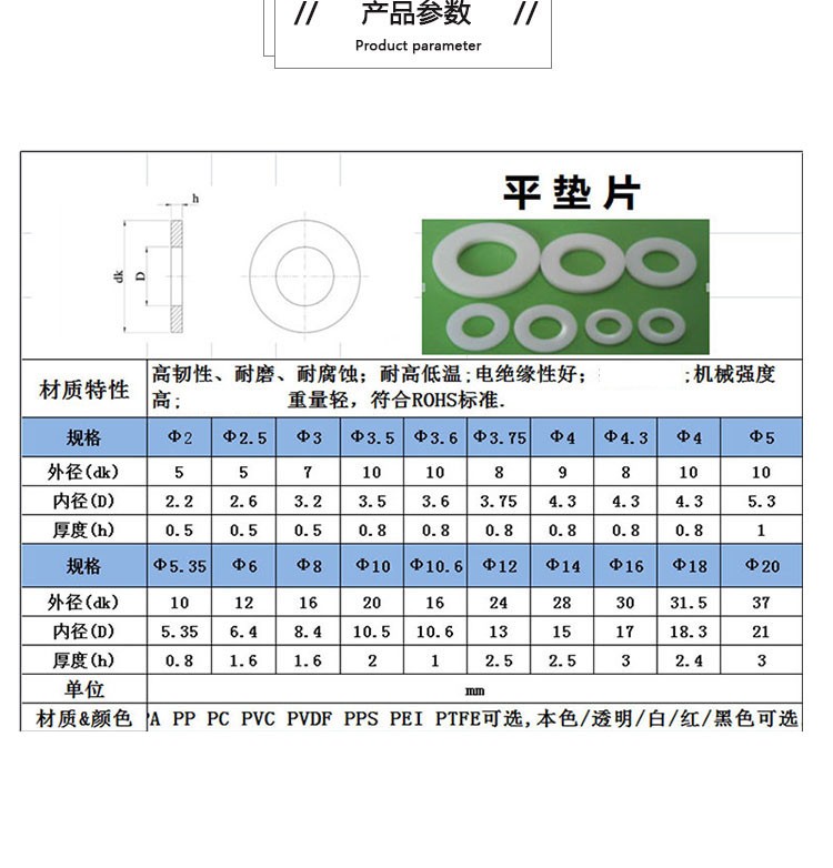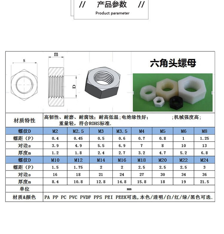 Strong bow corrosion-resistant, strong acid and alkali resistant PVDF hexagonal plastic nut MM20 plastic PVDF gasket plastic flat pad M flat pad 10 pieces