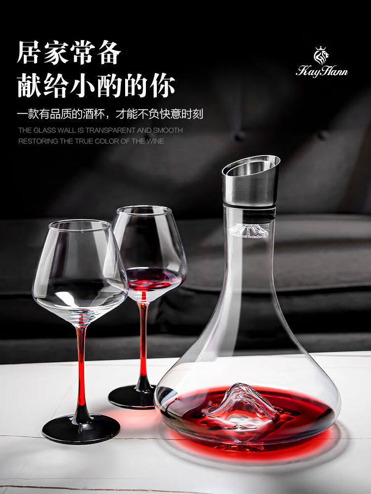 Sailoto red wine glass set for a family of four red wine glass set for home light luxury red stem burgundy goblet stand inverted red stem 450ml*4 pieces + glass rack