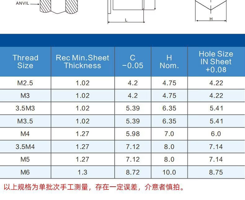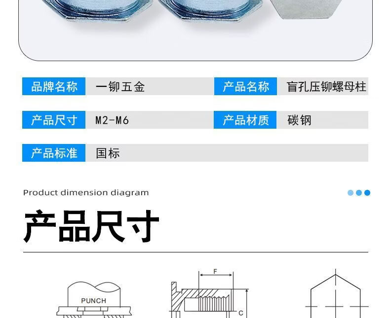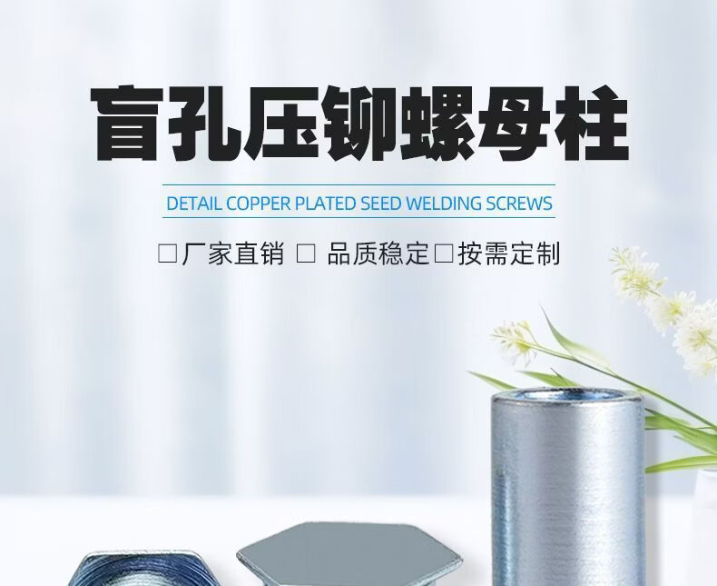 CLCEY blind hole pressure riveting studs galvanized M2MM25 hollow thread national standard hexagonal round bearing inner sleeve cylindrical studs carbon steel blind hole BSO-M2-141000 outer diameter 4 points 2