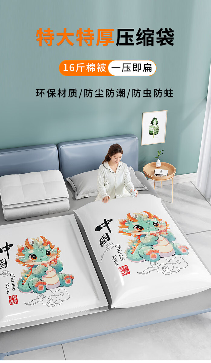 Yusenyi vacuum compression bag for home use, special storage bag for clothes and quilts, suitcase, thickened vacuum bag, no pump set (preferred by old customers) 3 pieces + huge size 100x80CM