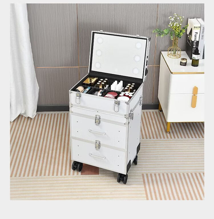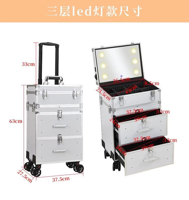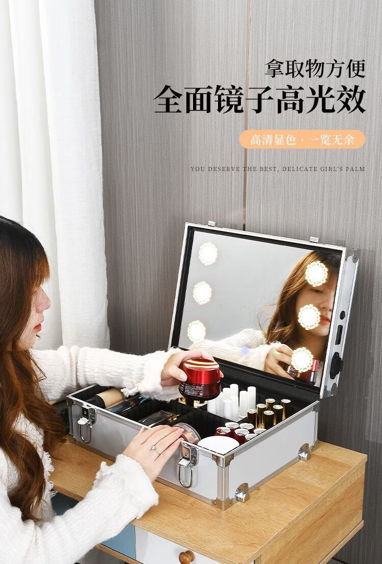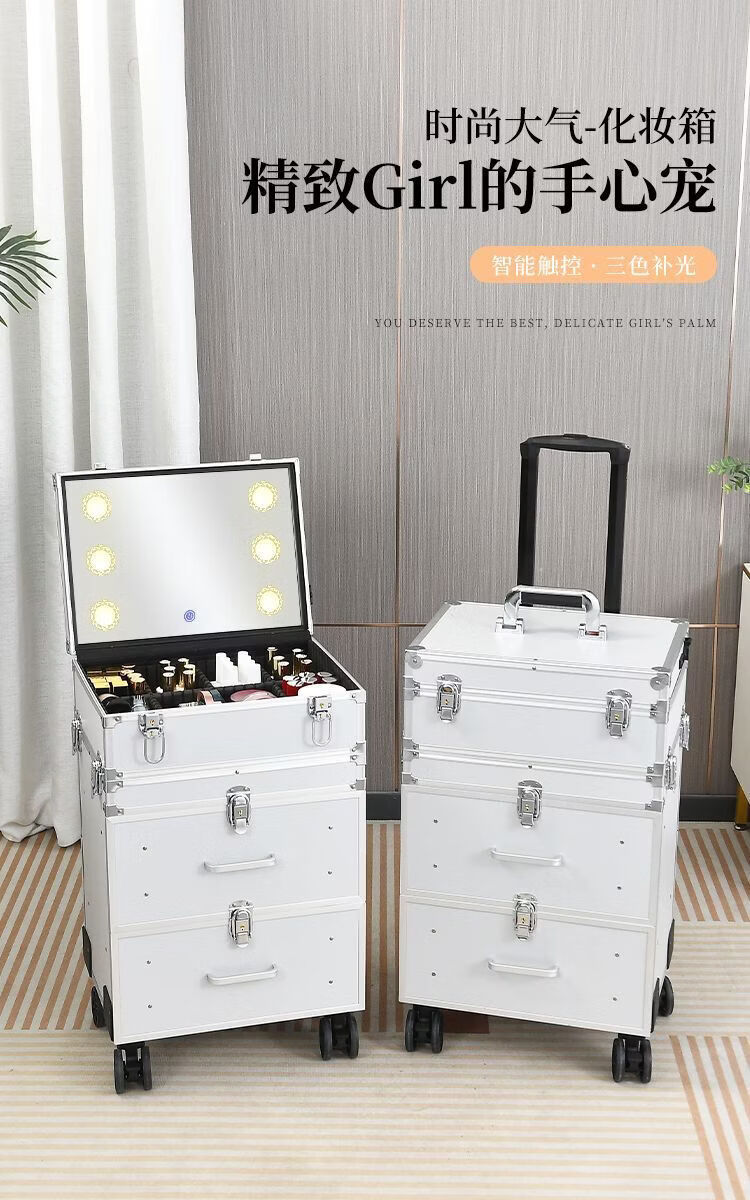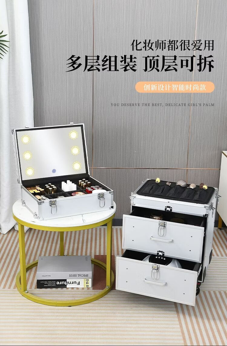 Multi-layer mobile beautician wheel makeup box with light 3-layer large ultra-clear six-light plug-in model available power bank - silver upgrade limited time - limited to 2 orders
