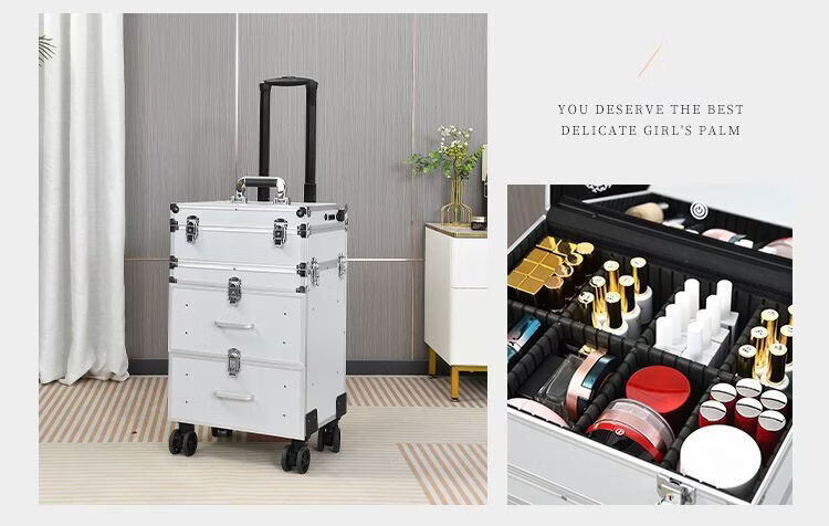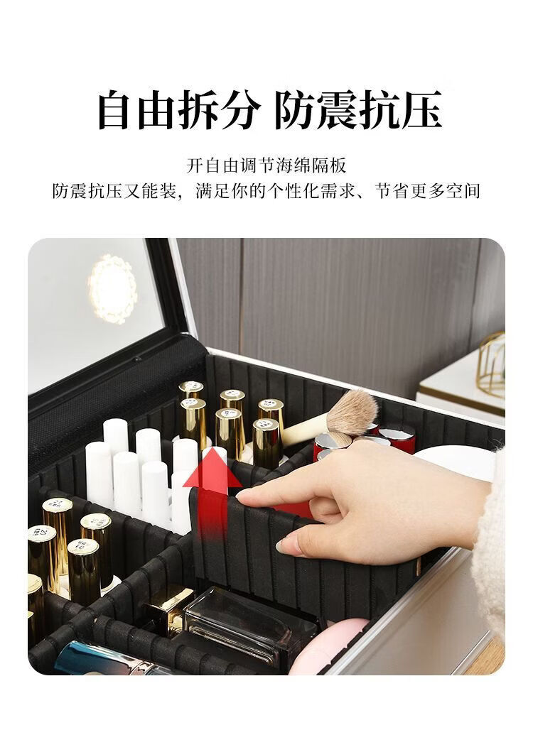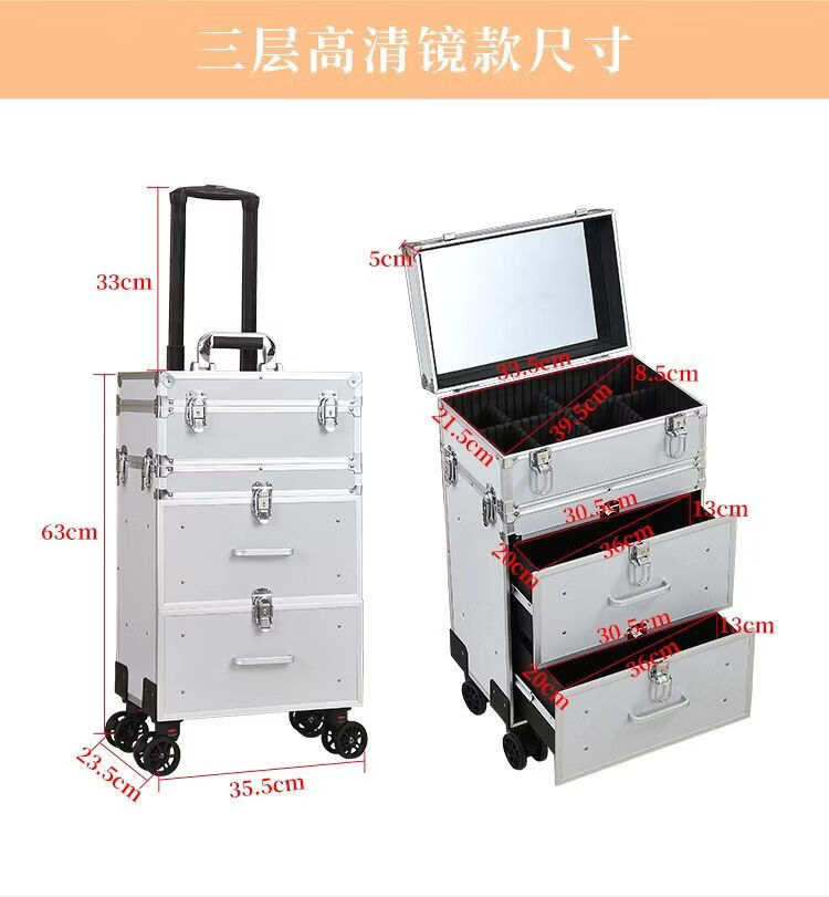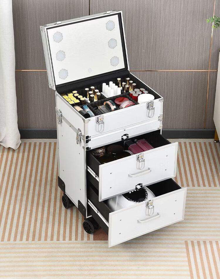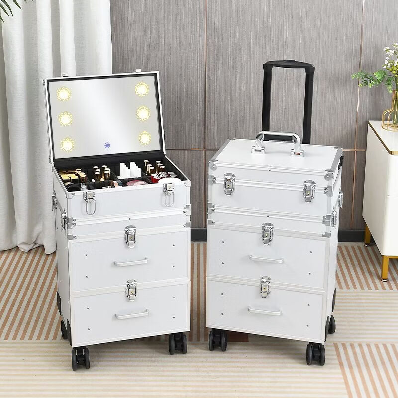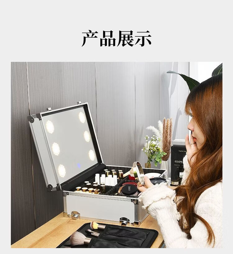 Multi-layer mobile beautician wheel makeup box with light 3-layer large ultra-clear six-light plug-in model available power bank - silver upgrade limited time - limited to 2 orders