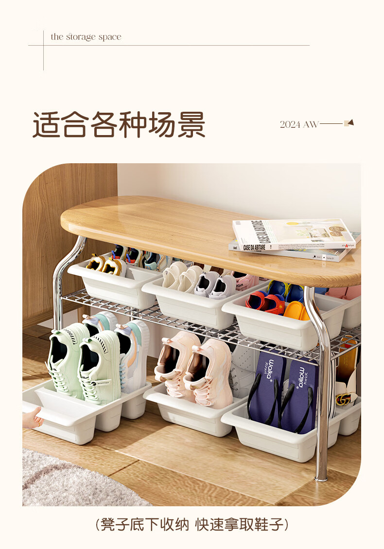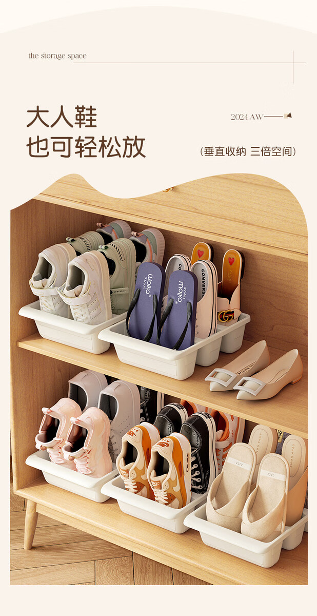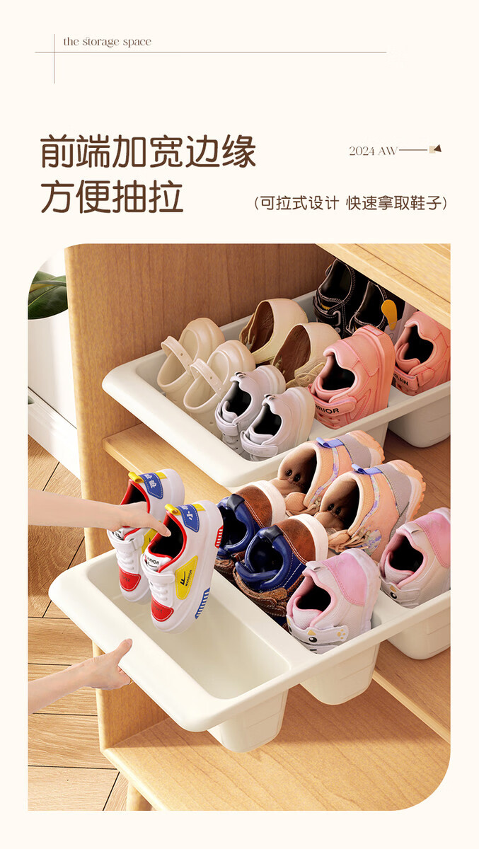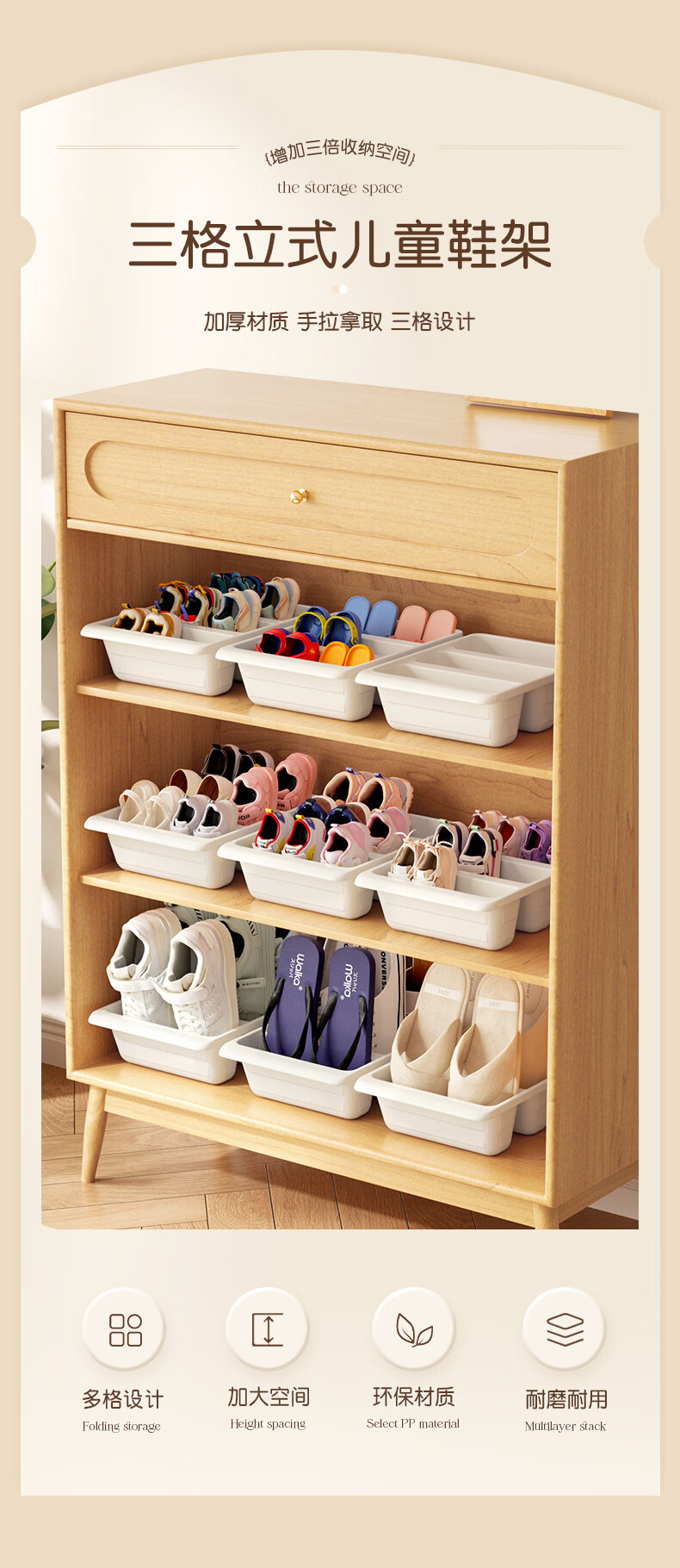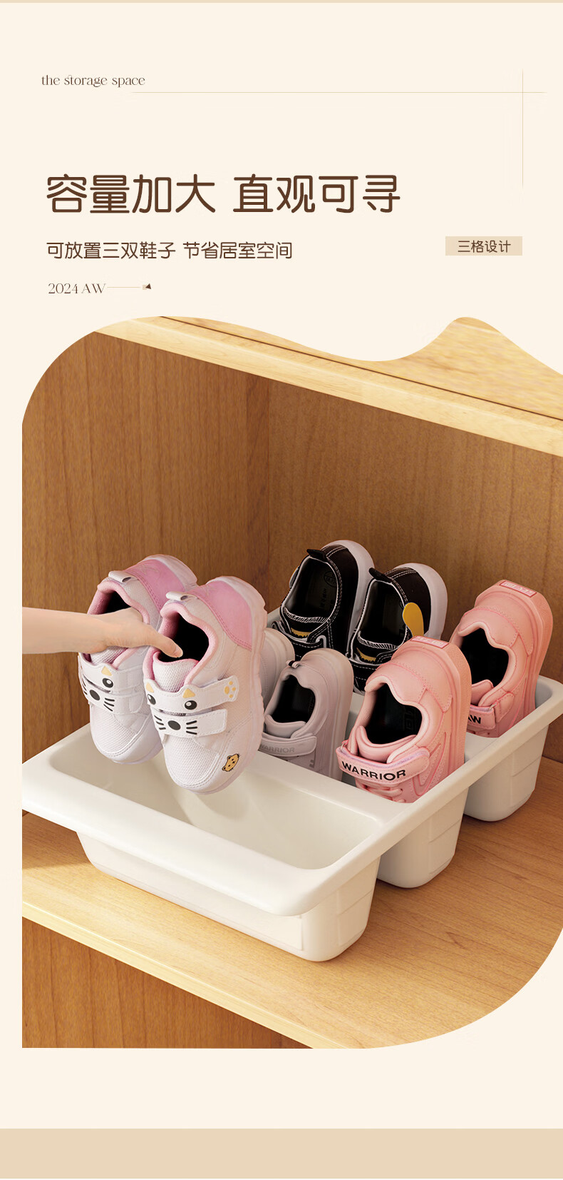 Fantasy baby shoe box space-saving shoe rack organization dormitory installation-free shoe cabinet home children's shoe storage artifact 2 pack (buy 1 and 2) hollow style beige