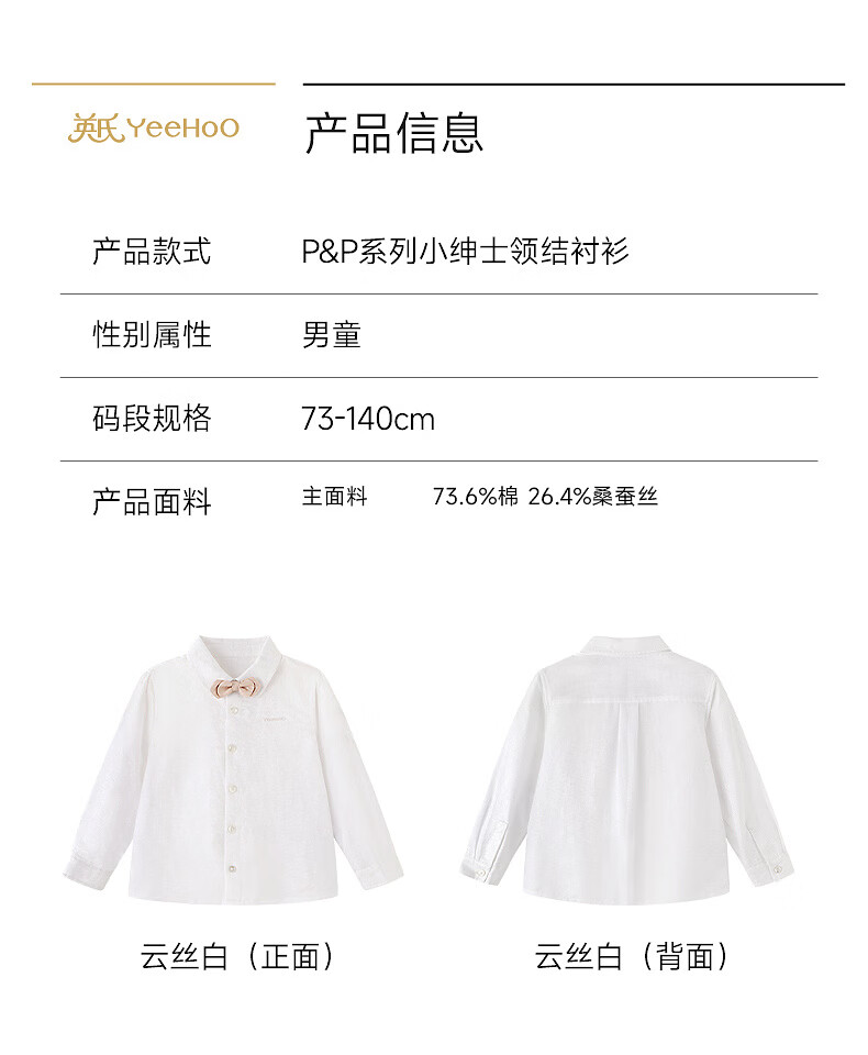 British haute couture series children's shirts boys' long-sleeved shirts spring and summer new versatile British handsome tops Yunsi white 90 cm