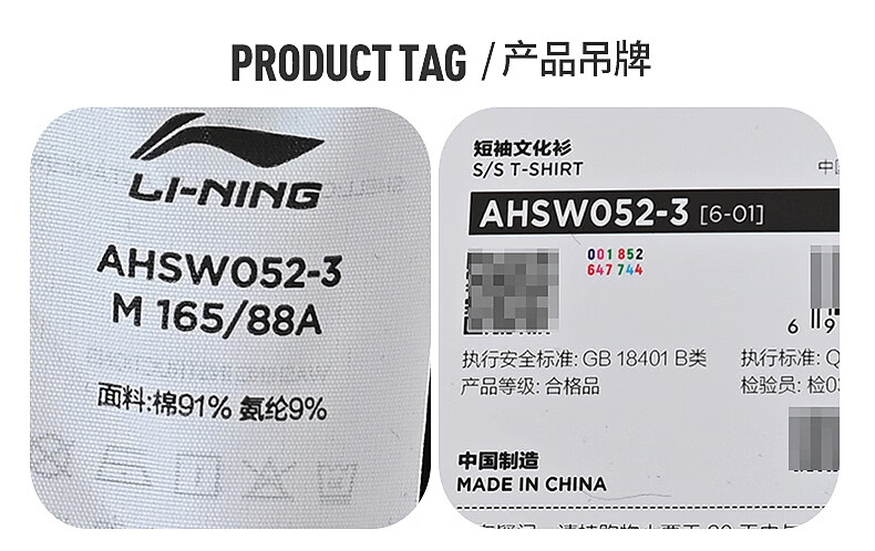 Li-ning (LI-NING) China Li-ning tight-fitting trendy round neck short-sleeved T-shirt cultural shirt breathable and versatile for teenagers and children AHSW052-3 AHSW052-3 165 S