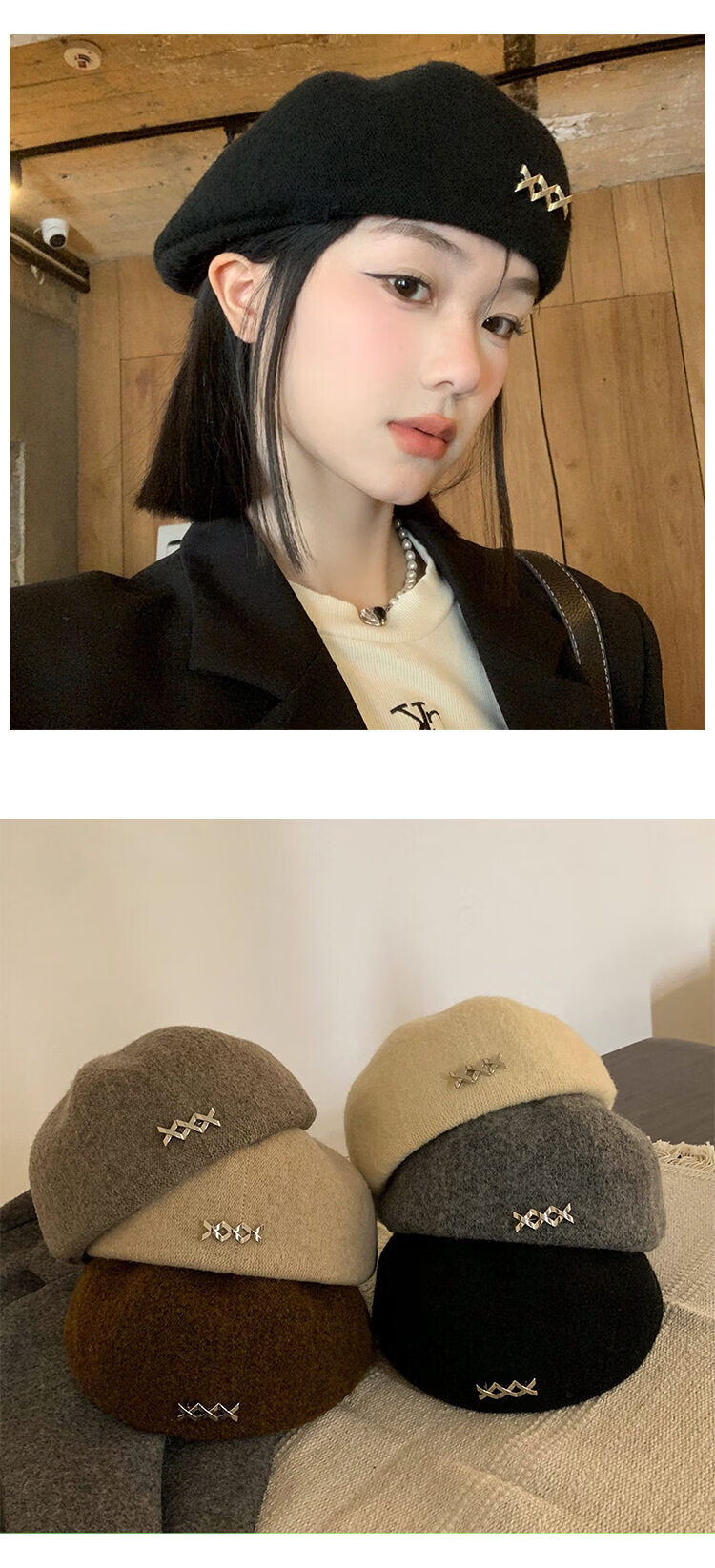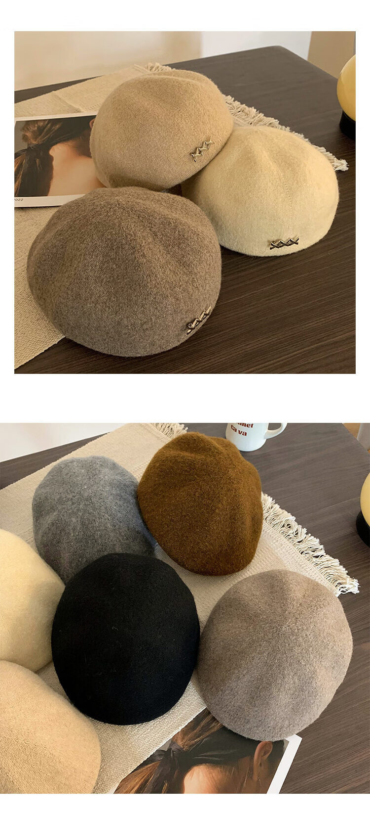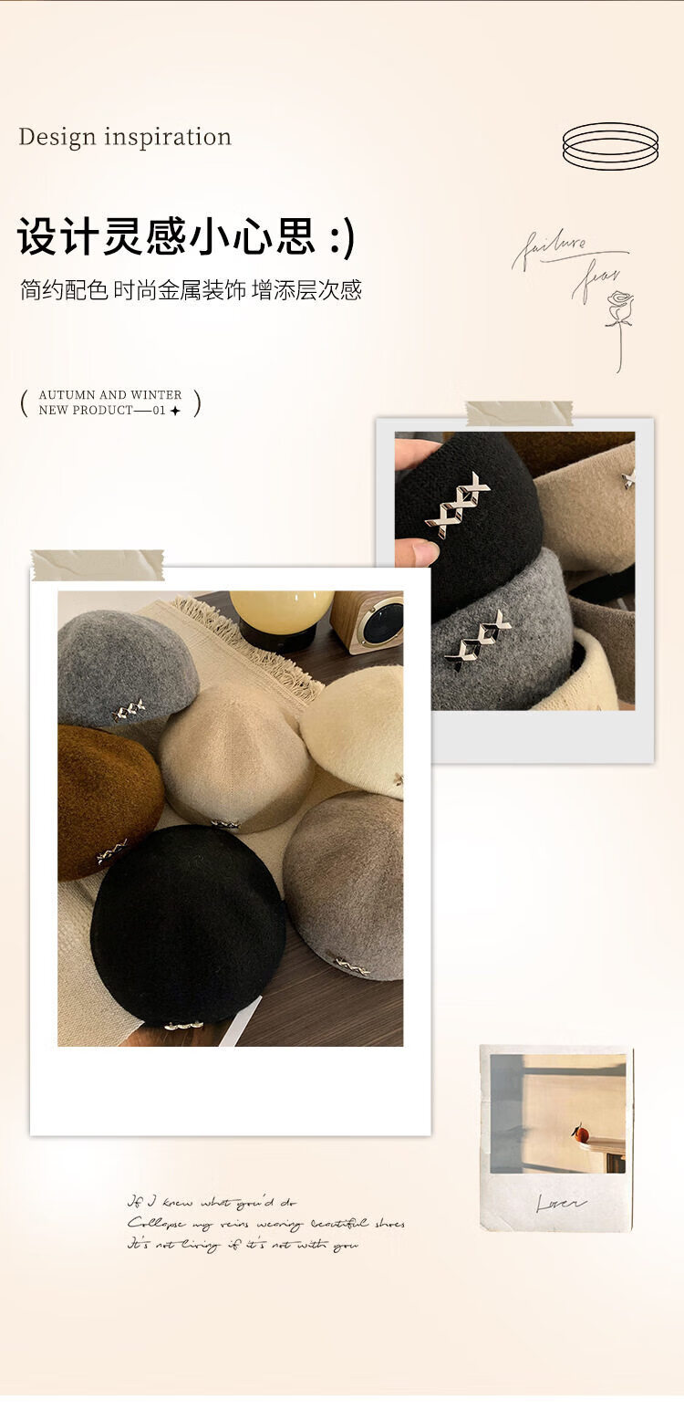 Xiaohongshu Korean-style beret for women in autumn and winter woolen warm and versatile small hat with big head and round head, off-white M 5558c adjustable