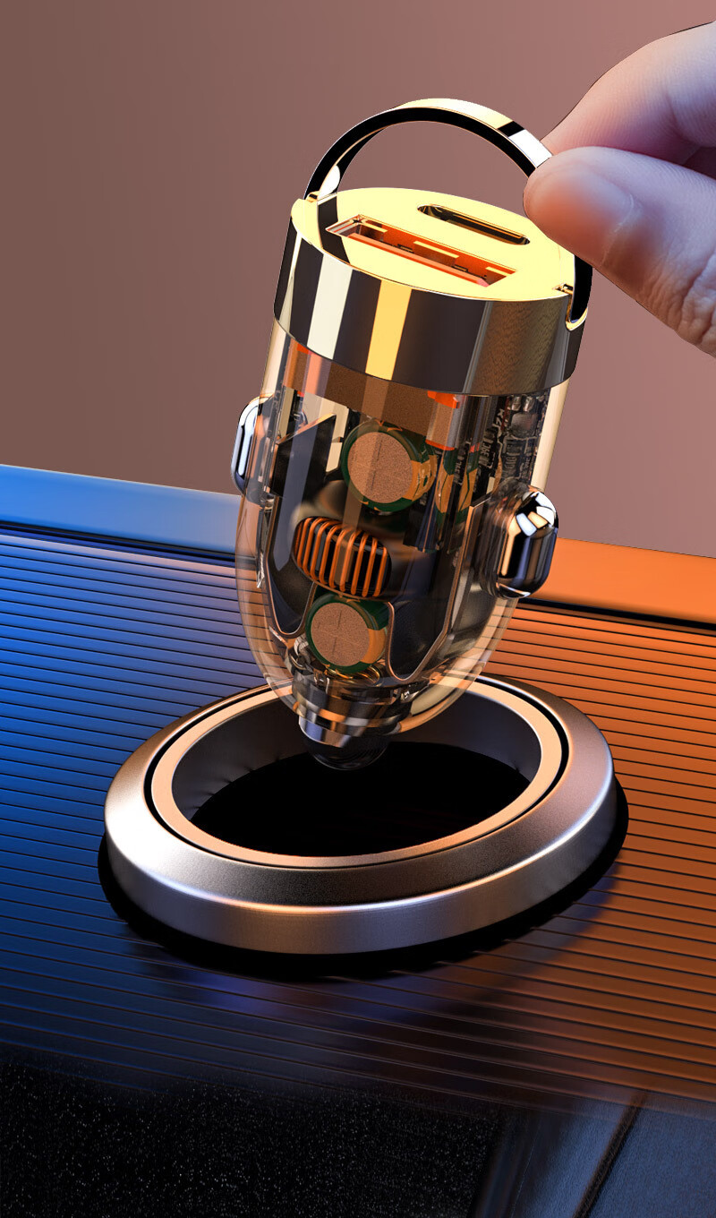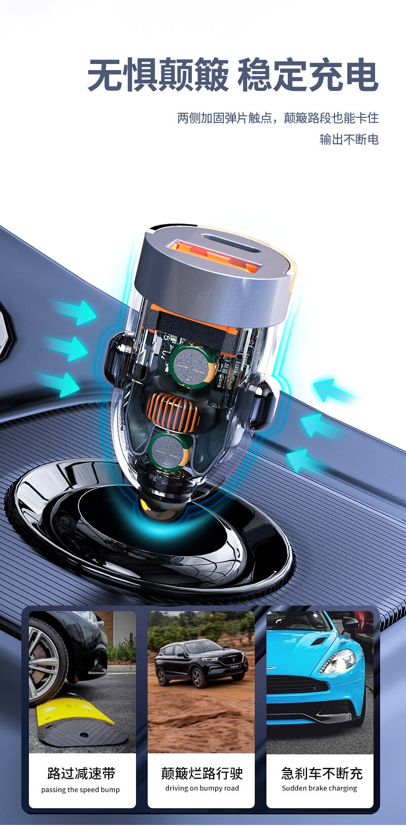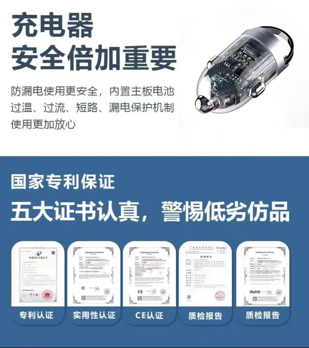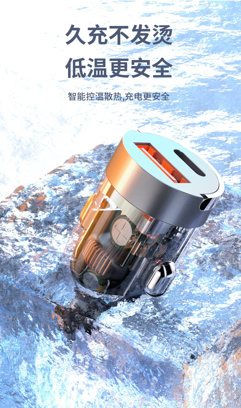 Car charger dual-port fast charging invisible transparent car charger car cigarette lighter conversion plug flash charging 120W fast charging car charger + 100W one-to-three fast charging cable + parking sign
