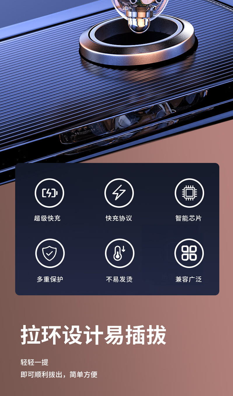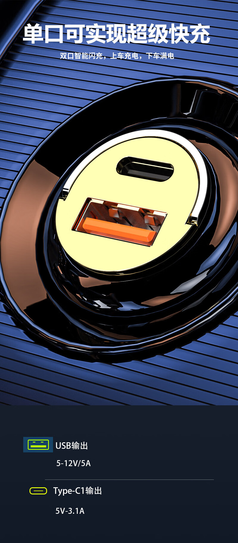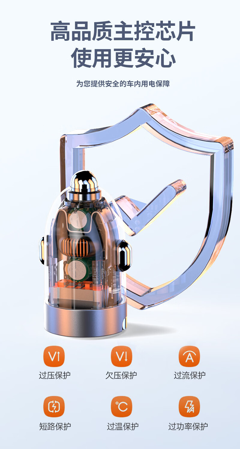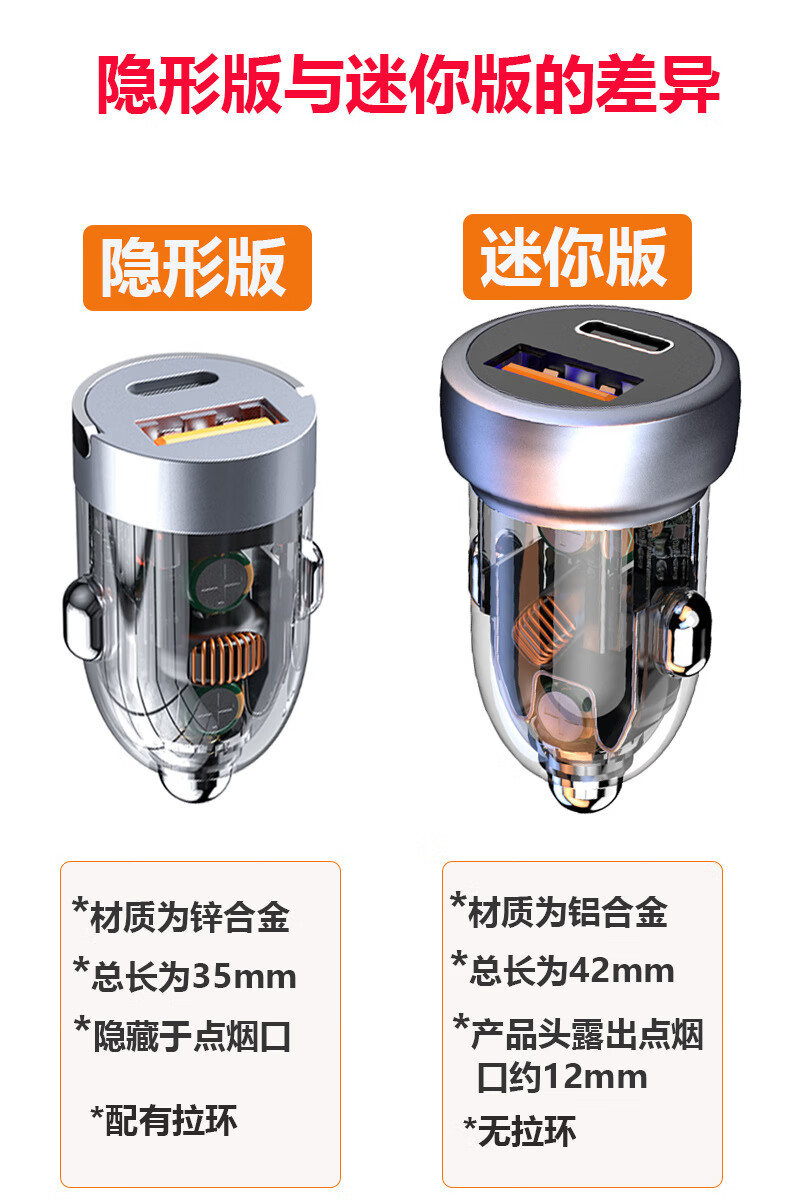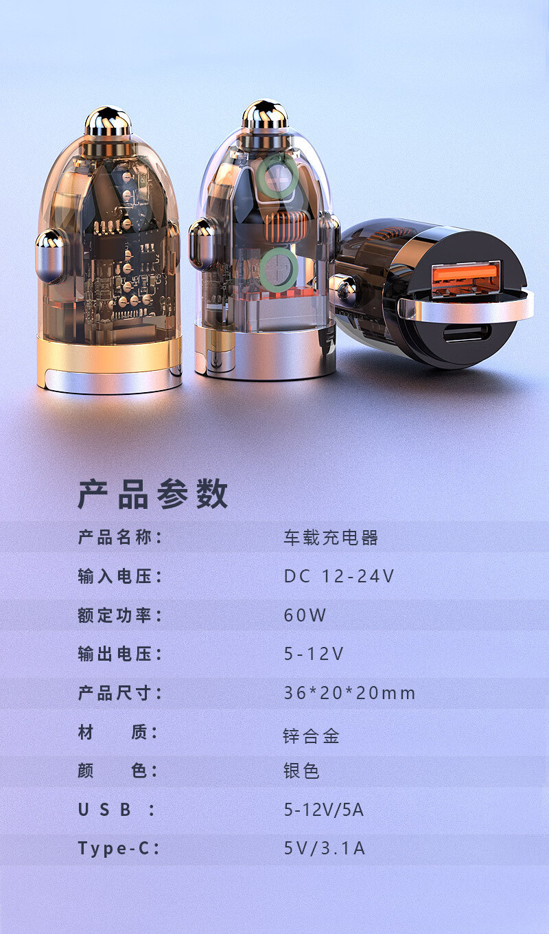 Car charger dual-port fast charging invisible transparent car charger car cigarette lighter conversion plug flash charging 120W fast charging car charger + 100W one-to-three fast charging cable + parking sign